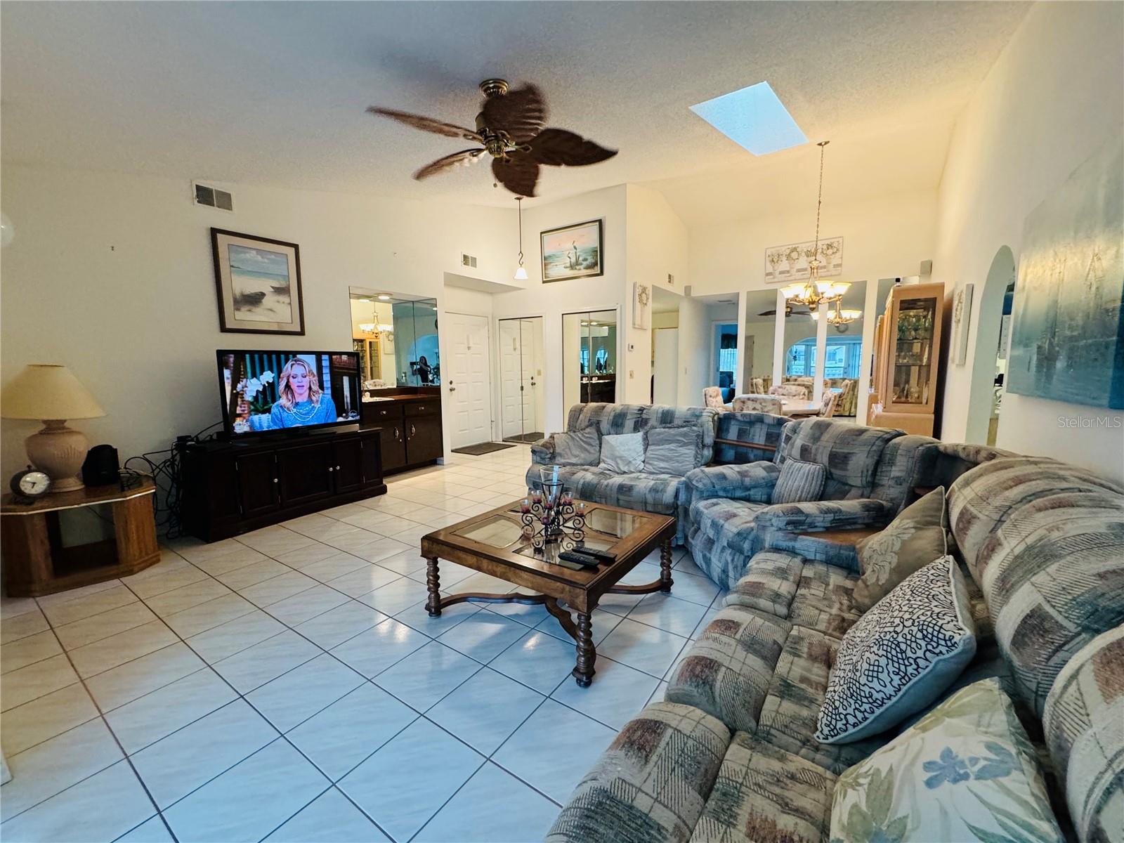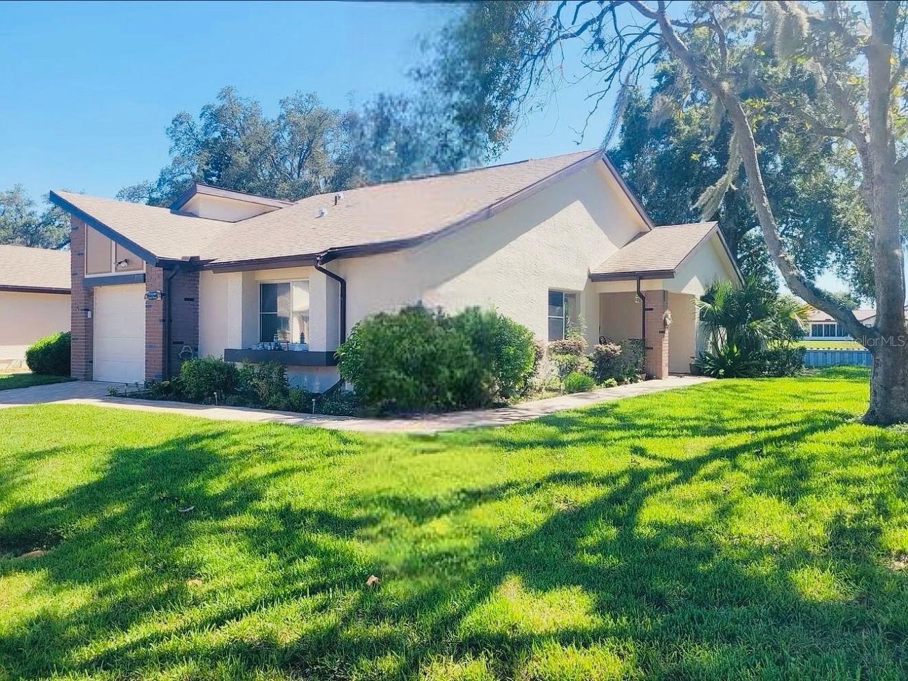 Welcome to this beautifully maintained maintenance-free villa nestled in the heart of Weeki Wachee. This 2-bedroom home with an office (or possible 3rd bedroom) offers an open, airy layout designed for easy living. Step inside to a spacious great room featuring soaring ceilings, a skylight, all-tile flooring, and a wet bar, perfect for entertaining. The space flows seamlessly into an enclosed bonus/family room with A/C, where tranquil pond views and western exposure create the perfect backdrop for breathtaking sunsets. The galley-style kitchen offers warm oak cabinetry, a large pantry, and washer and dryer conveniently located indoors. The primary suite is generously sized with tile flooring, two closets, and a walk-in shower. The second bedroom, located on the opposite side of the home for added privacy, features tile flooring and a walk-in closet. A hall bath with a tub/shower combo completes the interior. Outside, enjoy an attached one-car garage and a lovely green space beside the villa, complete with a park bench overlooking the lake, an ideal spot to relax with a book or enjoy the scenery. The low maintenance fee includes building insurance, exterior paint, Wi-Fi, cable, lawn care, irrigation, and trash, offering true worry-free living. The clubhouse and pool add to the community’s appeal. Ideally located just minutes from the Weeki Wachee River, Pine Island Beach, shopping, dining and more, this villa is perfectly positioned for both convenience and relaxation. Roof Replace 2017/AC Replaced 2022 Schedule your showing today!
