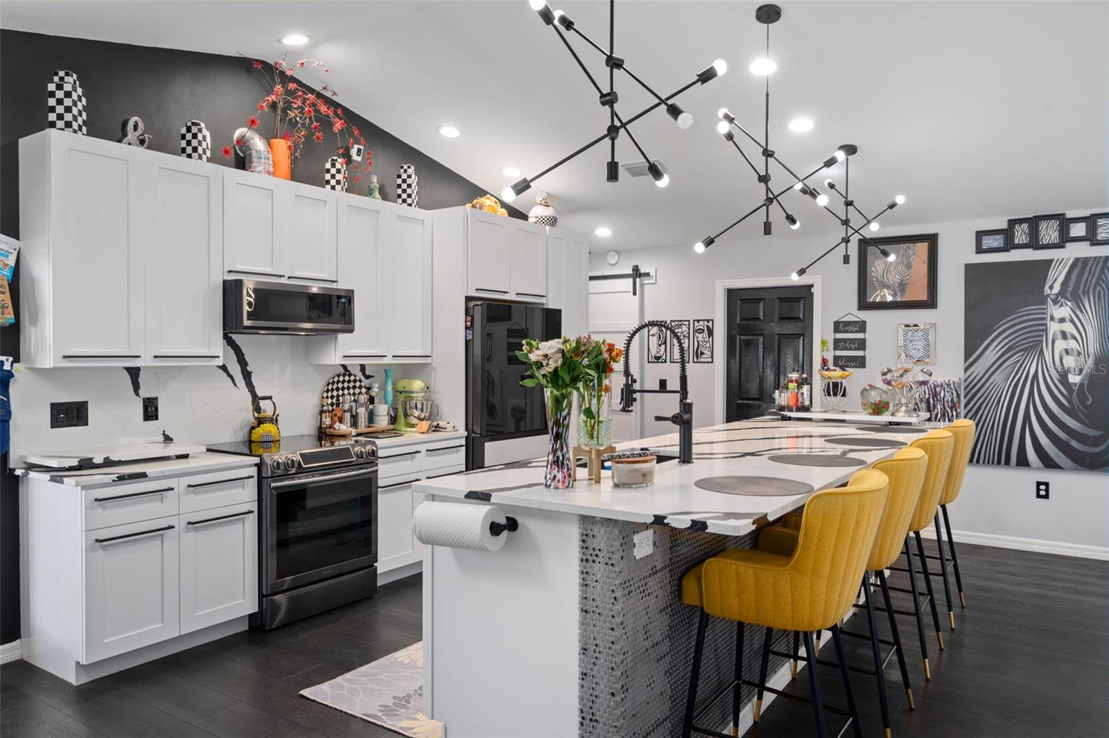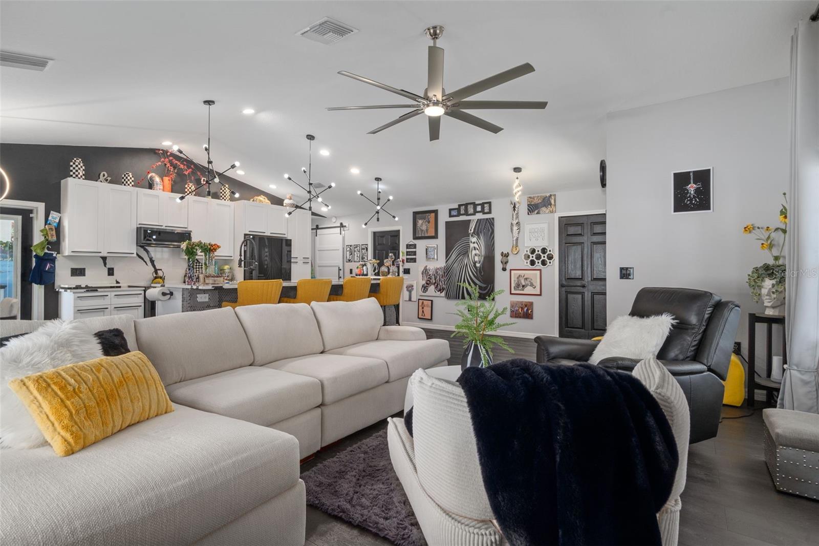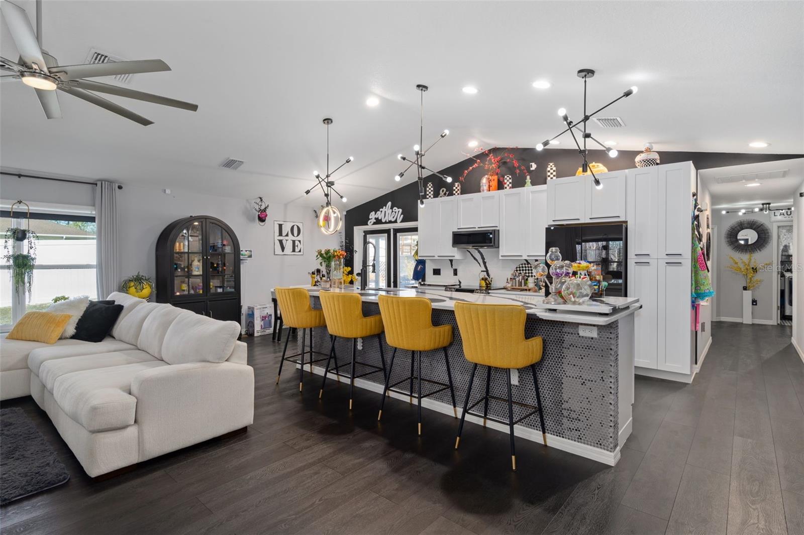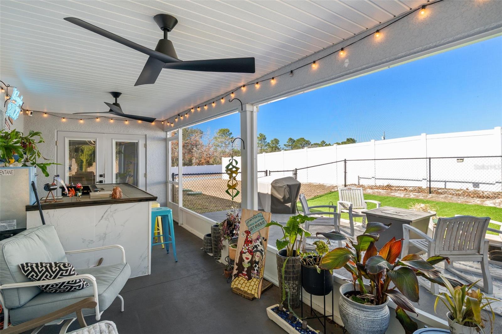 While new construction is always an option, this home is only a couple of years old—already includes the upgrades, finishes, and thoughtful details buyers usually add later, saving both time and expense. Located in the desirable Weeki Wachee area, this custom-designed residence is truly move-in ready. The home features three bedrooms, two bathrooms, and a two-car garage, all situated on a spacious ½-acre lot that is fully fenced. Every element was carefully planned by the seller, from the functional layout to the high-end finishes throughout. Inside, the floorplan welcomes you with a foyer leading into a light-filled living area. The kitchen is open to both the dining and living rooms, creating an ideal space for everyday living and entertaining. The rear of the home offers privacy with all three bedrooms and an indoor laundry room conveniently tucked away. The kitchen is a standout, featuring wood, soft-close cabinetry, striking leather-style granite countertops, an impressive 13-foot island, Dark stainless-steel appliances, a stylish tiled backsplash, built-in trash and recycling, custom hardware, and designer faucets. A generously sized pantry with a barn door adds both charm and functionality. Throughout the home you’ll find life-proof vinyl flooring, tile in the bathrooms and laundry room, energy-efficient tinted windows and doors, custom lighting, and blackout blinds with one-pull operation for ease and comfort. The landscaping was designed for low maintenance, allowing you to enjoy the property without constant upkeep. The primary suite includes a walk-in closet and a beautifully finished bathroom with a custom double-sink vanity and leather-style granite. The guest bathroom continues the same level of quality with matching countertops, a custom sink, and a tub. Outdoor living is just as impressive. French doors lead to an oversized 10x24 screened-in porch, built under the main roofline to keep the space cooler, complete with a custom dry bar. Additional concrete was poured to extend the rear patio, offering even more room to relax or entertain. The home also features a charming 26x5 front porch with pavers, a dedicated fire pit area, and sits high and dry in a quiet, sought after neighborhood. A newer water softener system is already in place as well. This is a rare opportunity to purchase a nearly new home that already has all the upgrades completed—offering comfort, style, and value in one exceptional package.