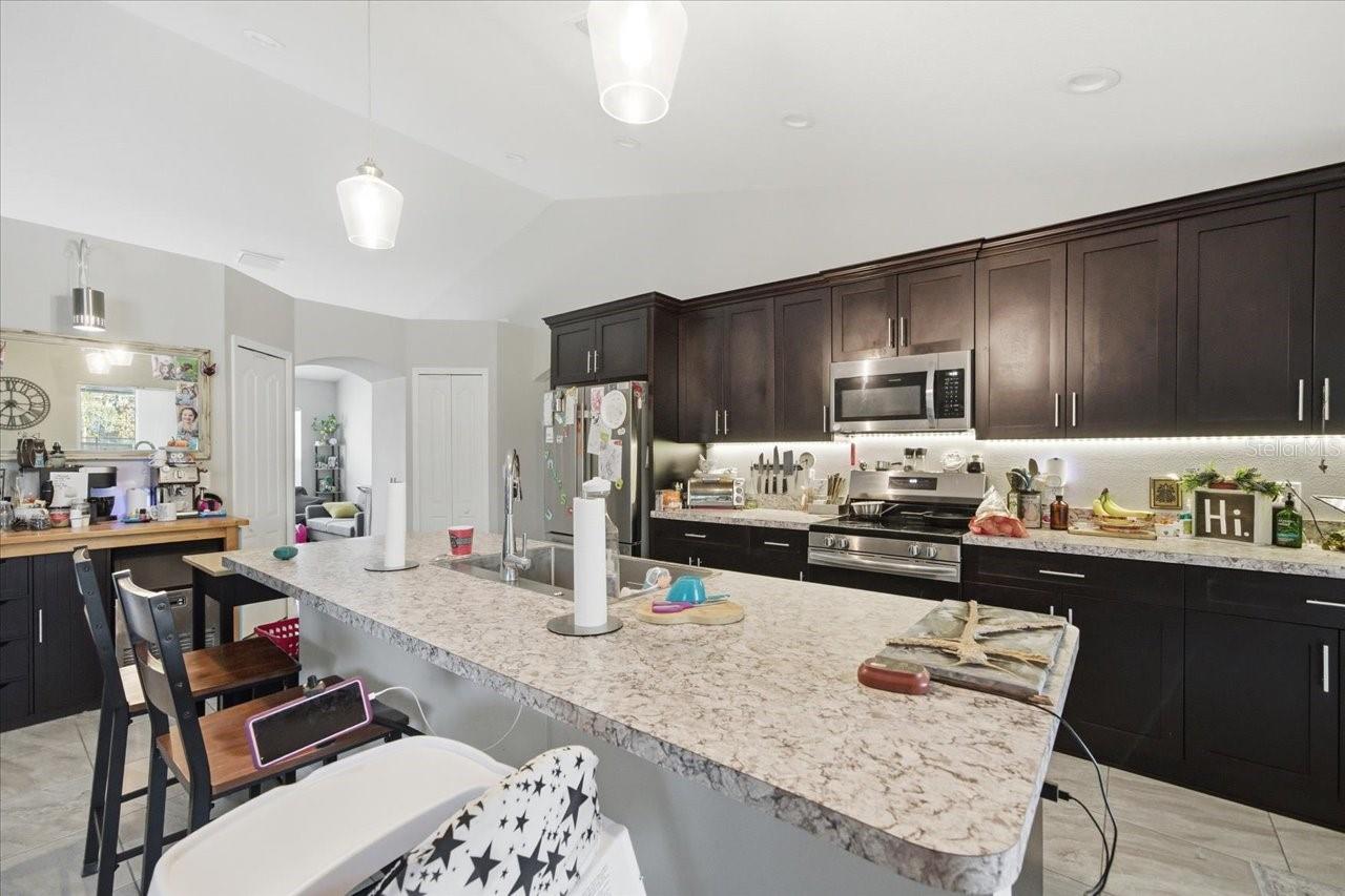 2024 Pool Home by Hartland Homes on Nearly ½ Acre Employment circumstances create a rare opportunity to own this newly built 3-bedroom, 2-bathroom, 2-car garage pool home situated on almost half an acre. Built in 2024 by Hartland Homes, this thoughtfully designed open floor plan offers a formal dining room or flex space, an eat-in kitchen featuring granite countertops and stainless-steel appliances, all overlooking the spacious family room--perfect for entertaining. The private Owner's Suite features elegant tray ceilings, a walk-in closet, dual vanities, and a walk-in shower. Step through the family room to enjoy the covered lanai and newly completed pool, overlooking a generous backyard with plenty of space to relax or entertain. Don't miss this opportunity to own a nearly new pool home with room to grow