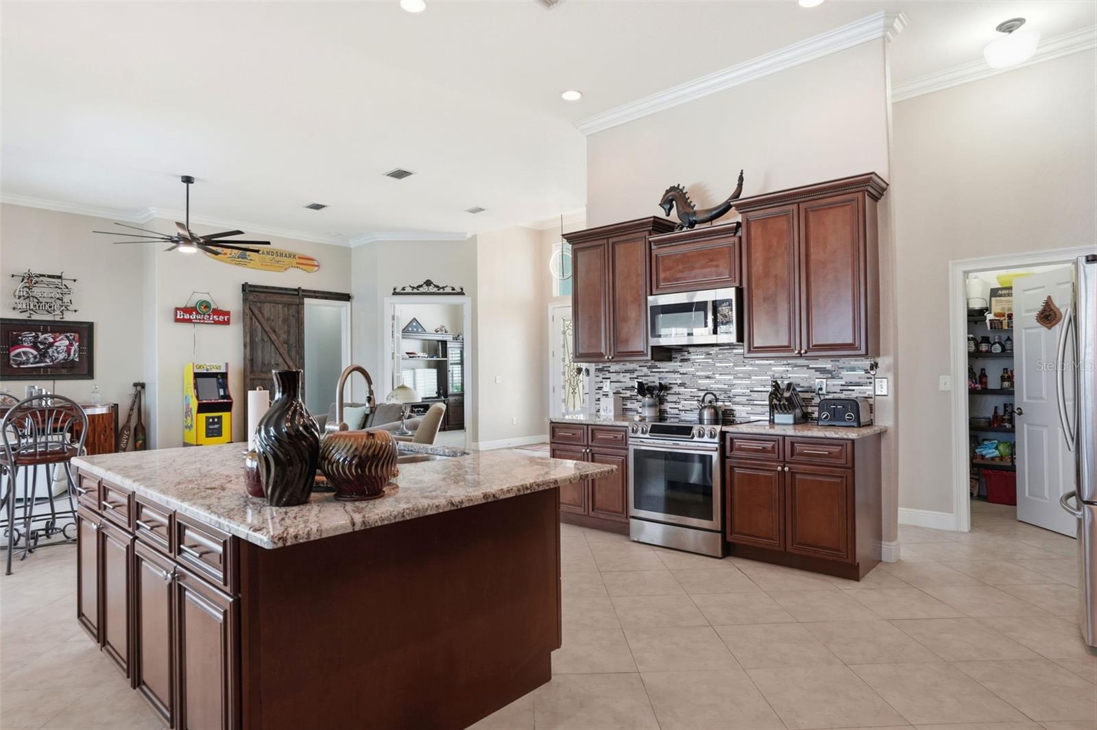 Luxury Lakefront Living In Glen Lakes Country Club. This 3 Bedroom + Office, 3 Bathroom Home Offers 2,851 Living Sq Ft On A .38 Acre Lot With A Tile Roof, Paver Driveway, And A 2 Car Garage With An Oversized Golf Cart Area. Inside, You Are Welcomed By Double Glass Front Doors, 12 Foot Ceilings, Crown Molding, And An Open Layout Where The Living Room, Family Room, And Kitchen All Flow Together While Showcasing Beautiful Pool And Lake Views. The Kitchen Features Granite Countertops, 42 Inch Wood Cabinets, A Large Center Island, Stainless Steel Appliances, And Ample Storage. Granite Counters Continue In The Bathrooms. The Spacious Primary Suite Offers Wood Flooring, A Sitting Area With Lake Views, Dual Vanities, A Soaking Tub, And A Large Walk-In Shower. A Dedicated Office/Den Behind French Doors Adds Flexible Space For Work Or Relaxation. Step Outside To The Screened Lanai And Private Pool With Paver Decking, Perfect For Enjoying The Direct Lake View. Recent Updates Include Fresh Interior Paint, Comfort Height Toilets, New LED Lights And Fans, A New Pool Pump In 2024, And A Pool Cage Rescreened In 2025. Rebuilt In 2015 Following Fire Damage, The Home Was Renovated Down To The Block With Major Updates Including The Roof, Windows, Electrical, And More. Located In A 24 Hour Guard Gated Community, GlenLakes Country Club Offers A 35,000 Sq Ft Clubhouse, 18 Hole Golf Course, “The 19th Hole” Bar And Lounge, Tennis, Pickleball, Bridge, Billiards, Bocce, And Fitness Classes Including Water Aerobics, Step Aerobics, And Zumba.