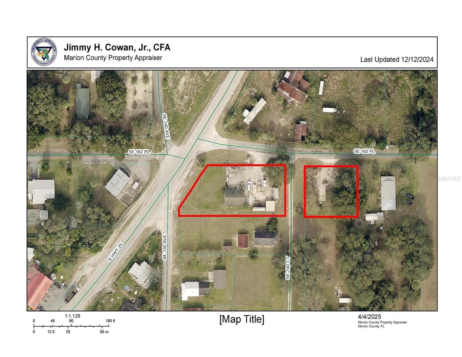 Offering is for two parcels & one 1,200 SF Commercial Building with .71+/- Acres. Property is located in Marion County and zoned B5 (parcel with bldg) & A1 ( vacant parcel). The building is enclosed with security fencing. Site is at the corner of CR 25 and SE 162nd place. Great location for a small company such as lawn service and maintenance, painting service, pest control, contractor and many other small businesses or company's. Site is a short drive to The Villages and an ideal Central Florida service location. Properties are Marion County FL property ID #'s 4966-001-022 & 4966-002-022. Shown by appointment. All information is believed accurate and correct but not guaranteed or warranted and subject to change without notice.
