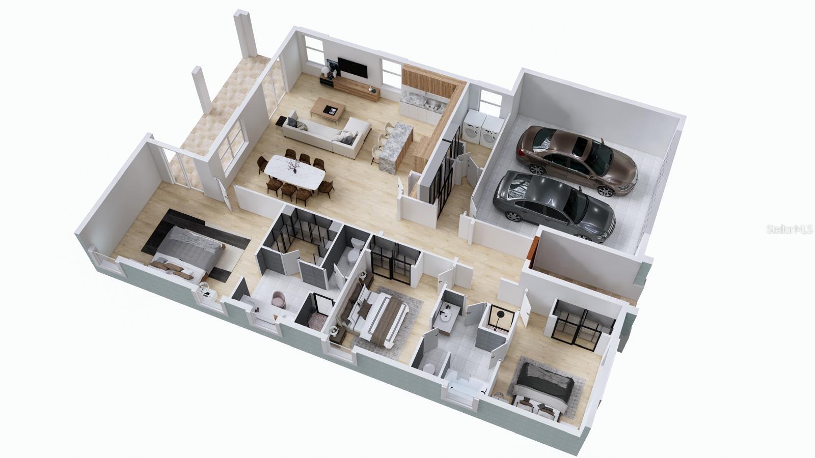 Pre-Construction. To be built. PRE-CONSTRUCTION has been virtually staged.Welcome to this stunning brand-new construction home located in Weirsdale, FL, offering modern comfort and spacious living on nearly 3 acres of land. The Model 1690 features 3 bedrooms, 2 bathrooms, and a 2-car garage. Step inside to an open-concept family room a beautifully designed kitchen with premium cabinetry, a central island, The master suite boasts a spacious layout with a walk-in closet and an elegant en-suite bath. The second bedroom is perfect for guests, an office, or additional living space. Enjoy the covered lanai, perfect for entertaining or relaxing while overlooking the natural beauty of this lot. Located in a peaceful yet accessible area, this property offers the perfect blend of privacy and convenience, with easy access to The Villages, Ocala, and major highways. Don’t miss out on this unique opportunity to own a brand-new home on acreage