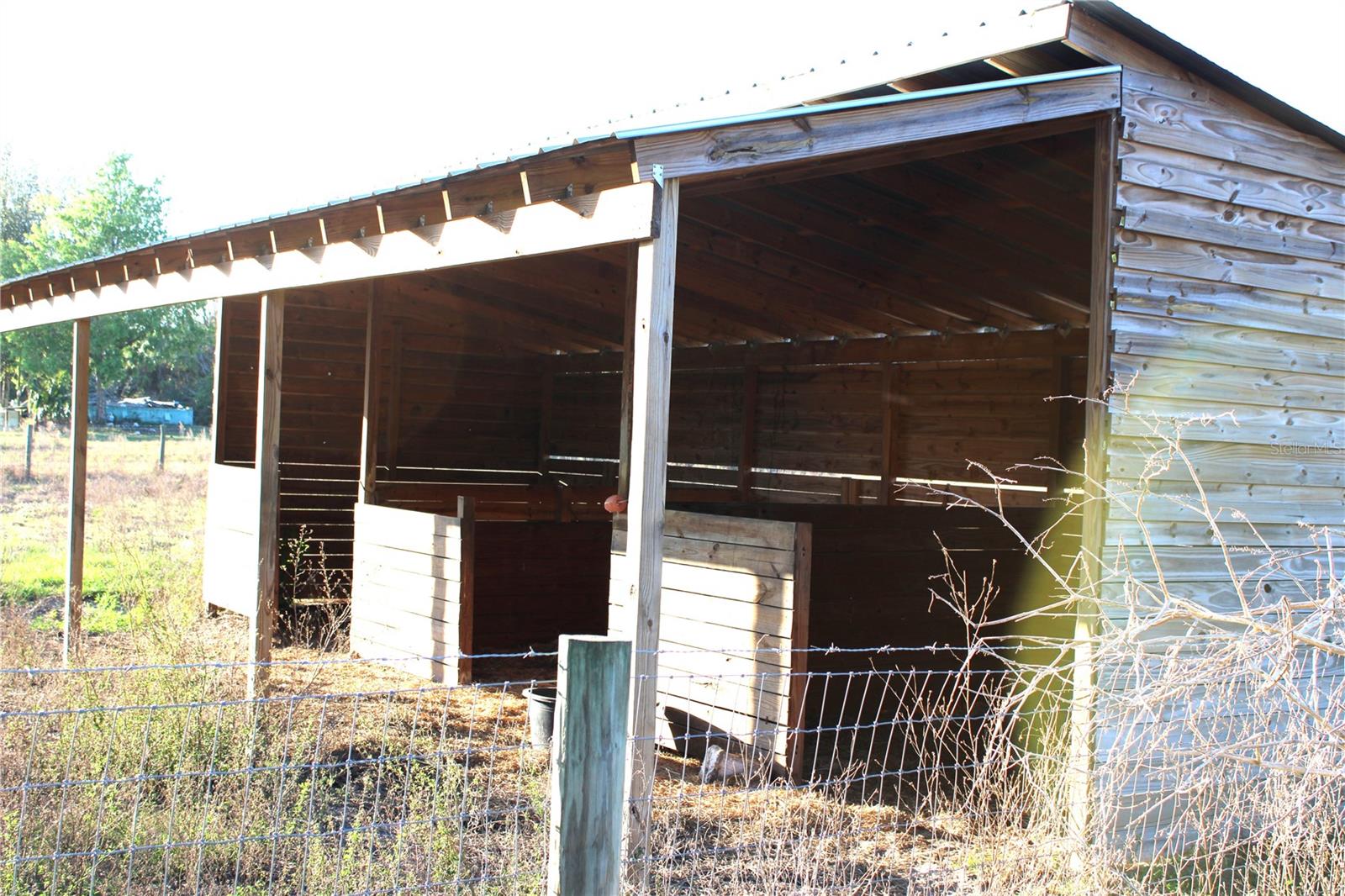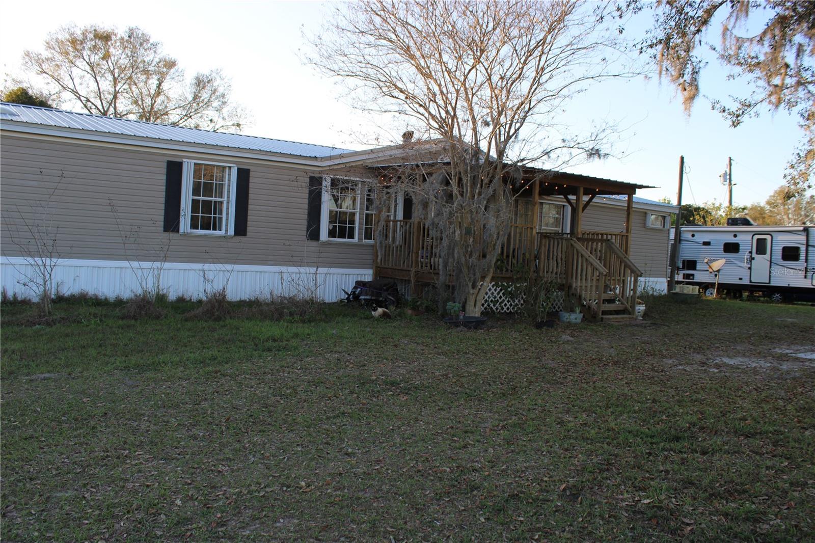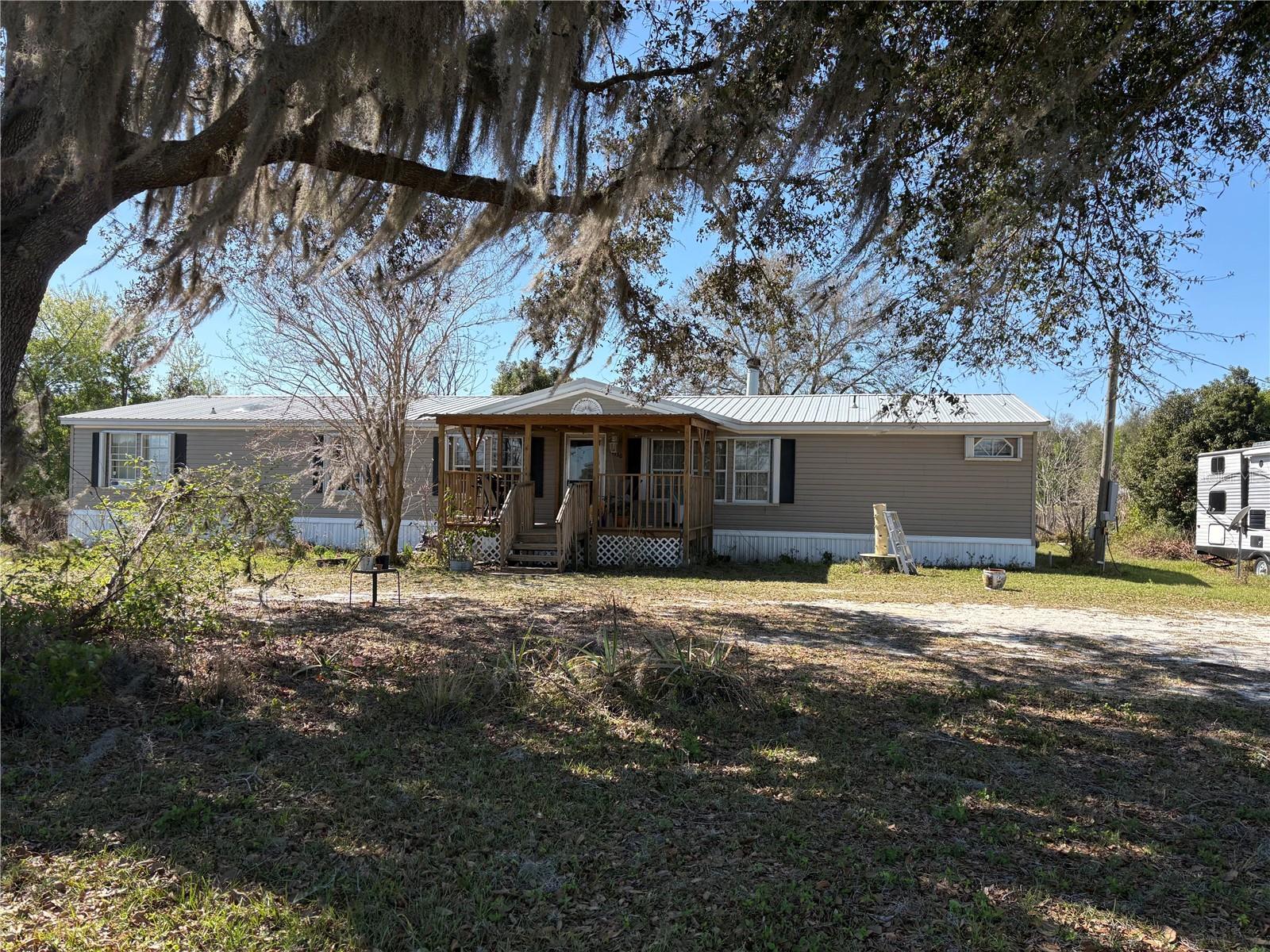 Step into a world of tranquility with this spacious 2,333 sq. ft. home that’s perfect for families and nature lovers alike! Featuring 4 inviting bedrooms and 2 well-appointed full baths, the primary en-suite bathroom is pretty big...This residence offers an abundance of space, including a dedicated office, a cozy living room, and a family room that’s ideal for gatherings. Imagine sipping your morning coffee on the charming covered front porch while soaking in stunning views or unwinding in the evenings surrounded by the beauty of nature. The expansive master suite boasts a generous walk-in closet and a beautifully updated en-suite bathroom, ensuring your personal retreat is both luxurious and functional. With stylish laminate flooring throughout and vinyl in the kitchen and bathrooms, this home is designed for easy living. The large living room features a striking fireplace wall, creating a warm ambiance for entertaining friends and family. The eat-in kitchen flows seamlessly into the family room, making it the heart of the home. This mini farm is fully enclosed with No Climb Horse fencing and thoughtfully divided for optimal pasture management. Animal lovers will appreciate the three-stall Shed Row Barn, complete with 12x12 stalls, a custom chicken coop, a bespoke dog house, and an additional run-in shelter for your furry friends. Plus, a charming 2008, 2-bedroom, 2-bath single-wide (1,216 sq. ft.) on the property comes equipped with its own well, septic, and power. While it may need a little TLC, it’s currently serving as a cozy mother-in-law residence, complete with fenced areas for goats and additional goat barn and chicken coop. Experience the best of both worlds with a serene country lifestyle, all just 2.5 miles from the vibrant amenities of The Villages. Don’t miss out on this unique opportunity to embrace the farm life you’ve always dreamed of—schedule a visit today!