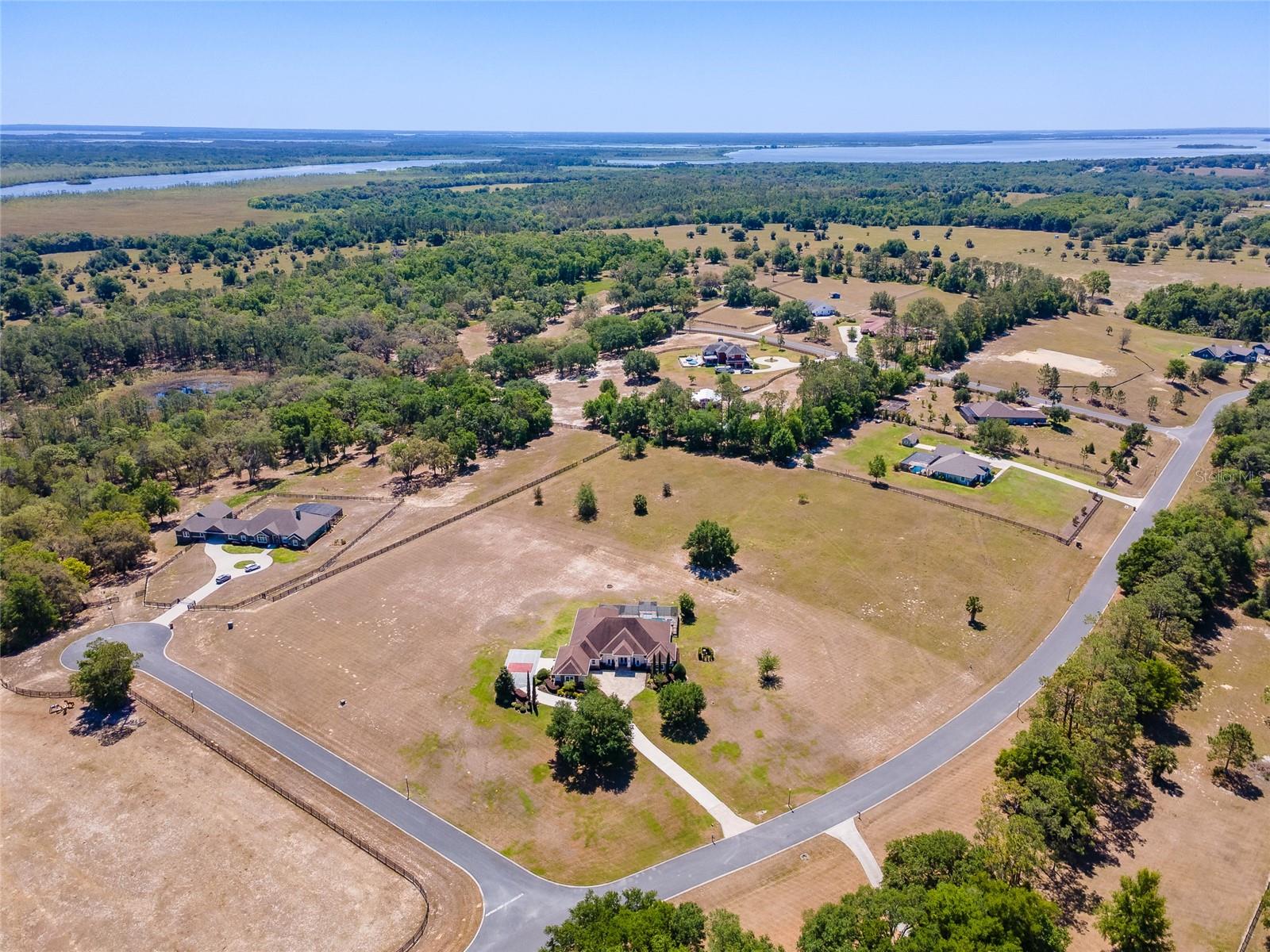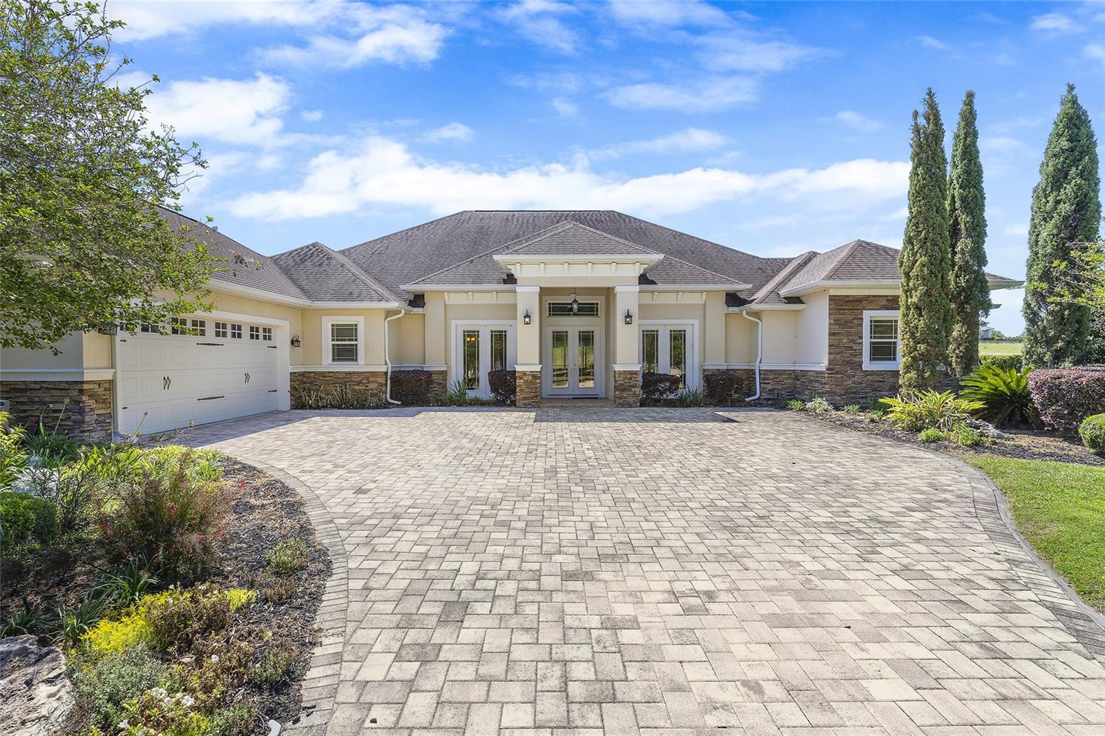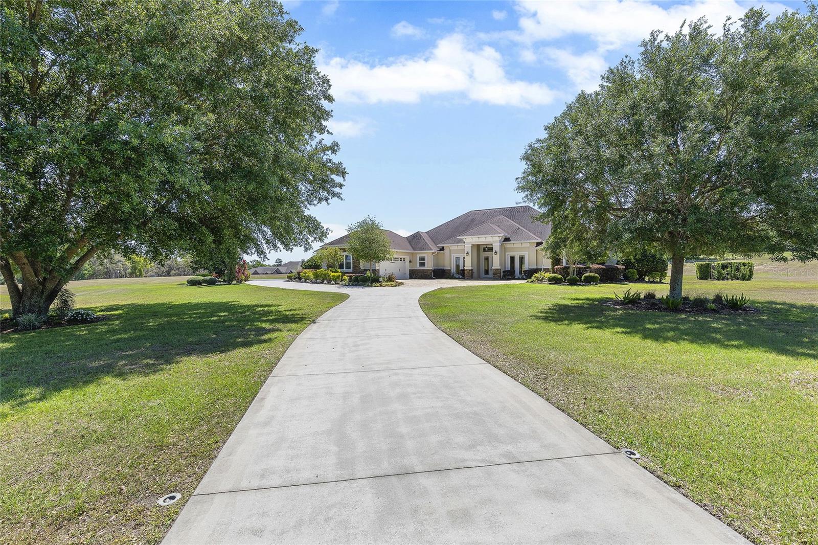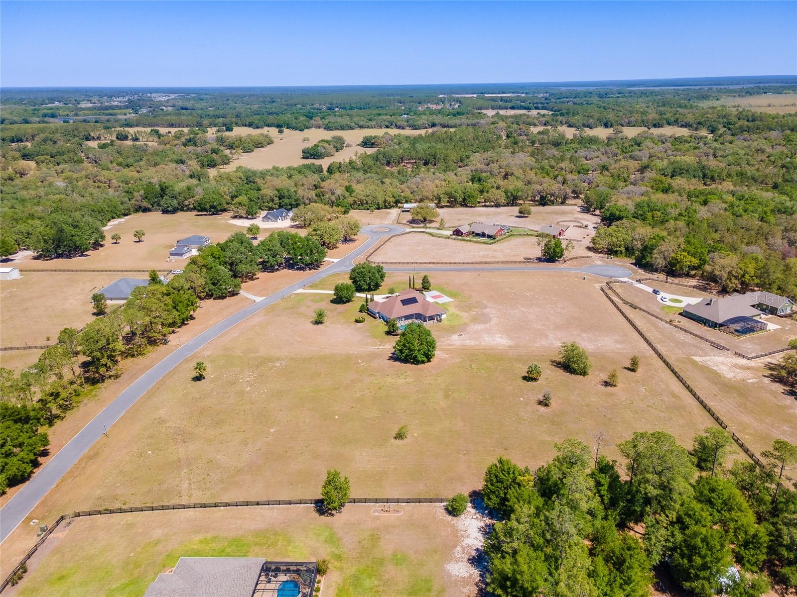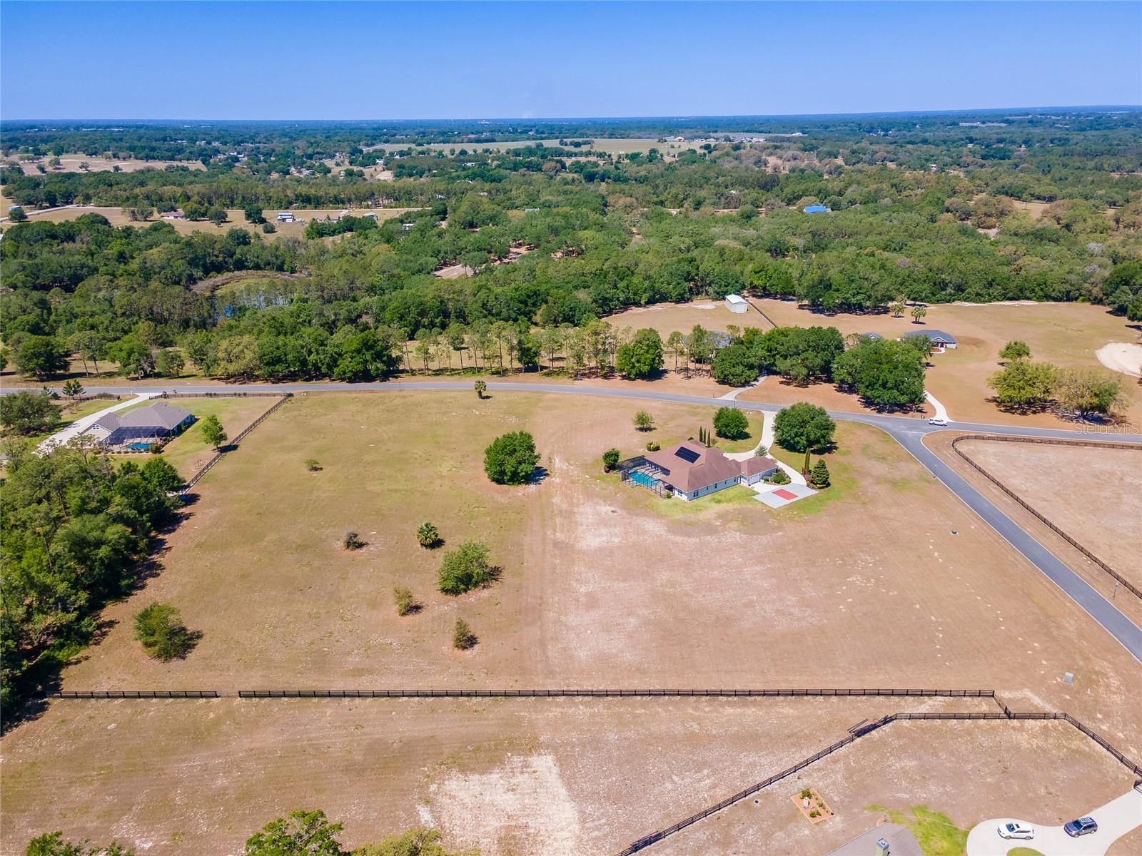 Welcome Home ! PRICE IMPROVEMENT - Don't let this one slip through your fingers !! Nestled in the serene Saddle Ridge Community just minutes from The Villages, this stately stucco home offers an unparalleled blend of luxury and tranquility. Spanning 4,218 square feet of living space on nearly 4 acres of meticulously manicured grounds, this estate boasts privacy and natural beauty. The property features a 3-car garage with 10' ceilings, a Tesla battery wall, and an electric car charger, offering convenient, energy-efficient options for electric vehicles. Additionally, the home includes a private pickleball court, complemented by a pavered rear screened enclosure surrounding the sparkling heated saltwater pool. This custom built home showcases 5 bedrooms and 3.5 baths, including an impressive primary en-suite and an additional en-suite bed-bath combination. Inside, discover 7" baseboards, crown molding, tray ceilings, and volume ceilings throughout, enhancing the spacious and elegant atmosphere. The main areas feature engineered wood flooring, while modern lighting illuminates every corner. The gourmet kitchen is a chef's dream, featuring beautiful quartz countertops, an abundance of cabinetry, and ample countertop space perfect for both meal prep and entertaining. The kitchen also boasts custom cabinets, a walk-in pantry, a hot water heater at the sink for instant hot water, and a gas stove for cooking. Enjoy the eat-in space situated next to the pool and view of the property, plus a spacious separate formal dining room for entertaining. Primary suite is spacious with door-entry to the pool and The home’s energy efficiency is elevated with a fully paid-for solar panel system, offering significant energy savings and reducing your carbon footprint. This environmentally friendly addition ensures lower utility bills, providing both financial savings and peace of mind while maintaining modern luxury living. Additionally, the primary bedroom retreat includes two huge walk-in closets and a luxurious bathroom with an expansive shower, soaking tub, and separate vanities. Enjoy the natural beauty of the property from the living room of this home and enjoy the modern gas fireplace accent wall. Coffered and crowned ceilings are an amazing architectural detail you'll enjoy. The property also boasts its own private pickleball court, perfect for both recreation and exercise right in your backyard. Termite Bond renewed March 2025. Additional features include a fully restored Yamaha gas golf cart and an exceptional location within a tranquil gated community. Saddle Ridge offers low HOA dues, exclusive access to approximately 300 acres of wildlife preserve, and just 22 lots, ensuring a private and serene setting. Experience the ultimate in energy-efficient, luxury living. Schedule your private tour today and make this extraordinary estate your new home.