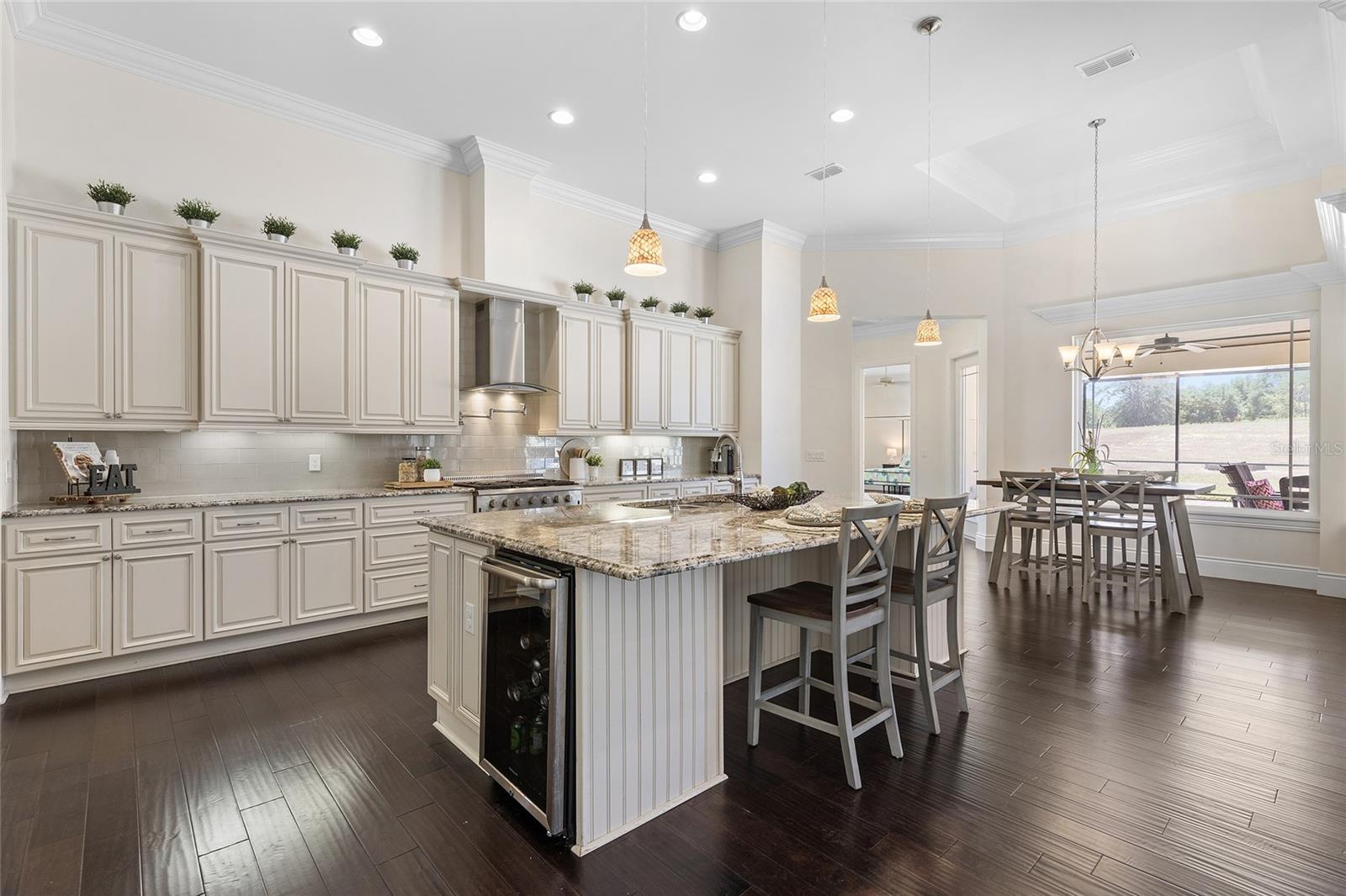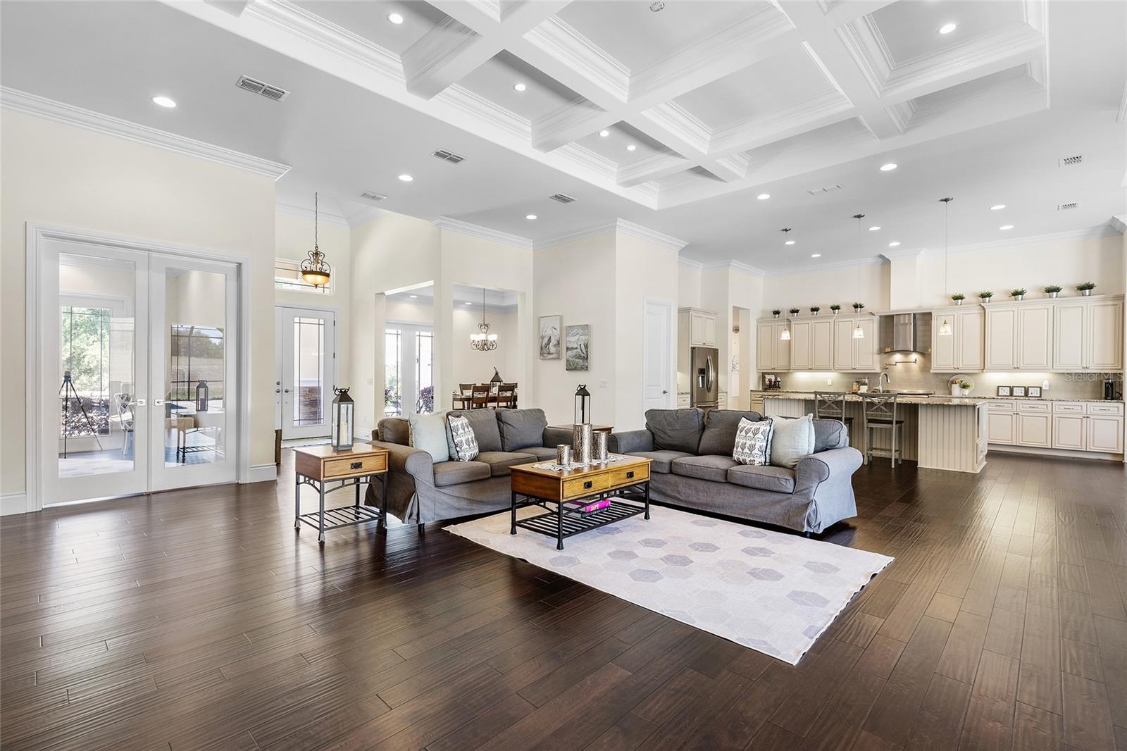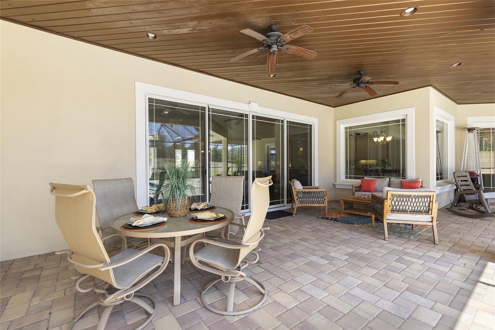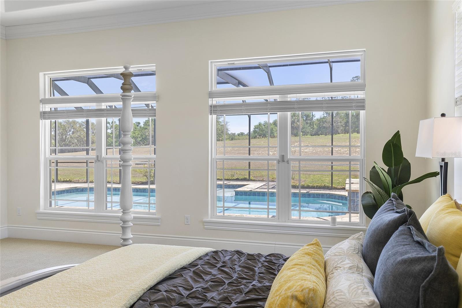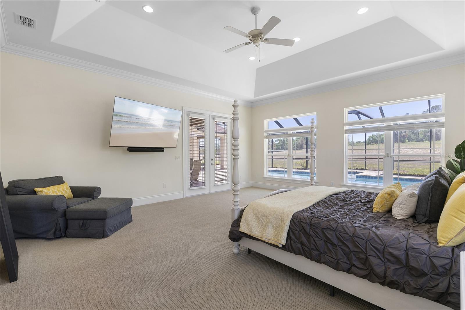 Welcome Home ! PRICE IMPROVEMENT - Don't let this one slip through your fingers !! Nestled in the serene Saddle Ridge Community just minutes from The Villages, this stately stucco home offers an unparalleled blend of luxury and tranquility. Spanning 4,218 square feet of living space on nearly 4 acres of meticulously manicured grounds, this estate boasts privacy and natural beauty. The property features a 3-car garage with 10' ceilings, a Tesla battery wall, and an electric car charger, offering convenient, energy-efficient options for electric vehicles. Additionally, the home includes a private pickleball court, complemented by a pavered rear screened enclosure surrounding the sparkling heated saltwater pool. This custom built home showcases 5 bedrooms and 3.5 baths, including an impressive primary en-suite and an additional en-suite bed-bath combination. Inside, discover 7" baseboards, crown molding, tray ceilings, and volume ceilings throughout, enhancing the spacious and elegant atmosphere. The main areas feature engineered wood flooring, while modern lighting illuminates every corner. The gourmet kitchen is a chef's dream, featuring beautiful quartz countertops, an abundance of cabinetry, and ample countertop space perfect for both meal prep and entertaining. The kitchen also boasts custom cabinets, a walk-in pantry, a hot water heater at the sink for instant hot water, and a gas stove for cooking. Enjoy the eat-in space situated next to the pool and view of the property, plus a spacious separate formal dining room for entertaining. Primary suite is spacious with door-entry to the pool and The home’s energy efficiency is elevated with a fully paid-for solar panel system, offering significant energy savings and reducing your carbon footprint. This environmentally friendly addition ensures lower utility bills, providing both financial savings and peace of mind while maintaining modern luxury living. Additionally, the primary bedroom retreat includes two huge walk-in closets and a luxurious bathroom with an expansive shower, soaking tub, and separate vanities. Enjoy the natural beauty of the property from the living room of this home and enjoy the modern gas fireplace accent wall. Coffered and crowned ceilings are an amazing architectural detail you'll enjoy. The property also boasts its own private pickleball court, perfect for both recreation and exercise right in your backyard. Termite Bond renewed March 2025. Additional features include a fully restored Yamaha gas golf cart and an exceptional location within a tranquil gated community. Saddle Ridge offers low HOA dues, exclusive access to approximately 300 acres of wildlife preserve, and just 22 lots, ensuring a private and serene setting. Experience the ultimate in energy-efficient, luxury living. Schedule your private tour today and make this extraordinary estate your new home.