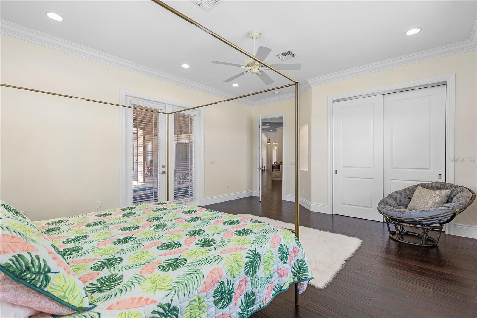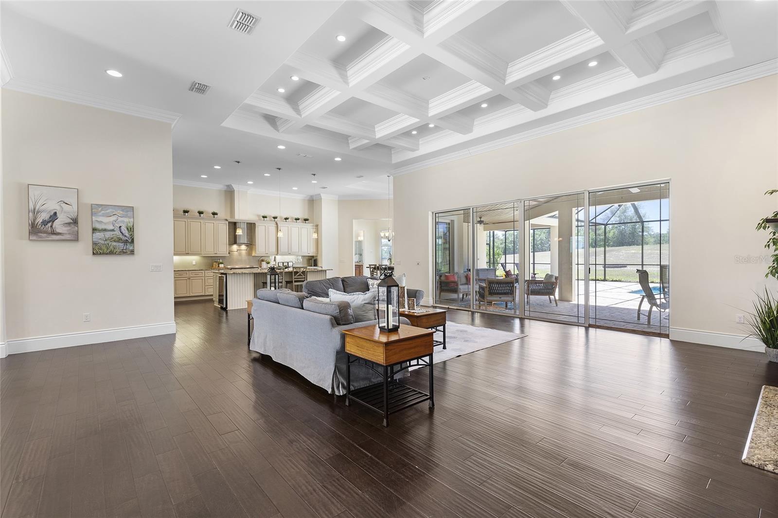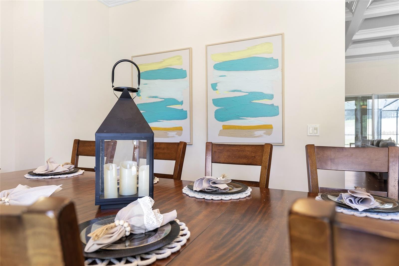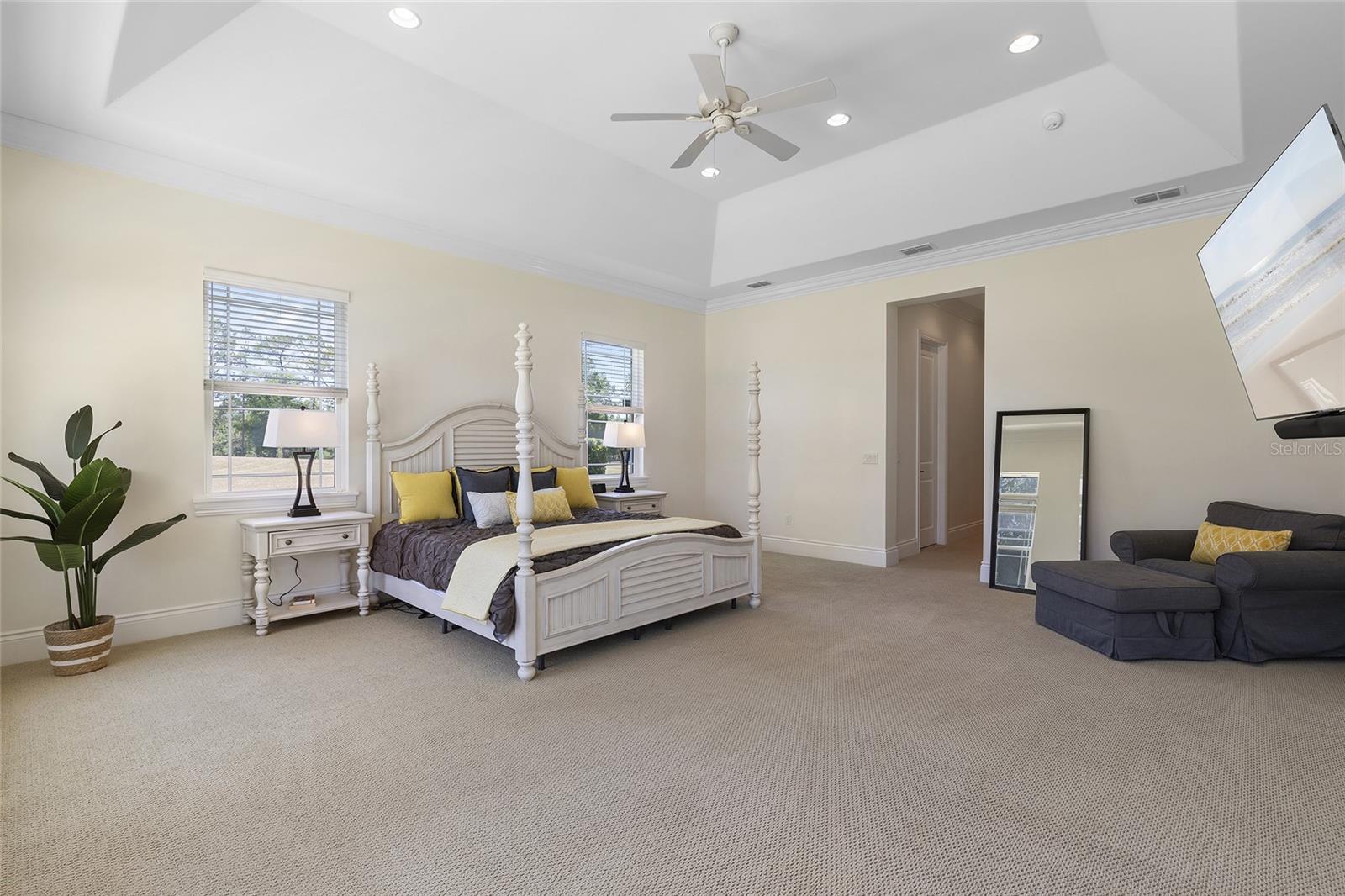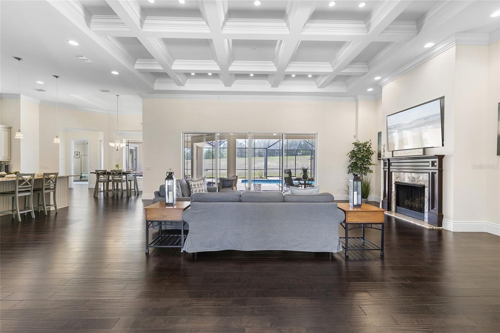 Welcome Home ! PRICE IMPROVEMENT - Don't let this one slip through your fingers !! Nestled in the serene Saddle Ridge Community just minutes from The Villages, this stately stucco home offers an unparalleled blend of luxury and tranquility. Spanning 4,218 square feet of living space on nearly 4 acres of meticulously manicured grounds, this estate boasts privacy and natural beauty. The property features a 3-car garage with 10' ceilings, a Tesla battery wall, and an electric car charger, offering convenient, energy-efficient options for electric vehicles. Additionally, the home includes a private pickleball court, complemented by a pavered rear screened enclosure surrounding the sparkling heated saltwater pool. This custom built home showcases 5 bedrooms and 3.5 baths, including an impressive primary en-suite and an additional en-suite bed-bath combination. Inside, discover 7" baseboards, crown molding, tray ceilings, and volume ceilings throughout, enhancing the spacious and elegant atmosphere. The main areas feature engineered wood flooring, while modern lighting illuminates every corner. The gourmet kitchen is a chef's dream, featuring beautiful quartz countertops, an abundance of cabinetry, and ample countertop space perfect for both meal prep and entertaining. The kitchen also boasts custom cabinets, a walk-in pantry, a hot water heater at the sink for instant hot water, and a gas stove for cooking. Enjoy the eat-in space situated next to the pool and view of the property, plus a spacious separate formal dining room for entertaining. Primary suite is spacious with door-entry to the pool and The home’s energy efficiency is elevated with a fully paid-for solar panel system, offering significant energy savings and reducing your carbon footprint. This environmentally friendly addition ensures lower utility bills, providing both financial savings and peace of mind while maintaining modern luxury living. Additionally, the primary bedroom retreat includes two huge walk-in closets and a luxurious bathroom with an expansive shower, soaking tub, and separate vanities. Enjoy the natural beauty of the property from the living room of this home and enjoy the modern gas fireplace accent wall. Coffered and crowned ceilings are an amazing architectural detail you'll enjoy. The property also boasts its own private pickleball court, perfect for both recreation and exercise right in your backyard. Termite Bond renewed March 2025. Additional features include a fully restored Yamaha gas golf cart and an exceptional location within a tranquil gated community. Saddle Ridge offers low HOA dues, exclusive access to approximately 300 acres of wildlife preserve, and just 22 lots, ensuring a private and serene setting. Experience the ultimate in energy-efficient, luxury living. Schedule your private tour today and make this extraordinary estate your new home.