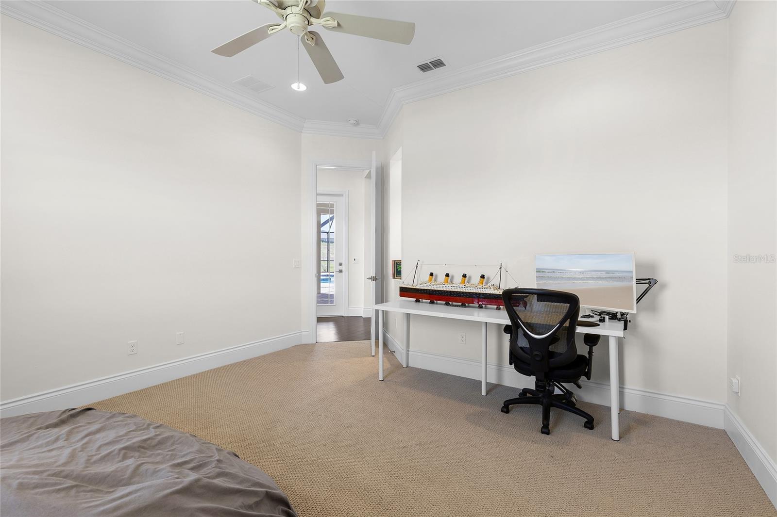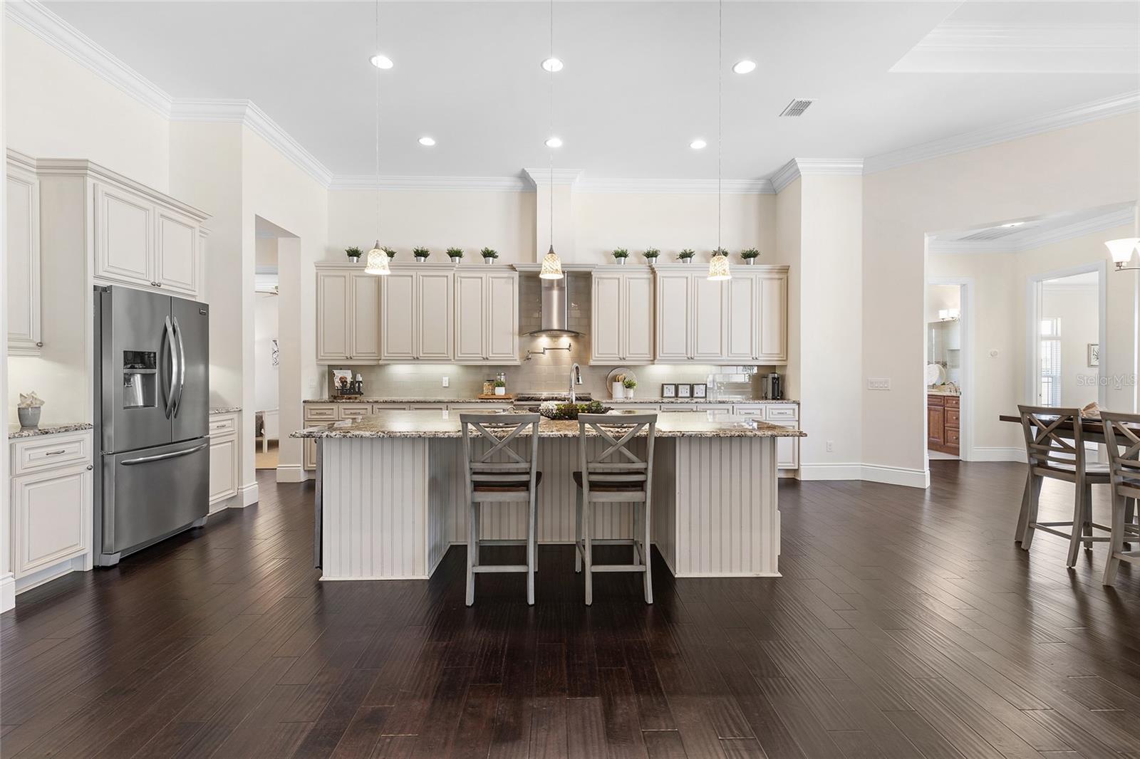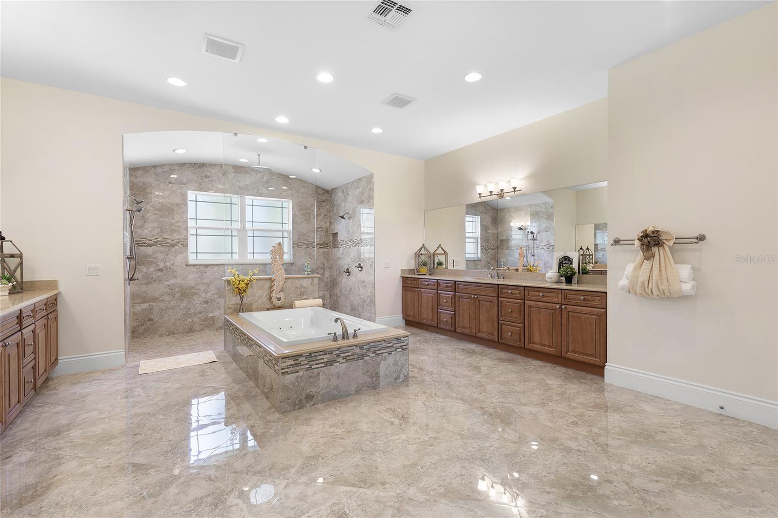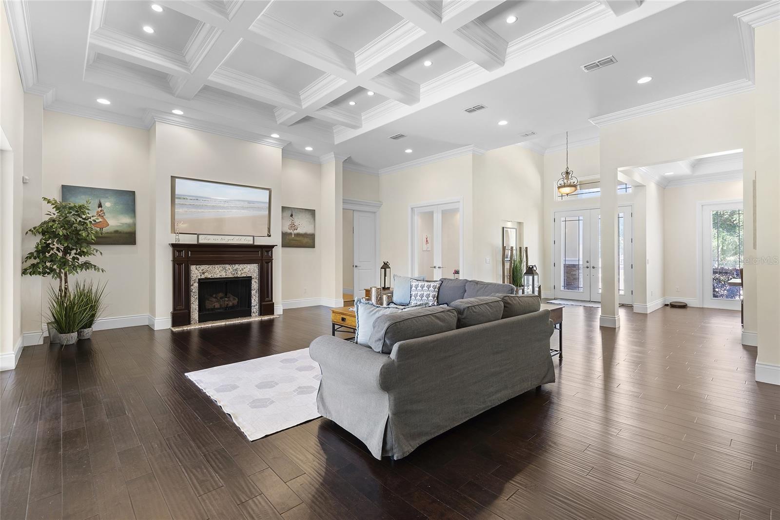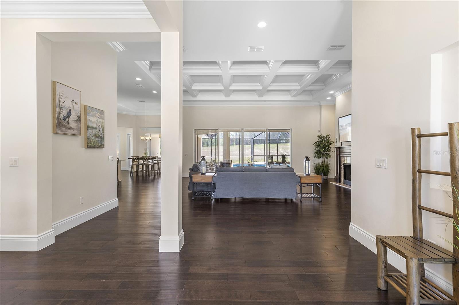 Welcome Home ! PRICE IMPROVEMENT - Don't let this one slip through your fingers !! Nestled in the serene Saddle Ridge Community just minutes from The Villages, this stately stucco home offers an unparalleled blend of luxury and tranquility. Spanning 4,218 square feet of living space on nearly 4 acres of meticulously manicured grounds, this estate boasts privacy and natural beauty. The property features a 3-car garage with 10' ceilings, a Tesla battery wall, and an electric car charger, offering convenient, energy-efficient options for electric vehicles. Additionally, the home includes a private pickleball court, complemented by a pavered rear screened enclosure surrounding the sparkling heated saltwater pool. This custom built home showcases 5 bedrooms and 3.5 baths, including an impressive primary en-suite and an additional en-suite bed-bath combination. Inside, discover 7" baseboards, crown molding, tray ceilings, and volume ceilings throughout, enhancing the spacious and elegant atmosphere. The main areas feature engineered wood flooring, while modern lighting illuminates every corner. The gourmet kitchen is a chef's dream, featuring beautiful quartz countertops, an abundance of cabinetry, and ample countertop space perfect for both meal prep and entertaining. The kitchen also boasts custom cabinets, a walk-in pantry, a hot water heater at the sink for instant hot water, and a gas stove for cooking. Enjoy the eat-in space situated next to the pool and view of the property, plus a spacious separate formal dining room for entertaining. Primary suite is spacious with door-entry to the pool and The home’s energy efficiency is elevated with a fully paid-for solar panel system, offering significant energy savings and reducing your carbon footprint. This environmentally friendly addition ensures lower utility bills, providing both financial savings and peace of mind while maintaining modern luxury living. Additionally, the primary bedroom retreat includes two huge walk-in closets and a luxurious bathroom with an expansive shower, soaking tub, and separate vanities. Enjoy the natural beauty of the property from the living room of this home and enjoy the modern gas fireplace accent wall. Coffered and crowned ceilings are an amazing architectural detail you'll enjoy. The property also boasts its own private pickleball court, perfect for both recreation and exercise right in your backyard. Termite Bond renewed March 2025. Additional features include a fully restored Yamaha gas golf cart and an exceptional location within a tranquil gated community. Saddle Ridge offers low HOA dues, exclusive access to approximately 300 acres of wildlife preserve, and just 22 lots, ensuring a private and serene setting. Experience the ultimate in energy-efficient, luxury living. Schedule your private tour today and make this extraordinary estate your new home.