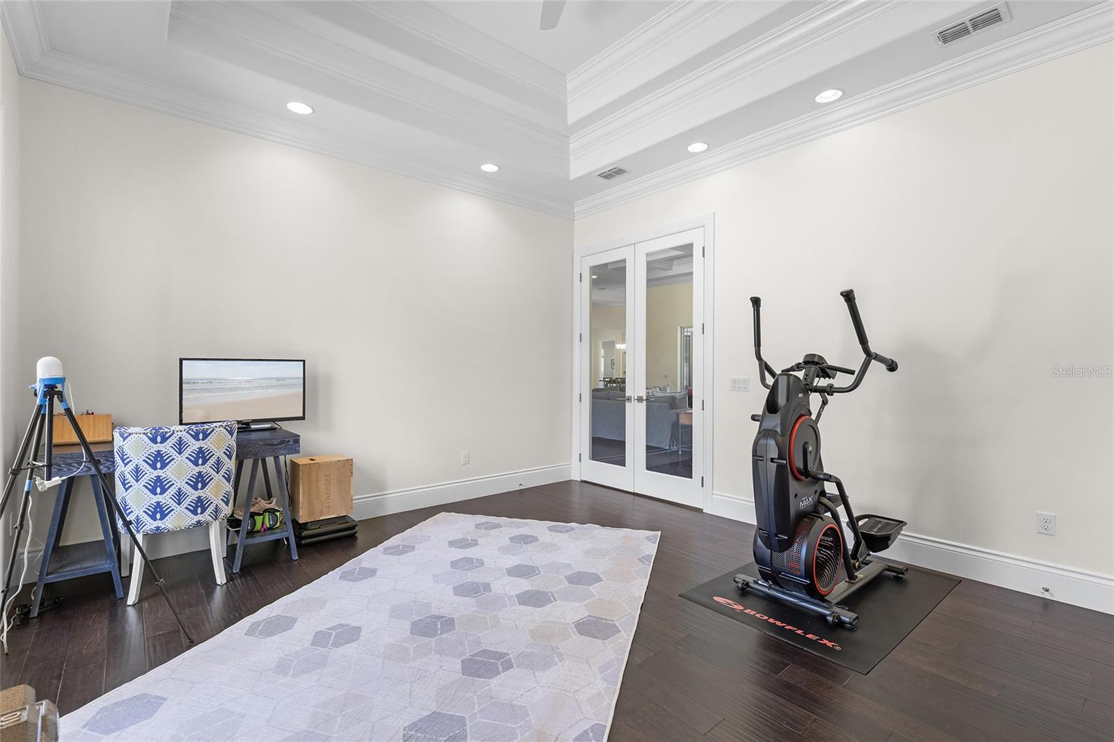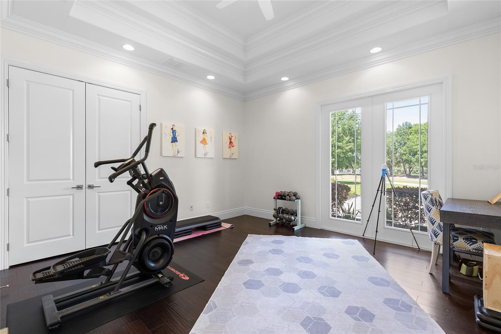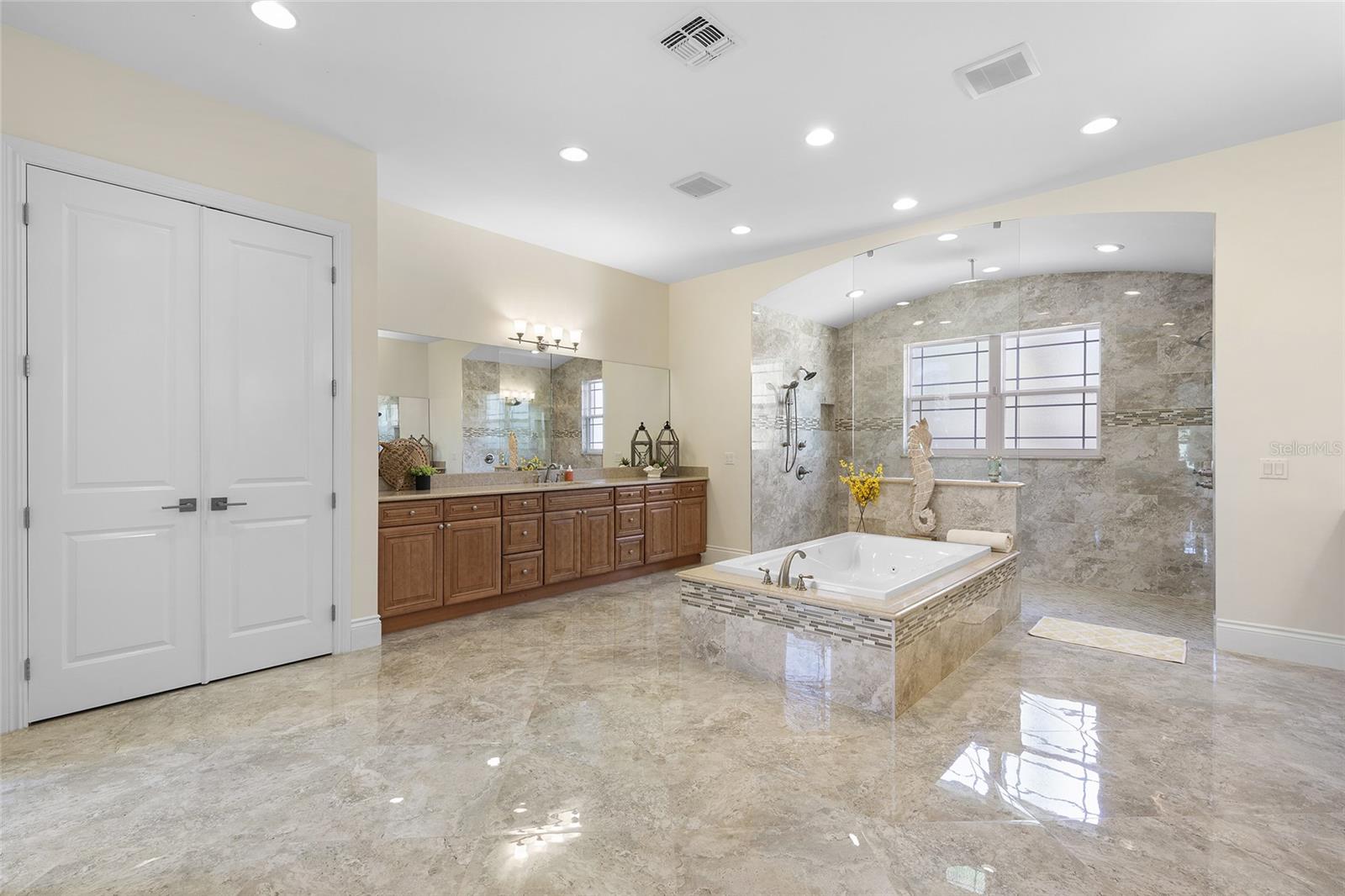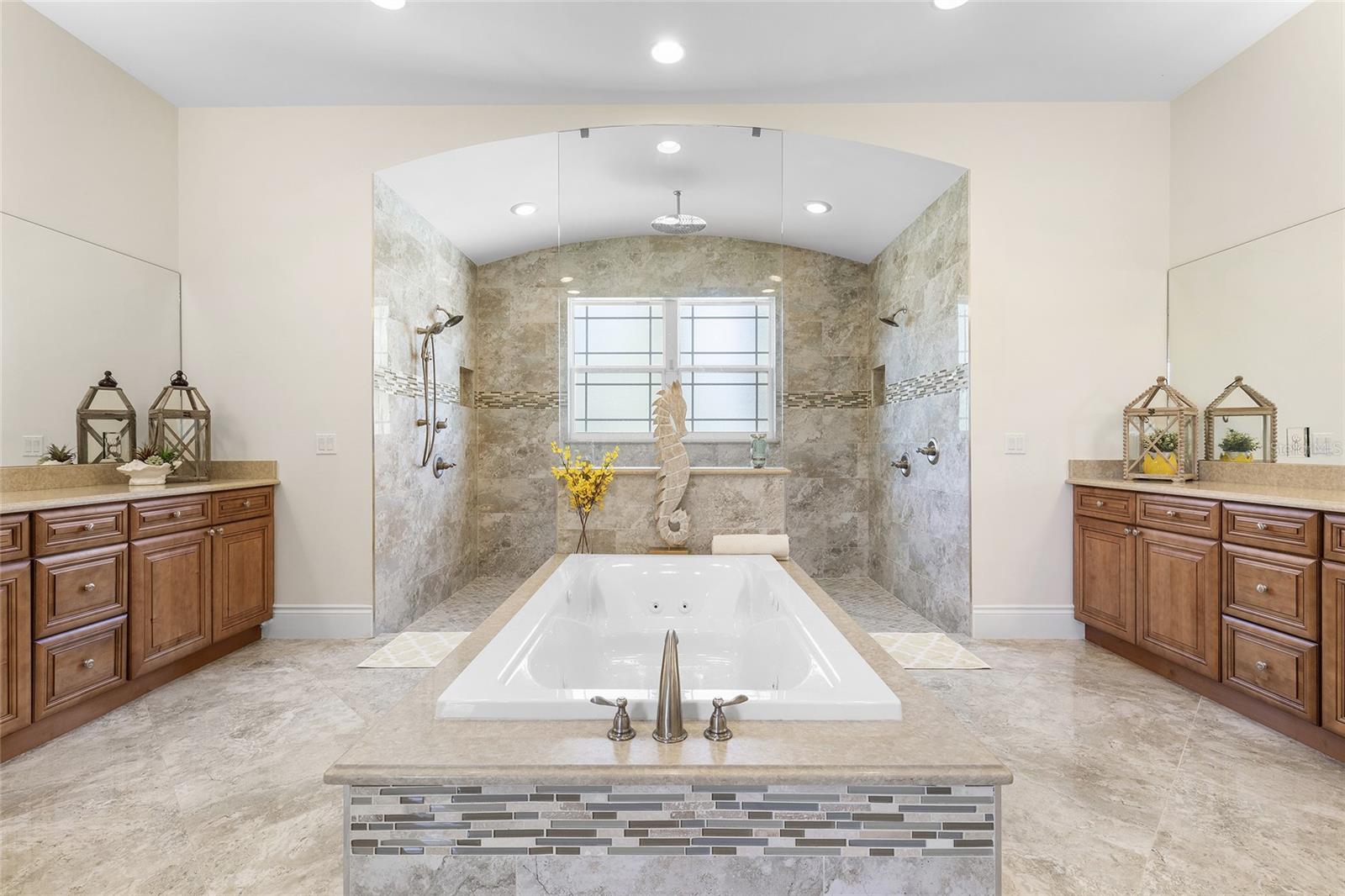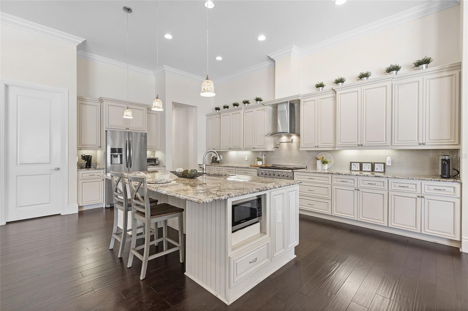 Welcome Home ! PRICE IMPROVEMENT - Don't let this one slip through your fingers !! Nestled in the serene Saddle Ridge Community just minutes from The Villages, this stately stucco home offers an unparalleled blend of luxury and tranquility. Spanning 4,218 square feet of living space on nearly 4 acres of meticulously manicured grounds, this estate boasts privacy and natural beauty. The property features a 3-car garage with 10' ceilings, a Tesla battery wall, and an electric car charger, offering convenient, energy-efficient options for electric vehicles. Additionally, the home includes a private pickleball court, complemented by a pavered rear screened enclosure surrounding the sparkling heated saltwater pool. This custom built home showcases 5 bedrooms and 3.5 baths, including an impressive primary en-suite and an additional en-suite bed-bath combination. Inside, discover 7" baseboards, crown molding, tray ceilings, and volume ceilings throughout, enhancing the spacious and elegant atmosphere. The main areas feature engineered wood flooring, while modern lighting illuminates every corner. The gourmet kitchen is a chef's dream, featuring beautiful quartz countertops, an abundance of cabinetry, and ample countertop space perfect for both meal prep and entertaining. The kitchen also boasts custom cabinets, a walk-in pantry, a hot water heater at the sink for instant hot water, and a gas stove for cooking. Enjoy the eat-in space situated next to the pool and view of the property, plus a spacious separate formal dining room for entertaining. Primary suite is spacious with door-entry to the pool and The home’s energy efficiency is elevated with a fully paid-for solar panel system, offering significant energy savings and reducing your carbon footprint. This environmentally friendly addition ensures lower utility bills, providing both financial savings and peace of mind while maintaining modern luxury living. Additionally, the primary bedroom retreat includes two huge walk-in closets and a luxurious bathroom with an expansive shower, soaking tub, and separate vanities. Enjoy the natural beauty of the property from the living room of this home and enjoy the modern gas fireplace accent wall. Coffered and crowned ceilings are an amazing architectural detail you'll enjoy. The property also boasts its own private pickleball court, perfect for both recreation and exercise right in your backyard. Termite Bond renewed March 2025. Additional features include a fully restored Yamaha gas golf cart and an exceptional location within a tranquil gated community. Saddle Ridge offers low HOA dues, exclusive access to approximately 300 acres of wildlife preserve, and just 22 lots, ensuring a private and serene setting. Experience the ultimate in energy-efficient, luxury living. Schedule your private tour today and make this extraordinary estate your new home.