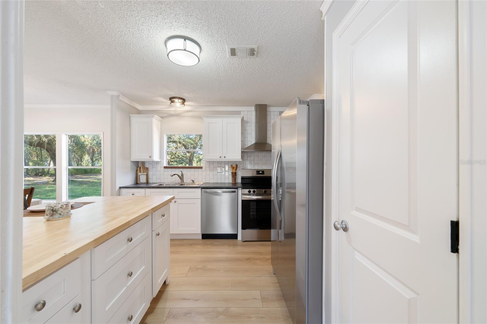 **COMPLETELY UPDATED IN 2025! **Private and Beautiful - 3 Bed/2 Bath Adorable Country FarmStyle Home awaits you on 5.88 ACRES with POND & New Landscaping! This Picturesque & Serene, FULLY FENCED, Wooded Property with 258' of POND FRONTAGE is in a TERRIFIC LOCATION near The Villages and Ocala National Forest. This NEWLY UPDATED, 1248 sq ft home has been Freshly Painted and Tastefully Renovated and is ready for you to make it your own. Recent Updates Include: *NEW* SS Kitchen Appliances (Never Used!) *NEW* White Solid Wood Kitchen Cabinetry with SOFT CLOSE Drawers/Doors. *NEW* Custom Butcher Block Island w/ Additional Lower Cabinetry. *NEW* Vinyl Plank Flooring Throughout! *NEW* Carpet in Primary Bedroom. *NEW* Master Shower & Vanity. *NEW* Plumbing Fixtures. *NEW* Guest Bath Vanity. *NEW* Front Entry and Storm Doors. All this and being sold PARTIALLY FURNISHED TOO! All bedrooms have walk-in closets. Inside Laundry Room with Maytag Washer/Dryer Included adds to the functionality and comfort of this home. **BRING YOUR HORSES** to this natural & peaceful property ideal for those who value seclusion and a connection to nature. HUGE 30'x48' POLE BARN *NEW* in 2025. The property also includes a small shed for storage and a covered shelter that can be used for equipment or as a work area. FULLY FENCED with GATED KEYPAD ENTRY, this property is ideal for horses, farm animals & pets offering ample room to explore and enjoy the outdoors including the scenic POND out back! Located at the END of a PAVED PRIVATE Cul-De-Sac/Dead End ROAD, this property combines the best of both worlds—privacy and accessibility. It’s a great opportunity to create your own peaceful haven in a desirable location. *NEW* Front Landscaping/2025. *NEW*Covered Back Porch/2025. *NEW*Roof/2023. *NEW*Paint 16’X16’ Front Deck (Built in 2021). *NEW*HVAC/2020. New 2025 Tractor & Implements available for purchase separately.