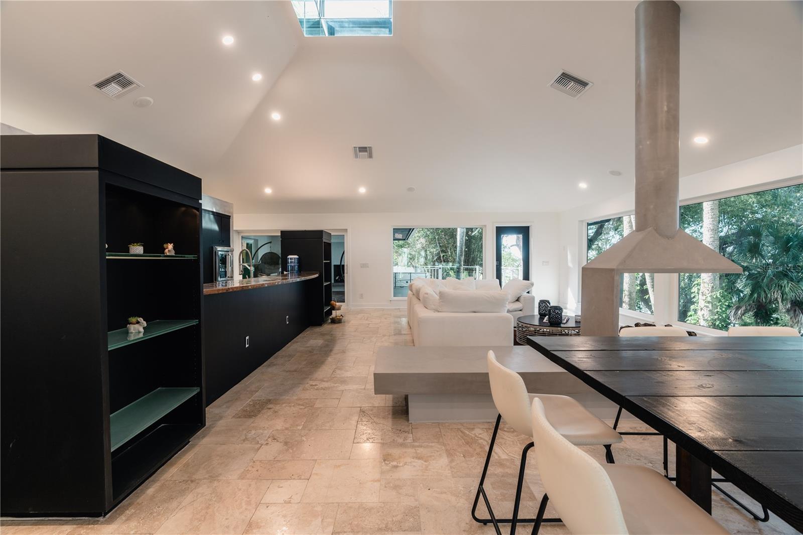Welcome to lakeside perfection! This recently renovated 3-bedroom, 4-bathroom, 2-story house features a 180 degree breath taking view of Lake Weir. Boasting a modern aesthetic and thoughtful upgrades, this home is a haven of comfort and style. Step inside to discover a bright and airy living space, complemented by the warmth of natural light pouring in through brand new windows. The contemporary design extends to a gleaming new metal roof overhead, ensuring durability and timeless appeal. As you explore the property, the attention to detail becomes evident. The gourmet kitchen is a chef's dream that features views of the lake, while the three spacious bedrooms provide a retreat for every member of the household. Pamper yourself in the luxurious steam room, a spa-like feature that adds a touch of indulgence to daily life. With four well-appointed bathrooms, convenience is at the forefront of this home's design. Step outside to experience the epitome of lakeside living. A private boat dock and boat lift beckon water enthusiasts, while 100 feet of beachfront offers a serene escape along the shores of Lake Weir. Stay comfortable year-round with a new air conditioning system, making this home the perfect blend of modern amenities and natural beauty. This lake house is more than just a residence; it's a lifestyle, inviting you to embrace the tranquility and adventure that lakefront living affords. Your dream home awaits – schedule a showing and immerse yourself in the allure of this lakeside retreat today!