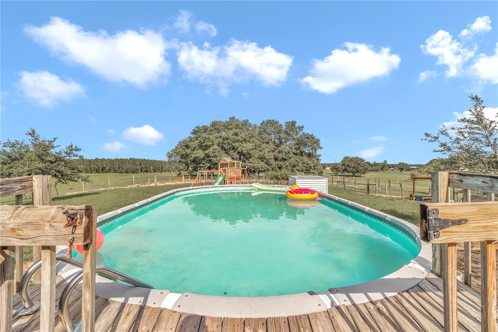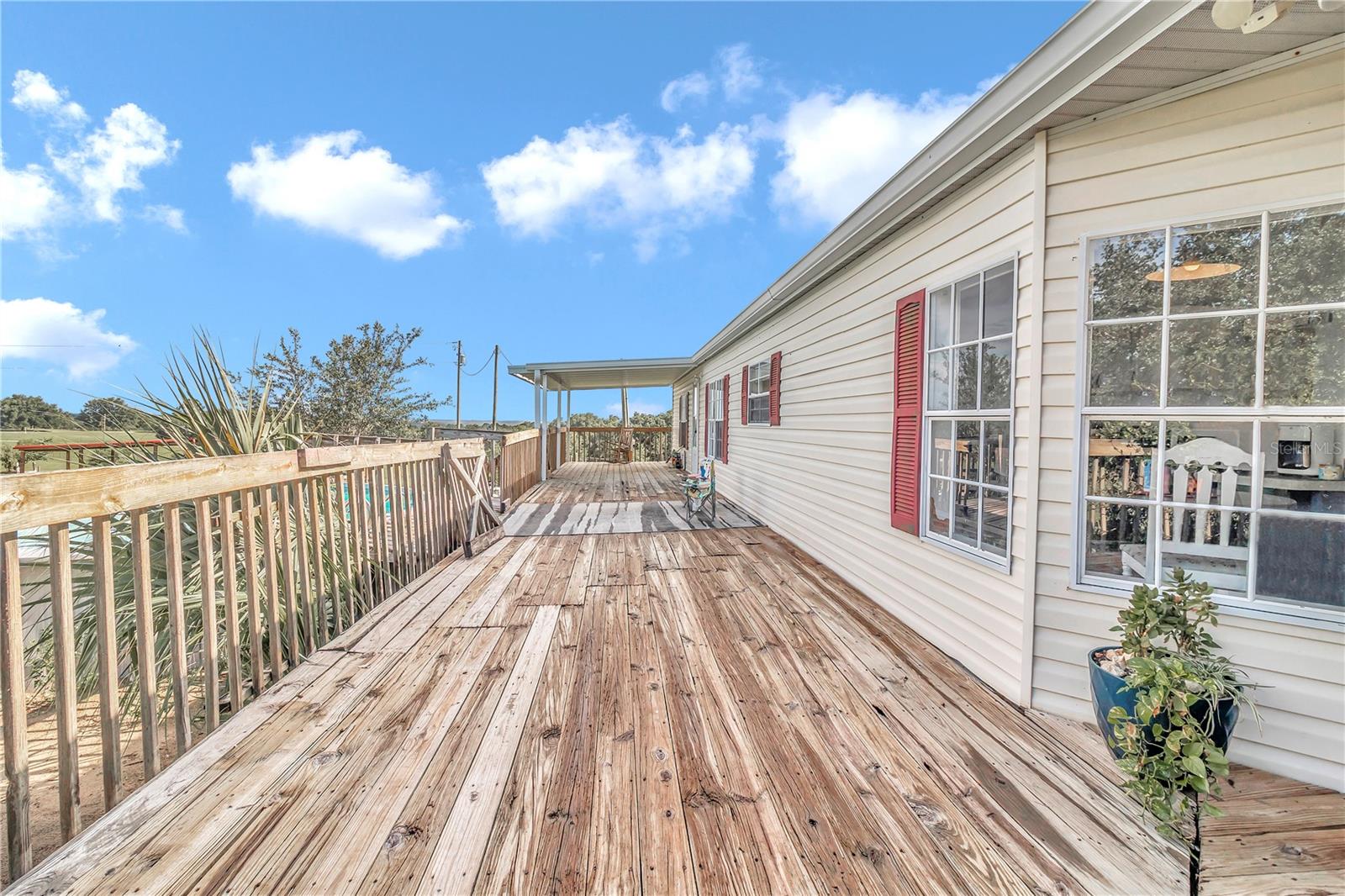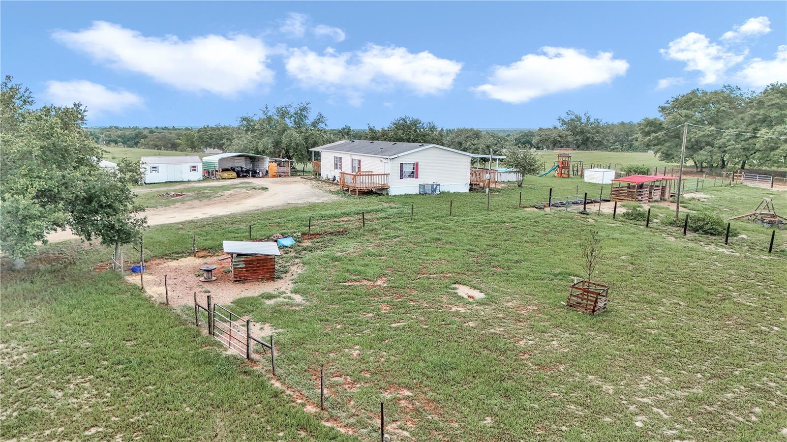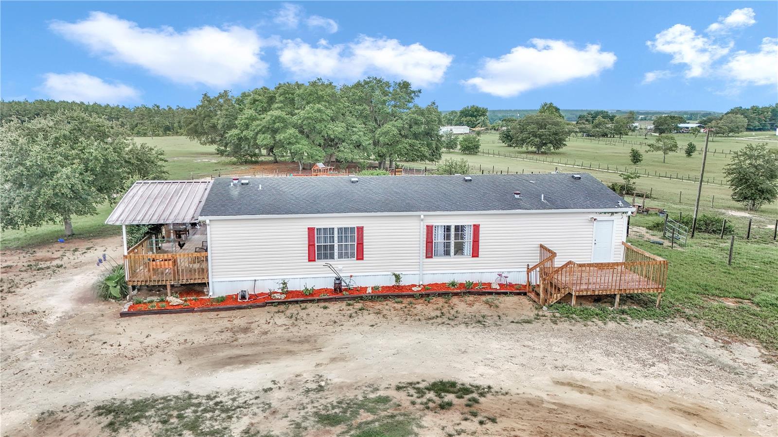 3 Bedroom 2 Bathroom home on 10 acres of pristine pasture land close to everything!! Featuring a split bedroom plan, breakfast nook in kitchen, large living and dining areas plus it's light & bright with plenty of windows. The Kitchen is a galley style and has an eating area that leads to a covered porch. The Kitchen faucet has a drinking water system as well as a filtration system at the well pump. Outside you will find 10 acres of fenced and cross fenced land, a 2 sheds a 2 car carport, a chicken coop, 3 paddocks with a large lean-to in each paddock. Water has been run to the paddocks in several places. A 33'x18' above ground pool, swing set, sand box and a fenced garden will keep you busy all day! A hand pump was installed on the 254 foot deep well and provides drinking quality water. The views from everywhere on this property are amazing! Located near all of the amenities of The Villages 24 miles from downtown Ocala featuring art galleries, restaurants and tons of entertainment. Located near Lake Wier and Eaton's Beach, plus the Ocala National Forest. Numerous equestrian related facilities such as Grand Oaks Resort (7.5 miles) and The World Equestrian Center (32 miles) are within an easy drive. This Property is at the end of unpaved road which allows for plenty of privacy in the countryside. This is country living at it's best!