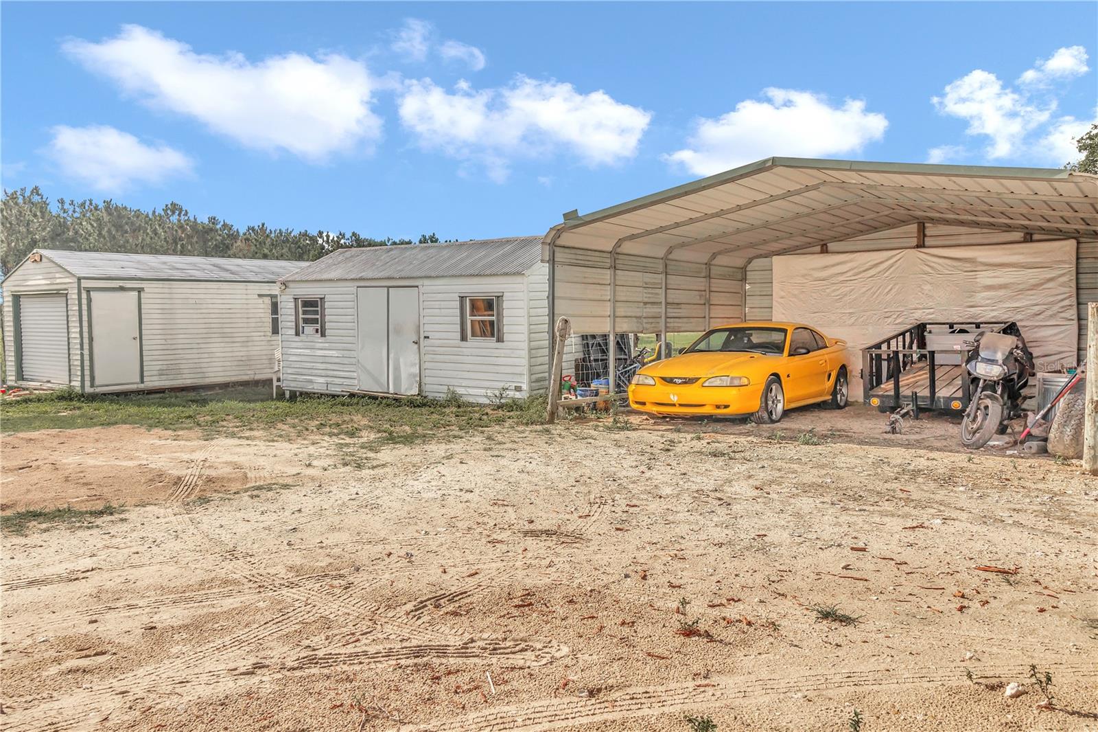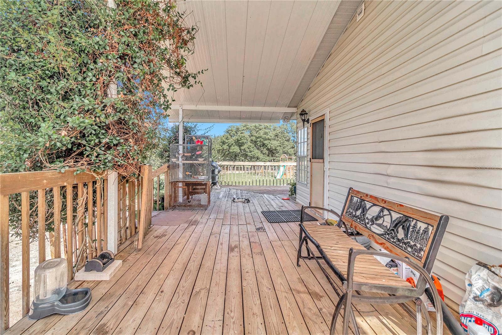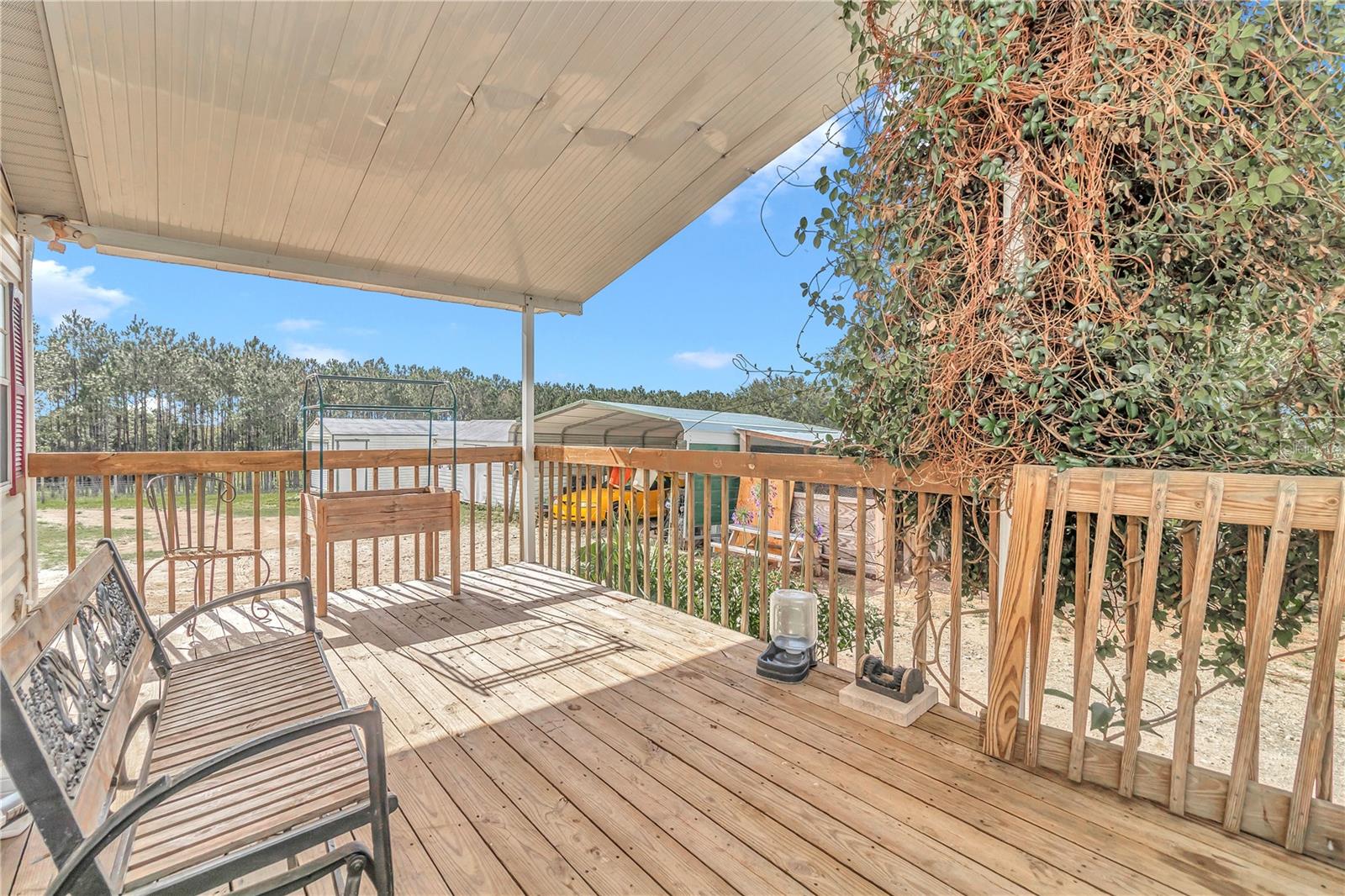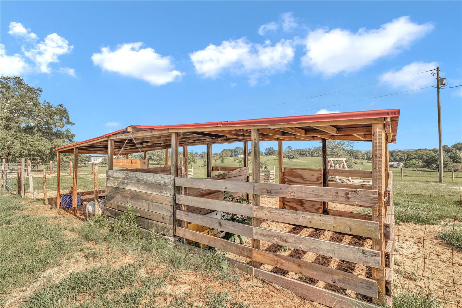 3 Bedroom 2 Bathroom home on 10 acres of pristine pasture land close to everything!! Featuring a split bedroom plan, breakfast nook in kitchen, large living and dining areas plus it's light & bright with plenty of windows. The Kitchen is a galley style and has an eating area that leads to a covered porch. The Kitchen faucet has a drinking water system as well as a filtration system at the well pump. Outside you will find 10 acres of fenced and cross fenced land, a 2 sheds a 2 car carport, a chicken coop, 3 paddocks with a large lean-to in each paddock. Water has been run to the paddocks in several places. A 33'x18' above ground pool, swing set, sand box and a fenced garden will keep you busy all day! A hand pump was installed on the 254 foot deep well and provides drinking quality water. The views from everywhere on this property are amazing! Located near all of the amenities of The Villages 24 miles from downtown Ocala featuring art galleries, restaurants and tons of entertainment. Located near Lake Wier and Eaton's Beach, plus the Ocala National Forest. Numerous equestrian related facilities such as Grand Oaks Resort (7.5 miles) and The World Equestrian Center (32 miles) are within an easy drive. This Property is at the end of unpaved road which allows for plenty of privacy in the countryside. This is country living at it's best!