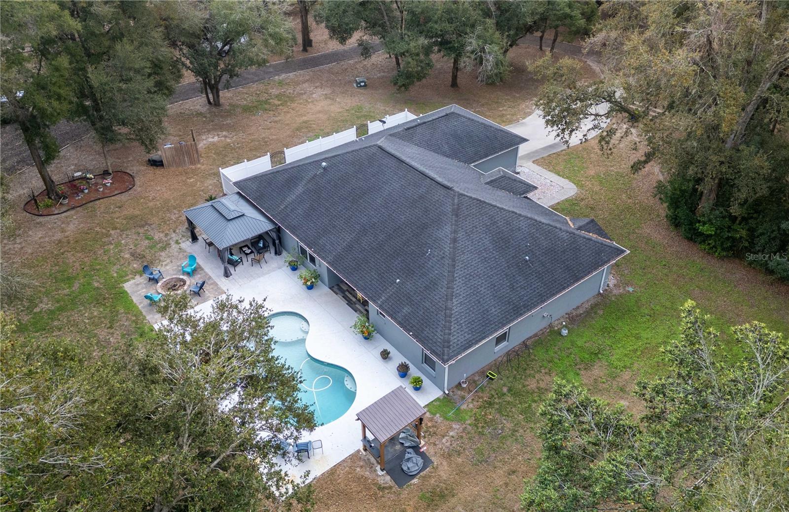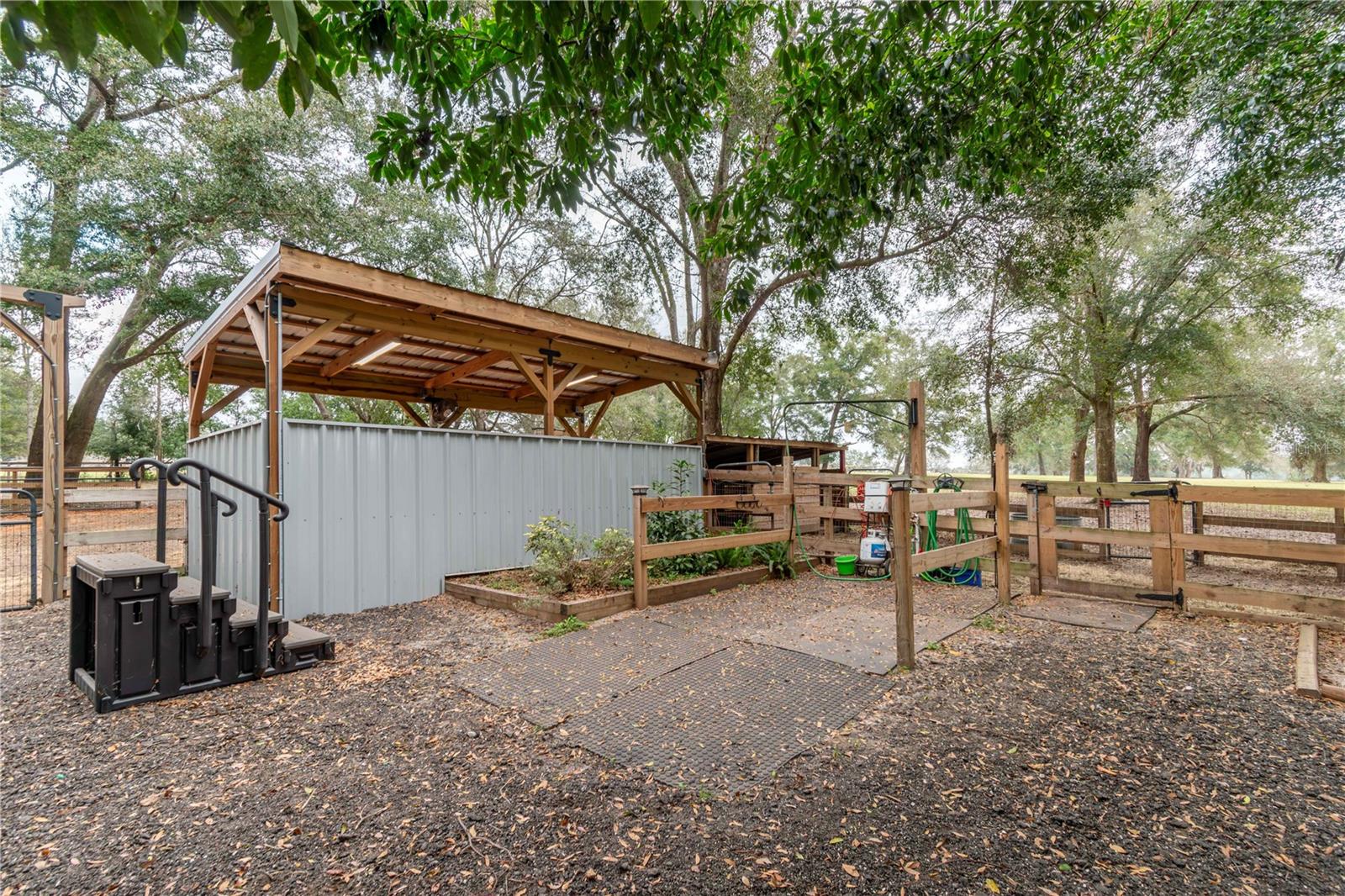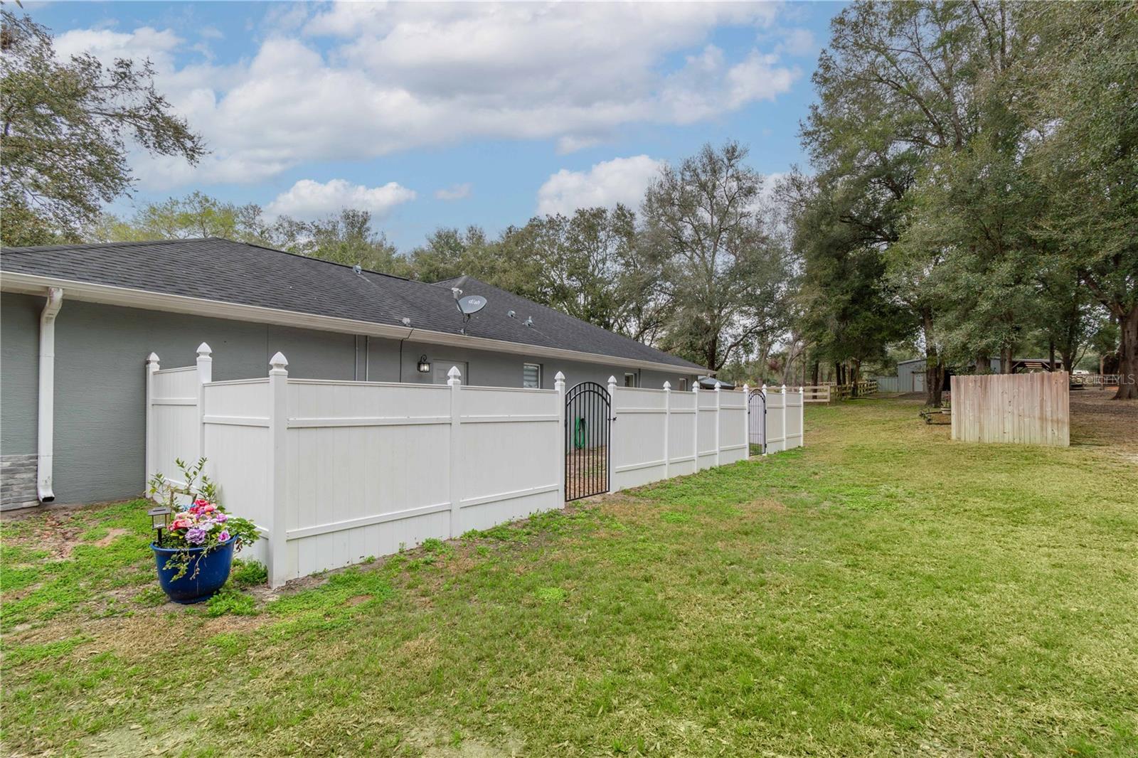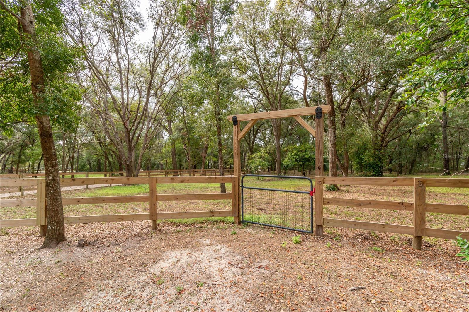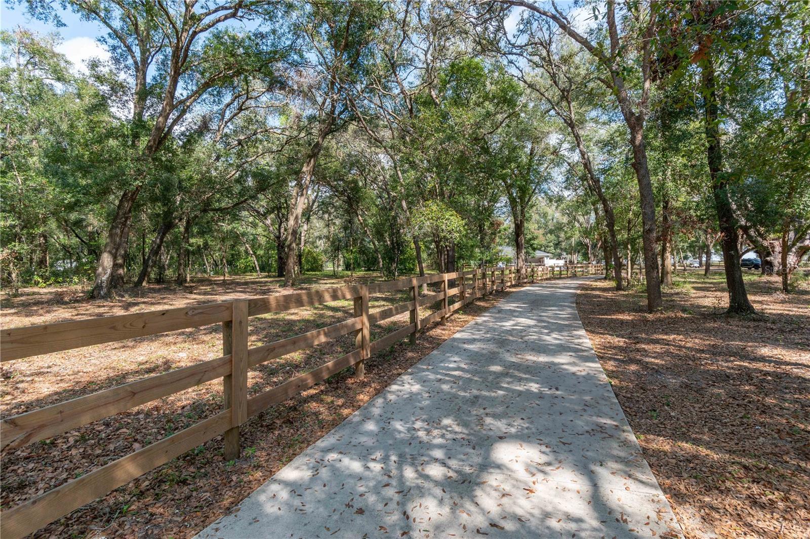 Tucked behind a gated entrance, this stunning 4-bedroom, 3-bathroom home welcomes you with a grand 335-foot paved driveway, setting the stage for a private retreat on 4.79 picturesque acres. Built in 2014, this thoughtfully designed home offers an open and airy split floor plan, accentuated by vaulted ceilings and stylish wood-look porcelain tile flooring throughout. The spacious kitchen boasts ample cabinetry, granite countertops, a striking stone tile work, and a large pantry, making it both beautiful and functional. The expansive primary suite features a generous walk-in closet and a spa-like ensuite with a stunning tiled shower equipped with dual shower heads. On the opposite side of the home, three well-sized guest bedrooms provide comfort and privacy. When the Florida sun is at its peak, step outside to your patio and gazebo and take a refreshing dip in the in-ground pool or unwind in the hot tub under the stars. Mature trees provide gentle shade, while a privacy-fenced side yard offers a secure space for pets. The property is perfectly suited for equestrian enthusiasts, offering three fenced paddocks, a well-equipped metal barn with five full stalls, a mini stall, a feed room, an air-conditioned tack room, and a wash rack. For added convenience, an RV hookup with electricity is also available. Located just minutes from Grand Oaks Resort, The Villages, and Lake Weir this exceptional property delivers the perfect blend of rural tranquility and modern comfort. Don’t miss your opportunity to own this unique slice of Florida paradise!