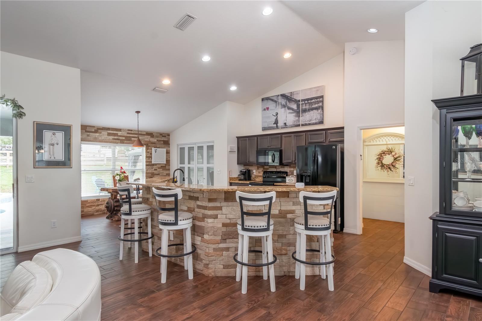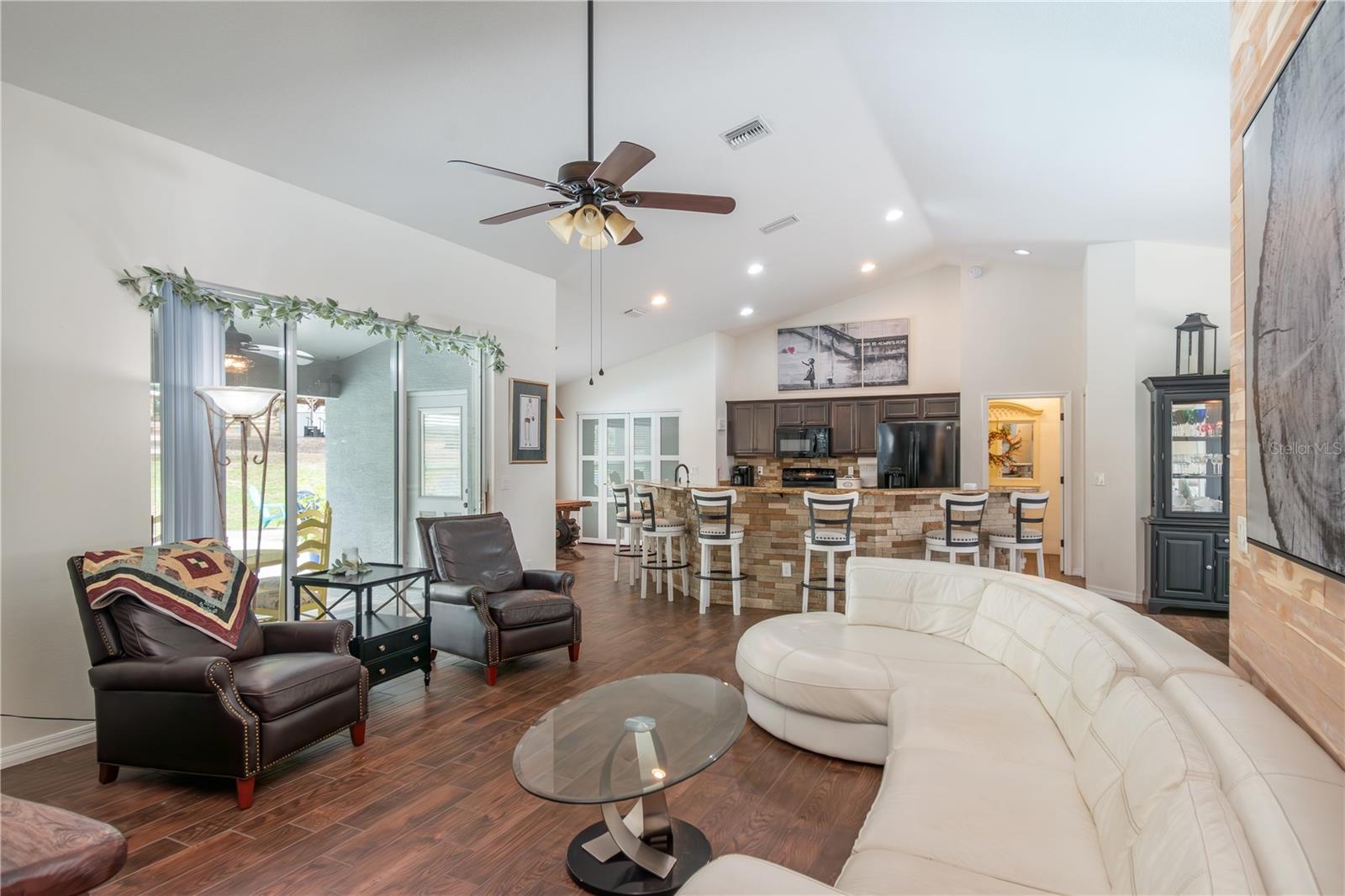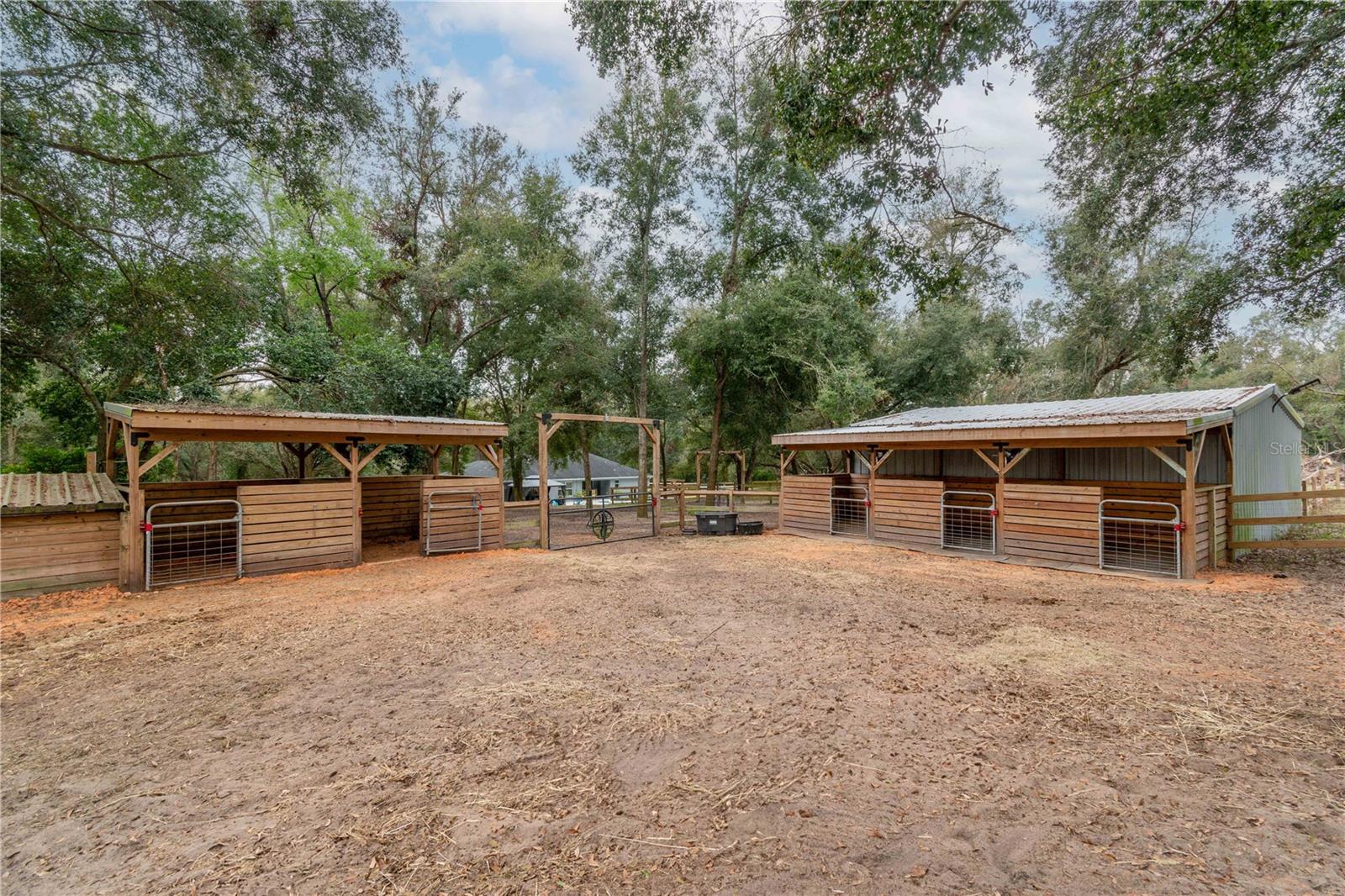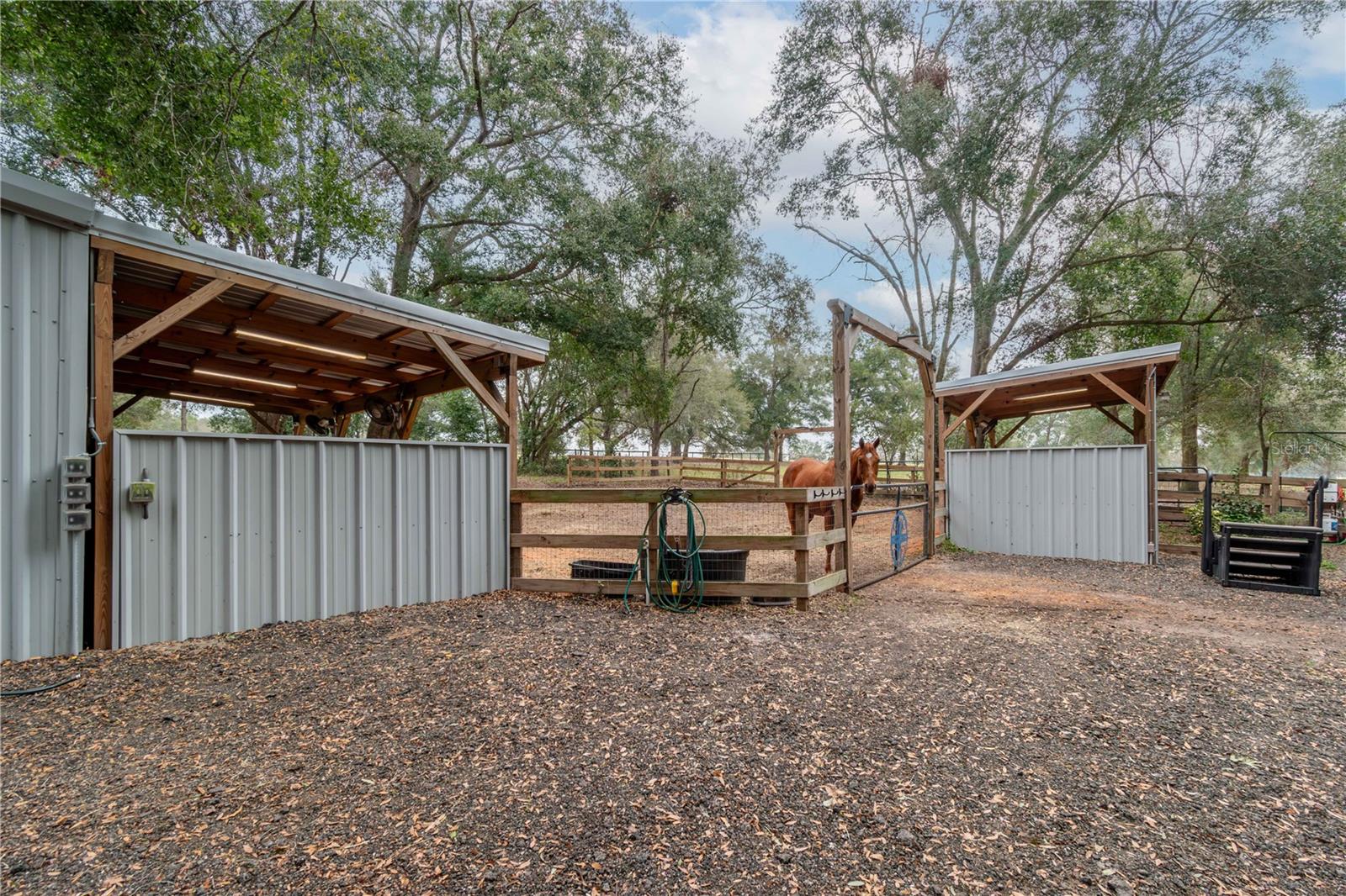 Tucked behind a gated entrance, this stunning 4-bedroom, 3-bathroom home welcomes you with a grand 335-foot paved driveway, setting the stage for a private retreat on 4.79 picturesque acres. Built in 2014, this thoughtfully designed home offers an open and airy split floor plan, accentuated by vaulted ceilings and stylish wood-look porcelain tile flooring throughout. The spacious kitchen boasts ample cabinetry, granite countertops, a striking stone tile work, and a large pantry, making it both beautiful and functional. The expansive primary suite features a generous walk-in closet and a spa-like ensuite with a stunning tiled shower equipped with dual shower heads. On the opposite side of the home, three well-sized guest bedrooms provide comfort and privacy. When the Florida sun is at its peak, step outside to your patio and gazebo and take a refreshing dip in the in-ground pool or unwind in the hot tub under the stars. Mature trees provide gentle shade, while a privacy-fenced side yard offers a secure space for pets. The property is perfectly suited for equestrian enthusiasts, offering three fenced paddocks, a well-equipped metal barn with five full stalls, a mini stall, a feed room, an air-conditioned tack room, and a wash rack. For added convenience, an RV hookup with electricity is also available. Located just minutes from Grand Oaks Resort, The Villages, and Lake Weir this exceptional property delivers the perfect blend of rural tranquility and modern comfort. Don’t miss your opportunity to own this unique slice of Florida paradise!