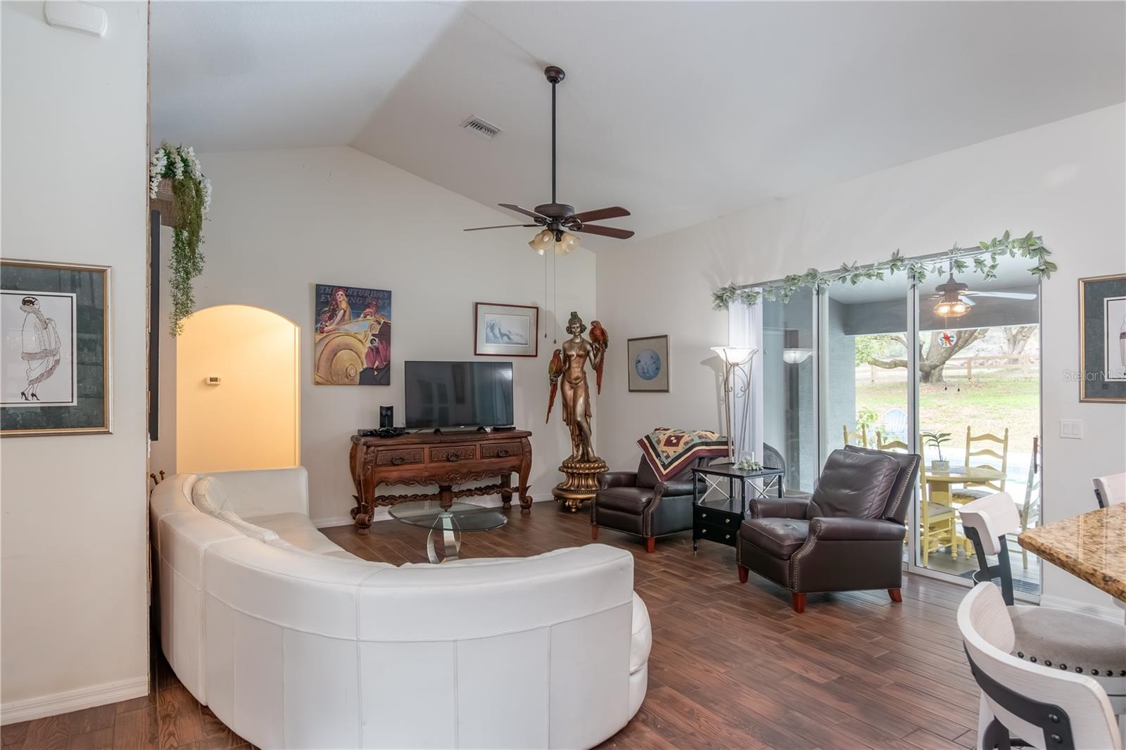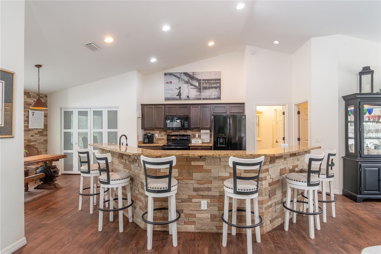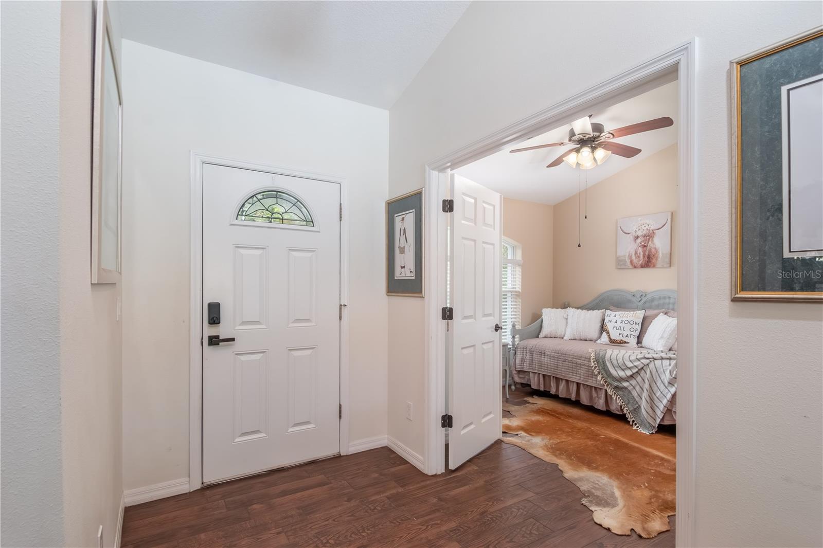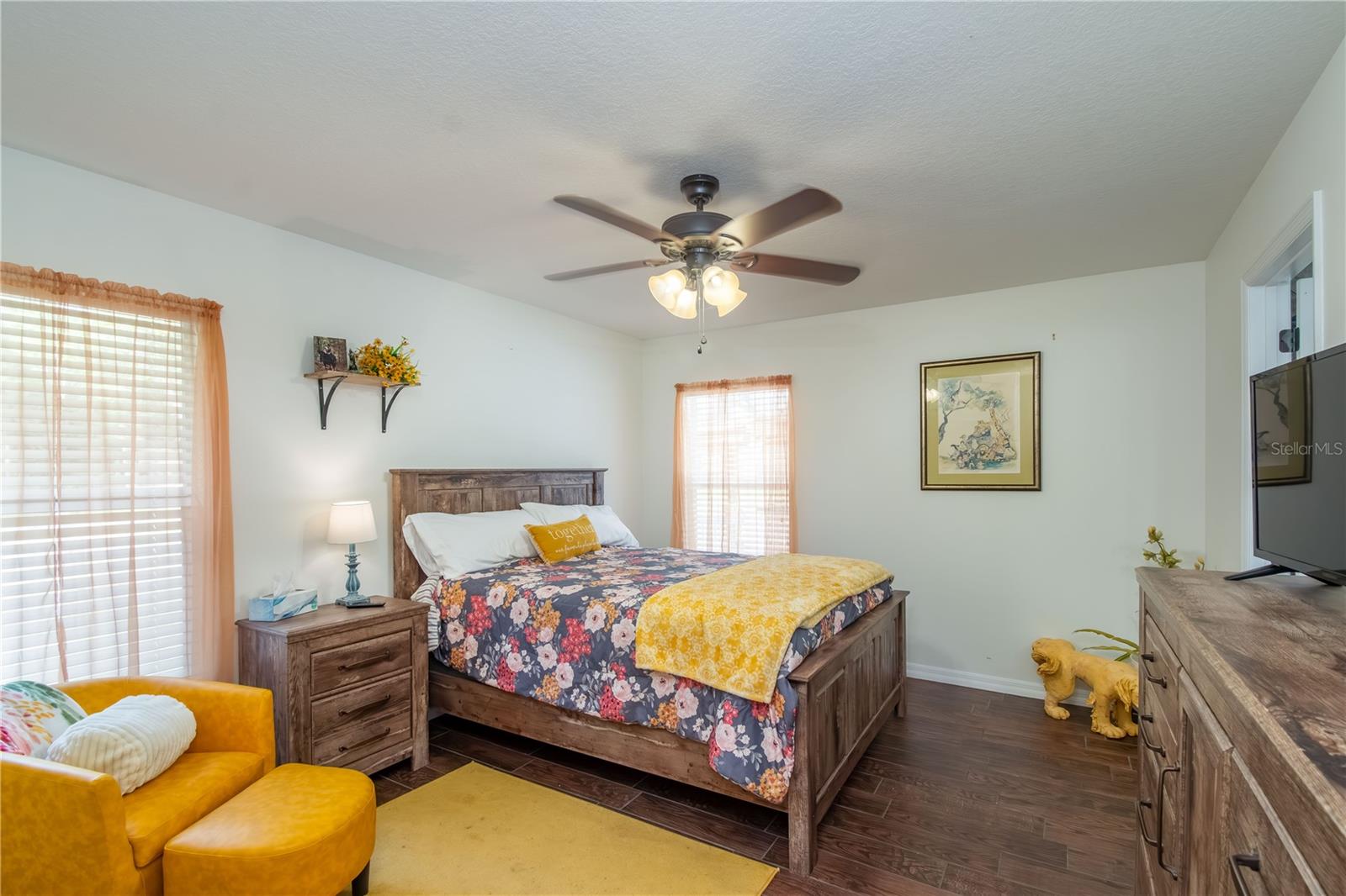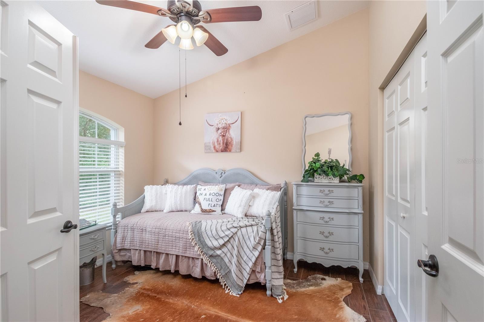 Tucked behind a gated entrance, this stunning 4-bedroom, 3-bathroom home welcomes you with a grand 335-foot paved driveway, setting the stage for a private retreat on 4.79 picturesque acres. Built in 2014, this thoughtfully designed home offers an open and airy split floor plan, accentuated by vaulted ceilings and stylish wood-look porcelain tile flooring throughout. The spacious kitchen boasts ample cabinetry, granite countertops, a striking stone tile work, and a large pantry, making it both beautiful and functional. The expansive primary suite features a generous walk-in closet and a spa-like ensuite with a stunning tiled shower equipped with dual shower heads. On the opposite side of the home, three well-sized guest bedrooms provide comfort and privacy. When the Florida sun is at its peak, step outside to your patio and gazebo and take a refreshing dip in the in-ground pool or unwind in the hot tub under the stars. Mature trees provide gentle shade, while a privacy-fenced side yard offers a secure space for pets. The property is perfectly suited for equestrian enthusiasts, offering three fenced paddocks, a well-equipped metal barn with five full stalls, a mini stall, a feed room, an air-conditioned tack room, and a wash rack. For added convenience, an RV hookup with electricity is also available. Located just minutes from Grand Oaks Resort, The Villages, and Lake Weir this exceptional property delivers the perfect blend of rural tranquility and modern comfort. Don’t miss your opportunity to own this unique slice of Florida paradise!