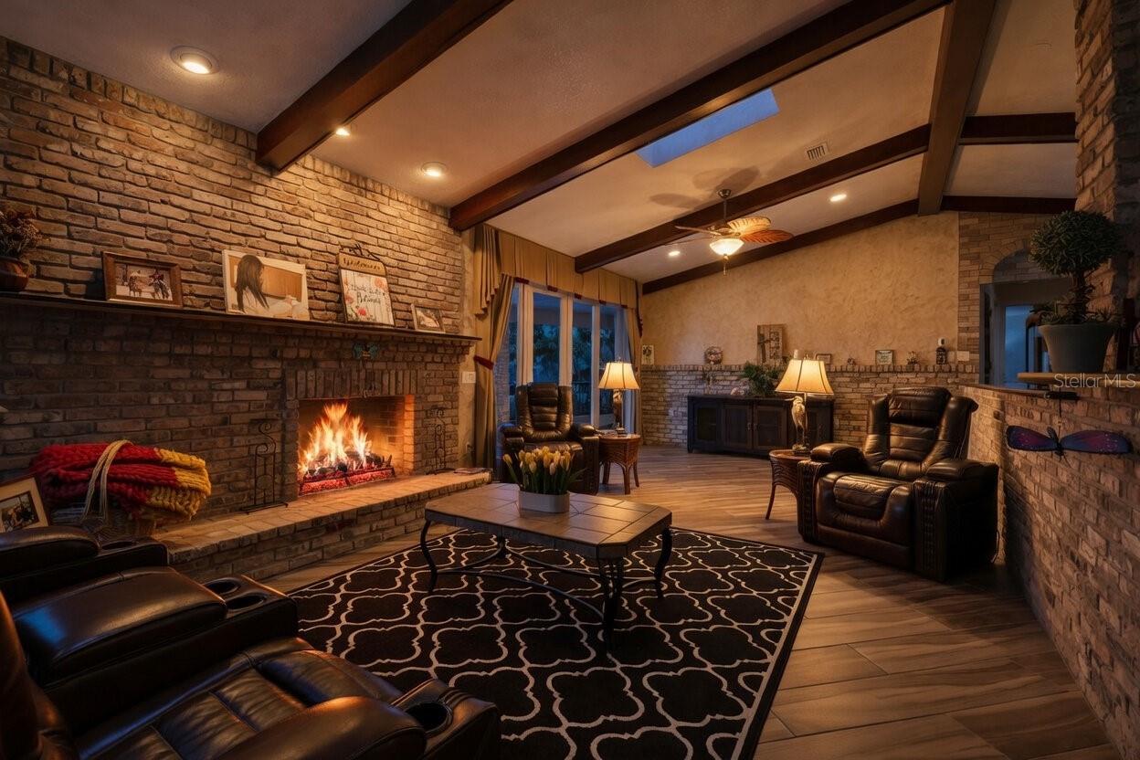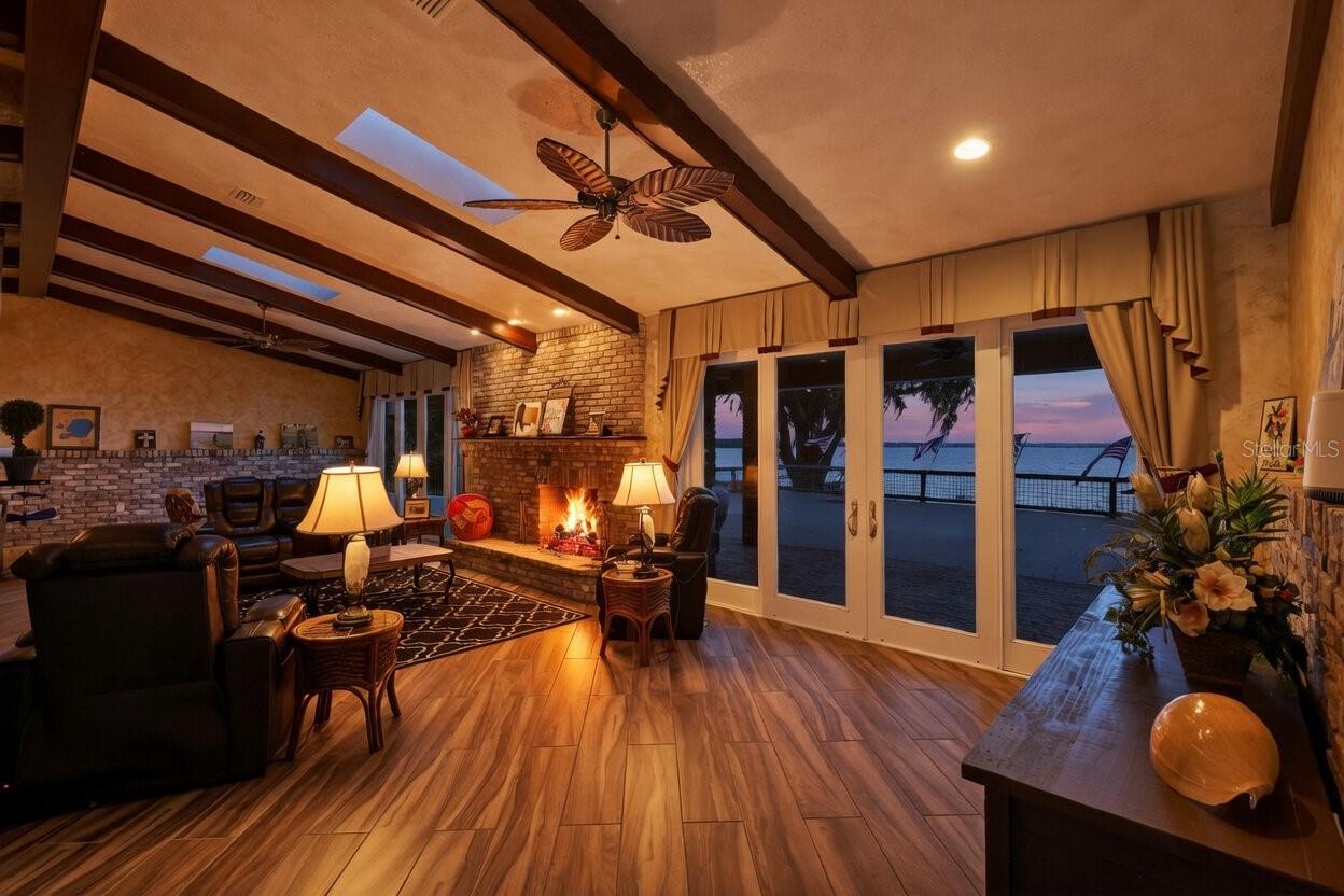 One or more photo(s) has been virtually staged. Experience elevated lakefront living on the shores of Lake Weir with this exquisitely remodeled 4 bedroom, 4 bathroom estate, perfectly positioned on 2.12 private acres with an impressive 185 feet of pristine waterfront. Designed for both luxury and comfort, three of the bedrooms offer en-suite bathrooms and spacious walk-in closets, creating an ideal retreat for family and guests alike. The home has been thoughtfully renovated from the inside out, featuring high-end stainless steel appliances, solid granite countertops throughout, rich hardwood cabinetry, and stunning custom Chicago brick accents that add warmth and character. Every detail has been carefully curated, from the professionally painted interiors to the seamless indoor-outdoor flow created by brand new sliding glass doors showcasing breathtaking lake views from the living room and three bedrooms. The inviting living space is anchored by a wood-burning fireplace and framed by panoramic water views, while the expansive 32 x 46 deck provides a front-row seat to some of the most spectacular scenery on the entire lake. The newly constructed 2024 dock and boathouse elevate the waterfront experience, complete with electric lifts for both a boat and two jet skis. Additional features include a detached carport with a covered breezeway for convenient access to the home, as well as a separate garage/workshop with its own covered carport. This is a rare opportunity to own a fully upgraded, luxury waterfront estate offering privacy, craftsmanship, and unmatched views in one of Lake Weir’s most desirable settings.