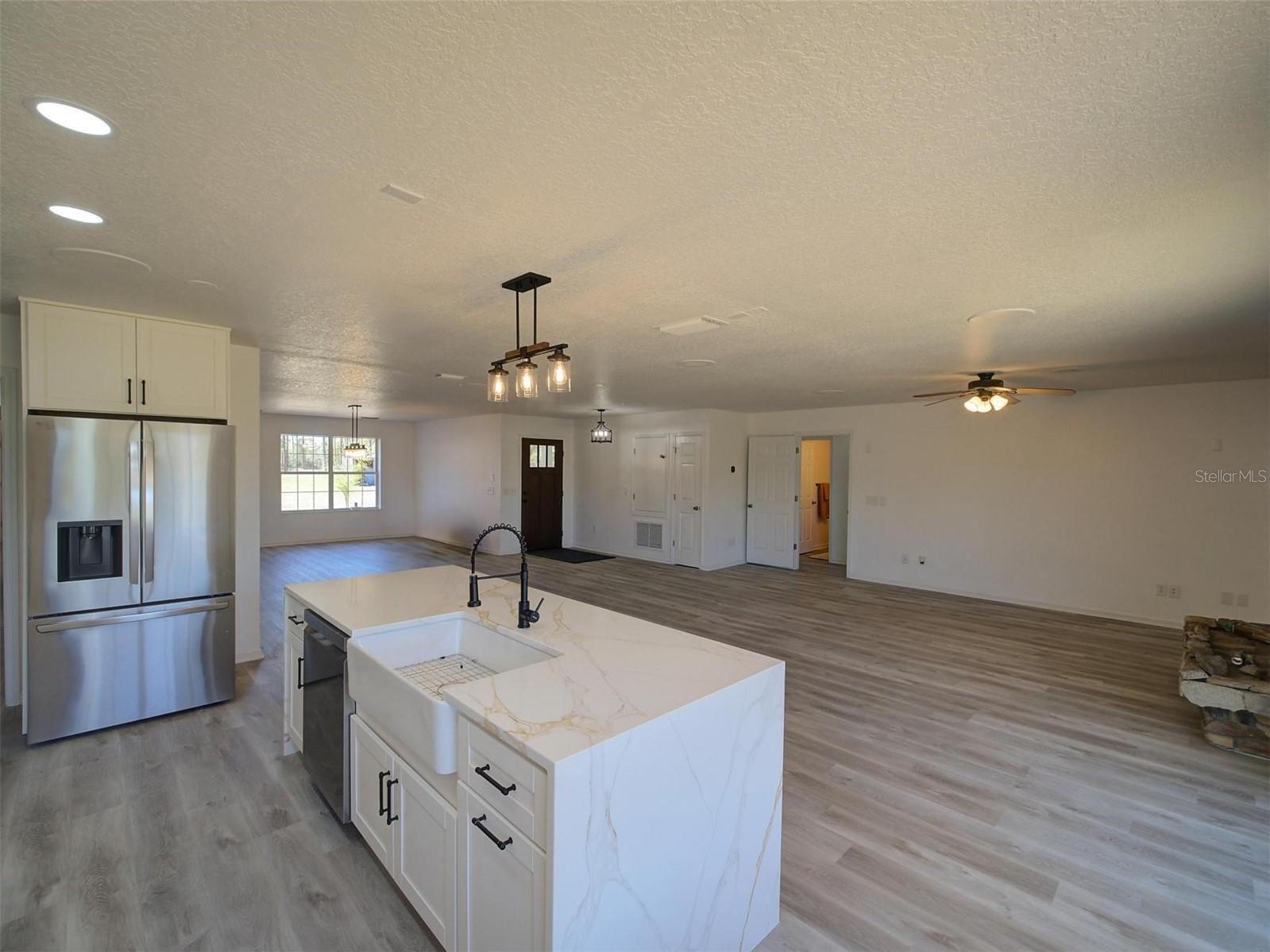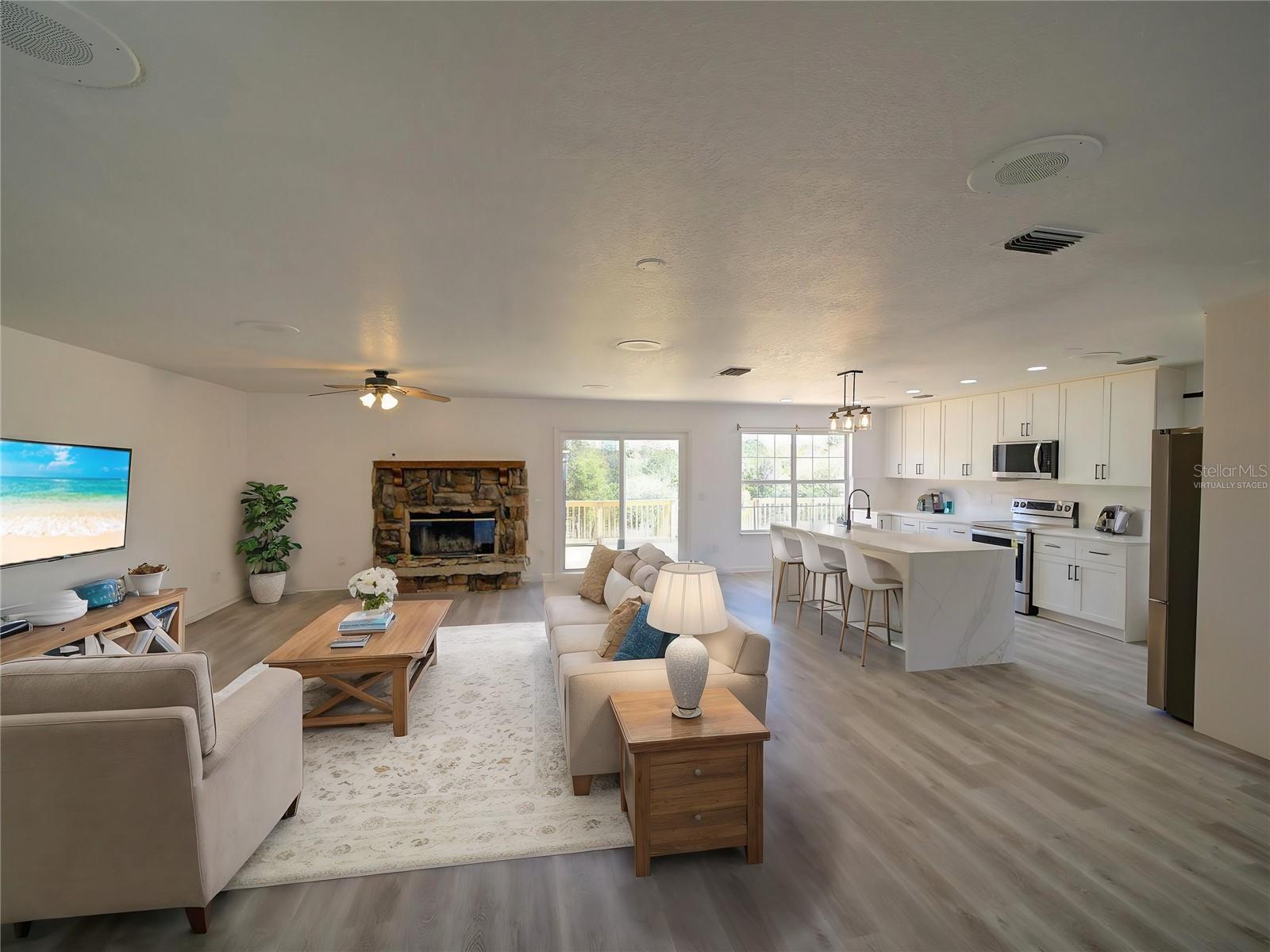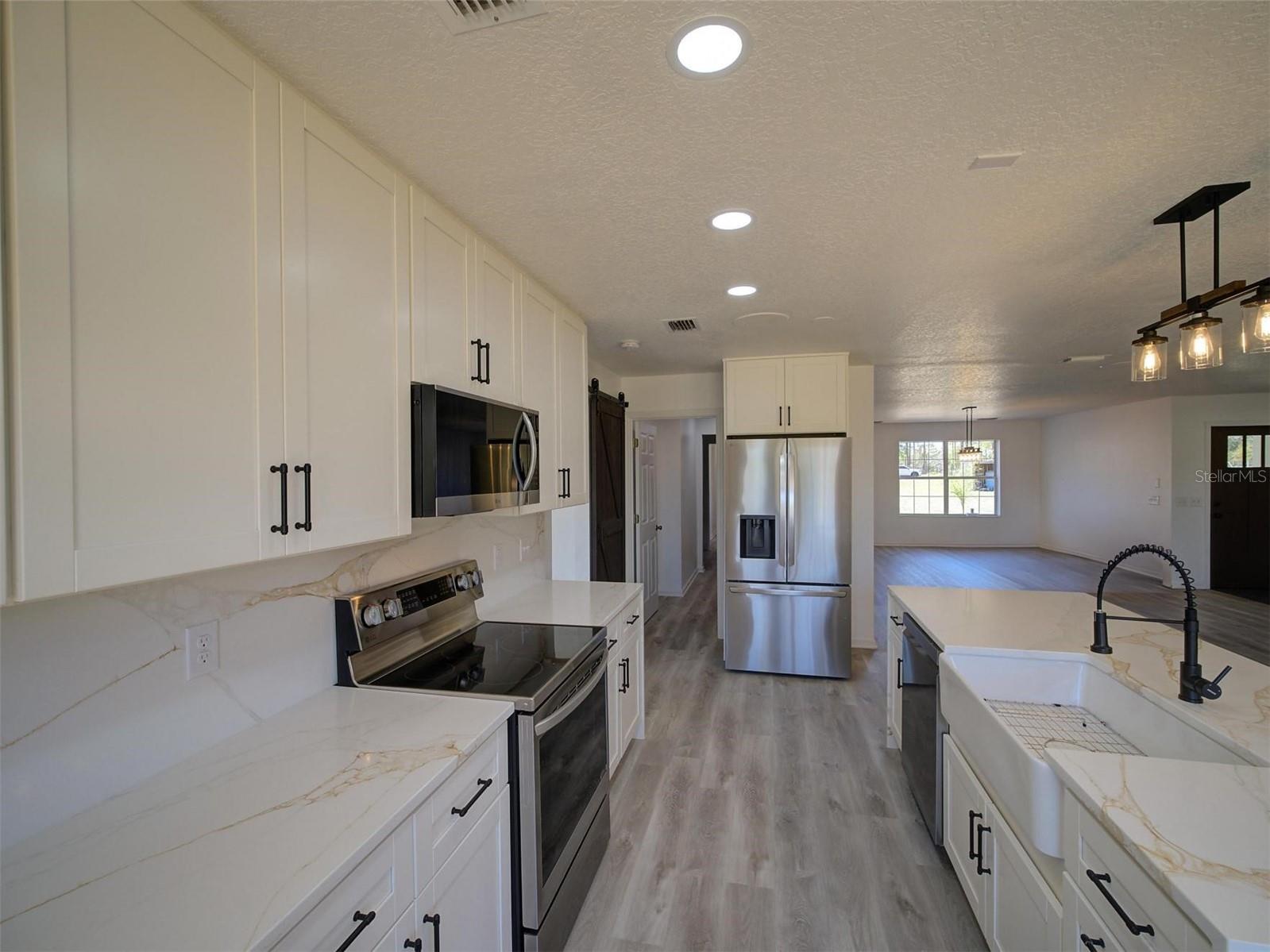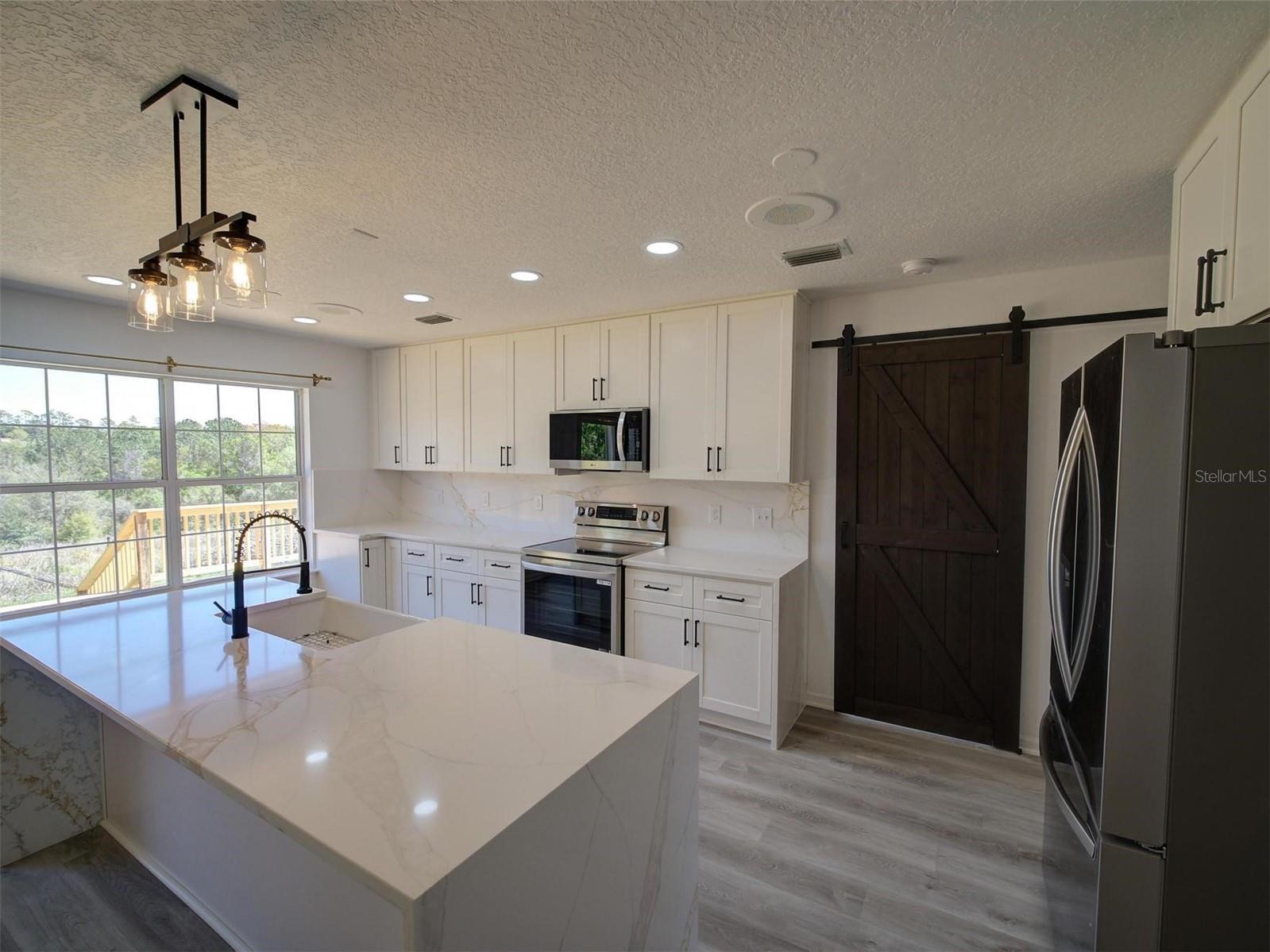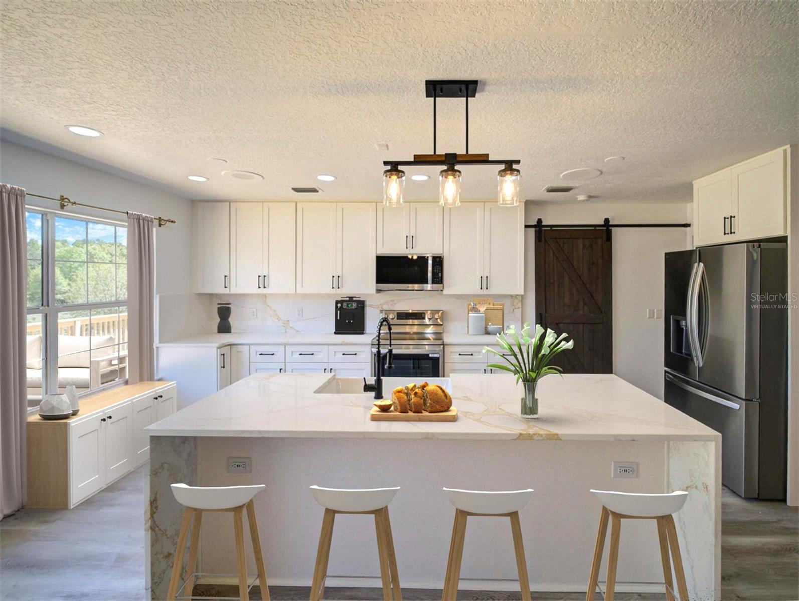 One or more photo(s) has been virtually staged. Discover a custom built (original owner) equestrian homestead oasis with this completely remodeled 7.4-acre estate, zoned for horses and farm animals, and featuring a huge two story barn, full RV site, and an in-law suite area. Inside, this 4-bedroom, 3-bathroom home has been completely updated with brand-new waterproof luxury vinyl plank flooring throughout and a stunning new kitchen featuring brand-new stainless steel appliances, a double farmhouse sink, gorgeous quartz countertops with waterfall edge island, brand new soft close cabinets and a beautifully matching backsplash in both the kitchen and bathrooms. Each bathroom has been tastefully upgraded with new vanities, and the home is fully wired and ready for modern living. The partially fenced property includes three separate paddocks, a large pond with a natural spring (not in a flood zone), and a drive-through garage with full attic storage. Equestrian enthusiasts will love the two story 8 ft tall barn with multiple storage areas under lighting, three 12x12 horse stalls, a barn loft with easy-railing access, a 12x15 equipment space with 12-inch-thick concrete for heavy machinery, and a 12x36 workshop area. Additional features include a 50-year shingle roof (2008), two newer A/C units (2021) with dual-zone controls and a transferable warranty, and a brand-new water heater installed in January 2025. A 7-kilowatt whole-house/RV site generator is also included, providing peace of mind for any buyer. The spacious drive-through garage (24x24) offers full attic storage with lighting and flooring, and there’s an additional storage shed on the property for even more space. The home also features a working wood-burning fireplace in the family room, a brand-new rear wood deck overlooking the gorgeous wooded property, and a concrete front porch perfect for relaxing and enjoying the serene surroundings. The property’s large well with excellent water pressure ensures a reliable water supply for both the home and animals. With ample space, privacy, and endless possibilities, this one-of-a-kind property is perfect for those looking to bring their horses, RV, and dreams to life. Schedule your private showing today!