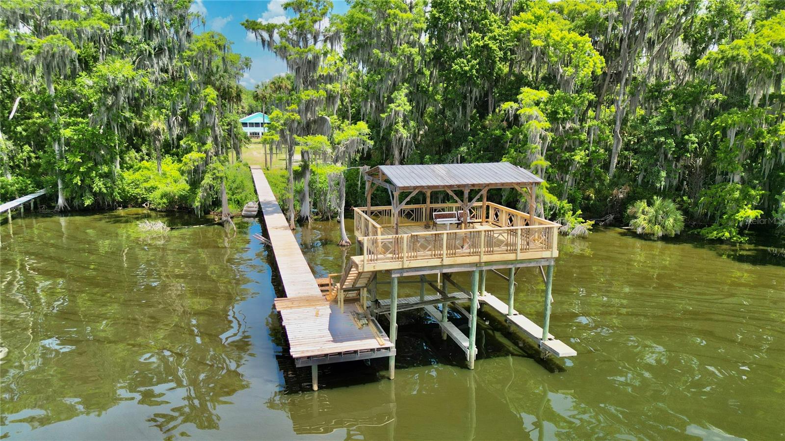 MOTIVATED SELLER! Welcome to this exquisite, custom-built waterfront pool home on the scenic St. Johns River, offering over 4,200 square feet of living space and two distinct living quarters. Every detail of this home speaks to quality and style, featuring tongue-and-groove ceilings, elegant quartz countertops, and polished porcelain tile floors throughout. Designed with energy efficiency in mind, the property is equipped with a 3-zone AC system and top-tier insulation. The main upstairs unit is a haven of sophistication, featuring 3 spacious bedrooms and 3 bathrooms. Its 10-foot ceilings and 8-foot doors create an airy atmosphere. The chef's kitchen, equipped with a natural gas stove plus a huge walk-in pantry with extra refrigerator and the master bathroom, with direct access to the laundry room, add to the convenience. Step outside to the expansive wrap-around screened porch and revel in the serene waterfront views. On the ground floor, the second unit includes 3 bedrooms and 1 bathroom, offering a generous mancave-style room with a cozy natural gas fireplace. The open-concept kitchen seamlessly flows into the newly built pool area, perfect for entertaining. The home also features an outdoor shower, 700 square feet of storage space, and a newly stunningly renovated double-deck boat dock with dual slips that has been grandfathered in and is no longer permitted to be built. With PGT windows and fiberglass doors, this property is built to last. Thoughtfully designed with modern amenities, including natural gas appliances for efficient utility use, this 4-year-old home embodies luxurious waterfront living at its finest. This waterfront property is over 2 acres and the addition of an added guest house is allowed. OWNER FINANCING AVAILABLE