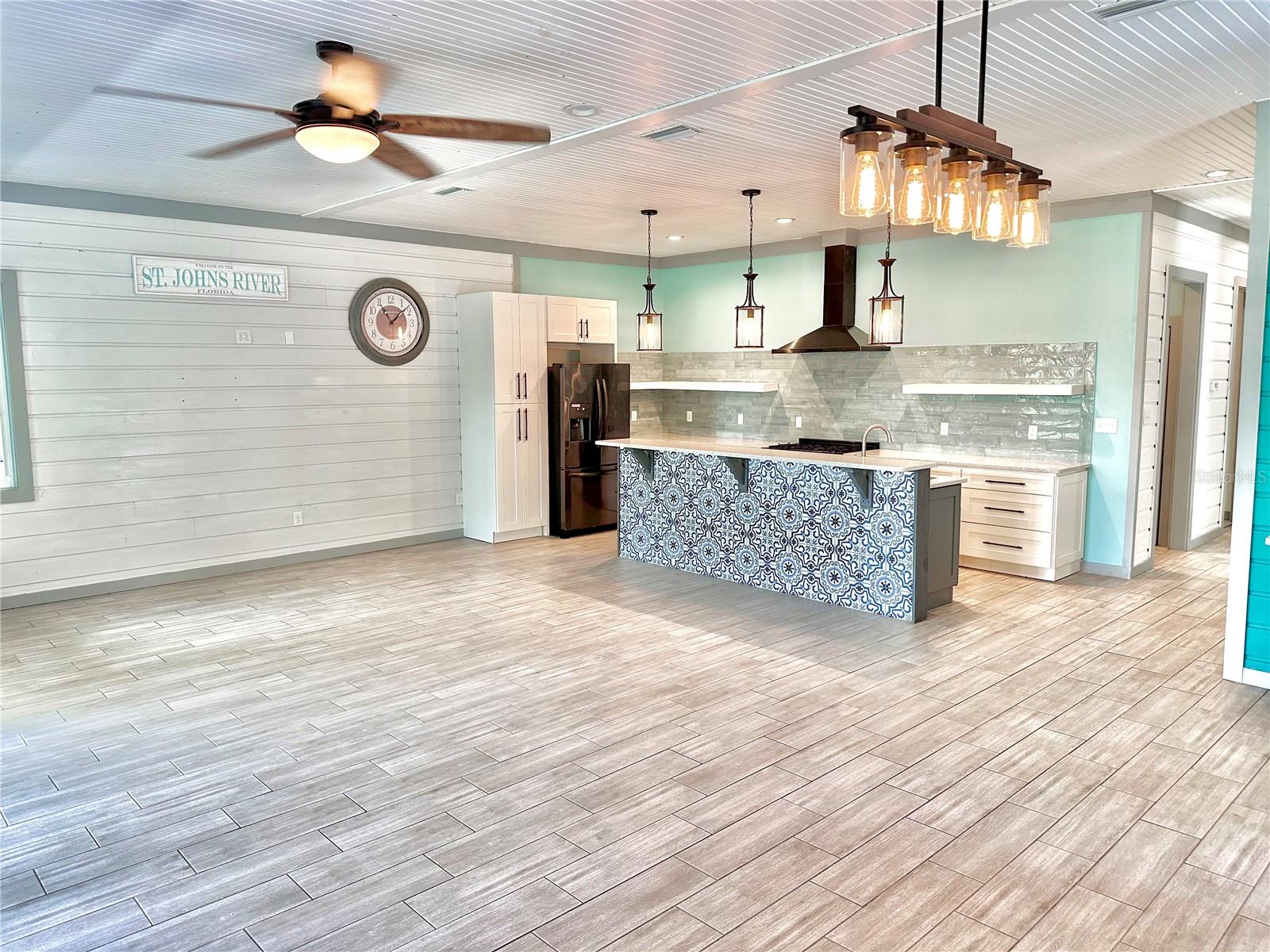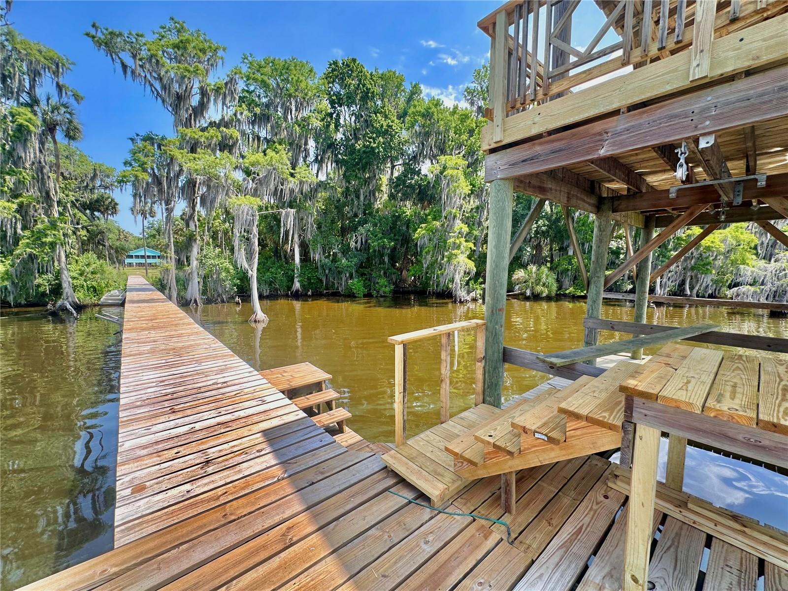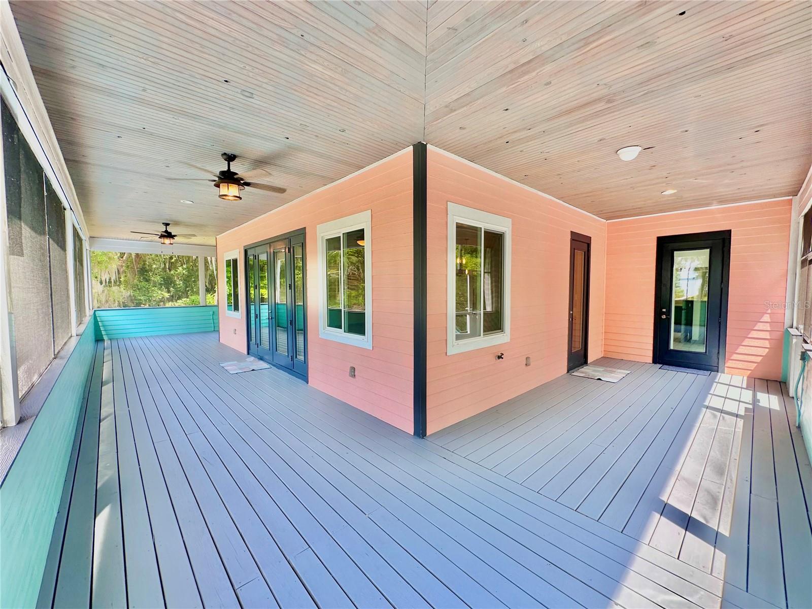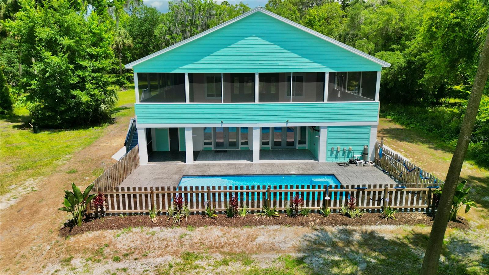 MOTIVATED SELLER! Welcome to this exquisite, custom-built waterfront pool home on the scenic St. Johns River, offering over 4,200 square feet of living space and two distinct living quarters. Every detail of this home speaks to quality and style, featuring tongue-and-groove ceilings, elegant quartz countertops, and polished porcelain tile floors throughout. Designed with energy efficiency in mind, the property is equipped with a 3-zone AC system and top-tier insulation. The main upstairs unit is a haven of sophistication, featuring 3 spacious bedrooms and 3 bathrooms. Its 10-foot ceilings and 8-foot doors create an airy atmosphere. The chef's kitchen, equipped with a natural gas stove plus a huge walk-in pantry with extra refrigerator and the master bathroom, with direct access to the laundry room, add to the convenience. Step outside to the expansive wrap-around screened porch and revel in the serene waterfront views. On the ground floor, the second unit includes 3 bedrooms and 1 bathroom, offering a generous mancave-style room with a cozy natural gas fireplace. The open-concept kitchen seamlessly flows into the newly built pool area, perfect for entertaining. The home also features an outdoor shower, 700 square feet of storage space, and a newly stunningly renovated double-deck boat dock with dual slips that has been grandfathered in and is no longer permitted to be built. With PGT windows and fiberglass doors, this property is built to last. Thoughtfully designed with modern amenities, including natural gas appliances for efficient utility use, this 4-year-old home embodies luxurious waterfront living at its finest. This waterfront property is over 2 acres and the addition of an added guest house is allowed. OWNER FINANCING AVAILABLE