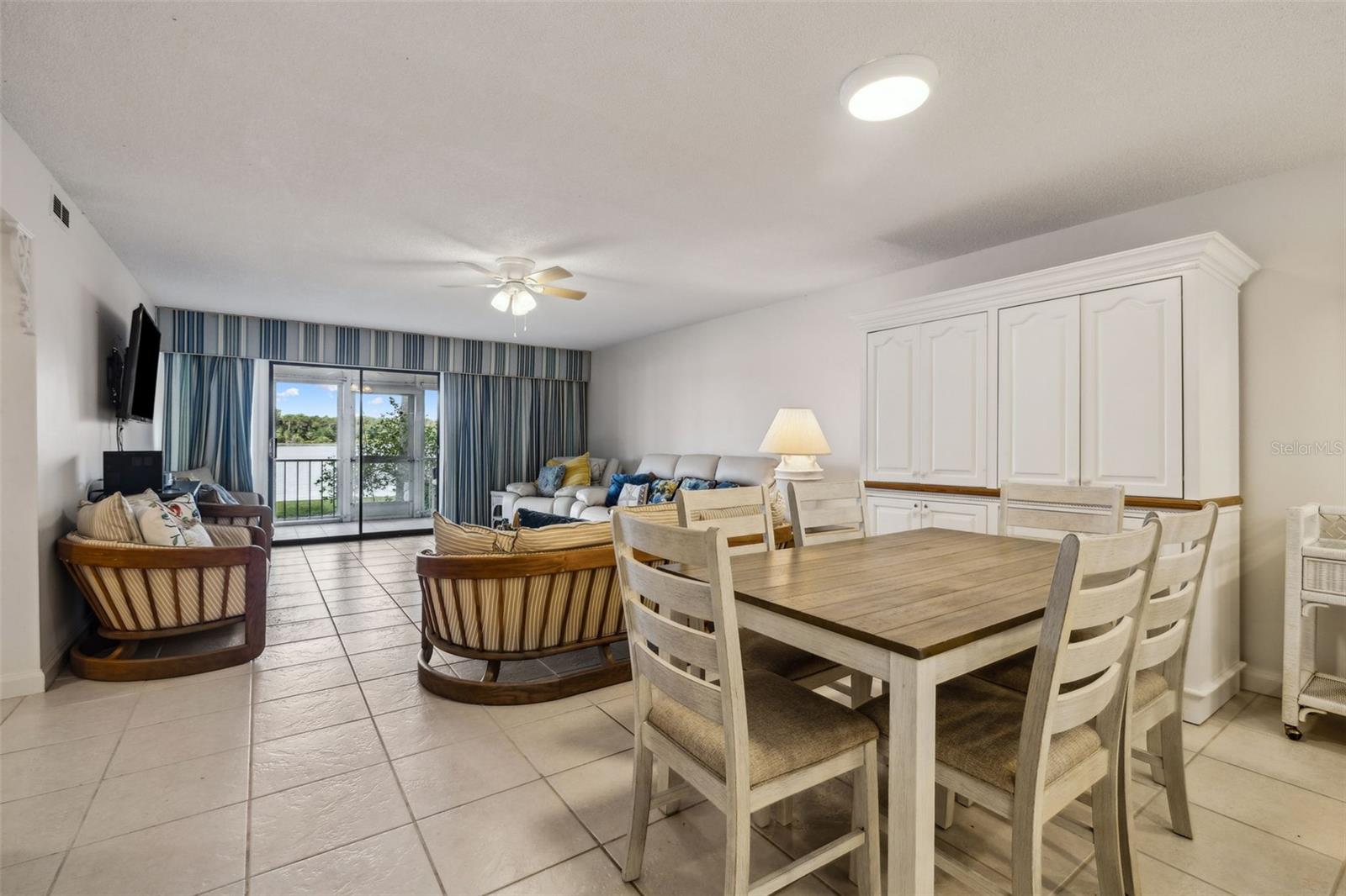 Located directly on the magnificent St. Johns River, this lovely first floor move-in ready 2BR/2BA condo unit offers a refreshing and relaxing view from the spacious screened porch of some awesome sunsets in addition to all the fishing and water activities you could ever dream of. The home comes completely and tastefully furnished, right down to the dishes. Just bring your toothbrush and fishing pole and you're ready to live the life of luxury. The unit has tile flooring throughout. Both bedrooms include mirrored, sliding closet doors, with the master suite overlooking the screened porch and river. Unlike most units, this one includes a stacked washer/dryer. Community amenities include a sparkling, fenced, in-ground pool, boat ramp, boat slip, first come basis and dock. Off street unassigned parking is available in the adjacent parking lot. This is a perfect year-round home, vacation or VRBO.