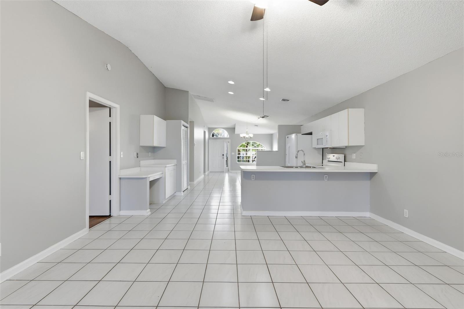 One or more photo(s) has been virtually staged. Beautiful 3-Bedroom Home with Open Floor Plan and Screened Porch! Welcome to this charming 1-story, 3-bedroom, 2-bath home featuring a spacious open floor plan that’s perfect for both relaxing and entertaining. The kitchen offers a convenient breakfast bar and accent lighting, opening seamlessly to the main living area. Enjoy natural light through the sliding glass doors leading to a screened-in back porch, ideal for morning coffee or evening gatherings. The 2-car garage provides plenty of storage and convenience. Thoughtfully designed for comfort and style, this home blends functionality with inviting living spaces.