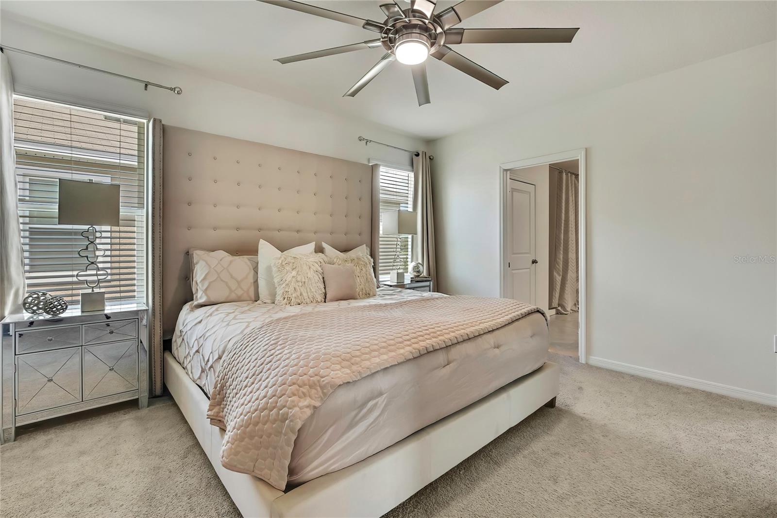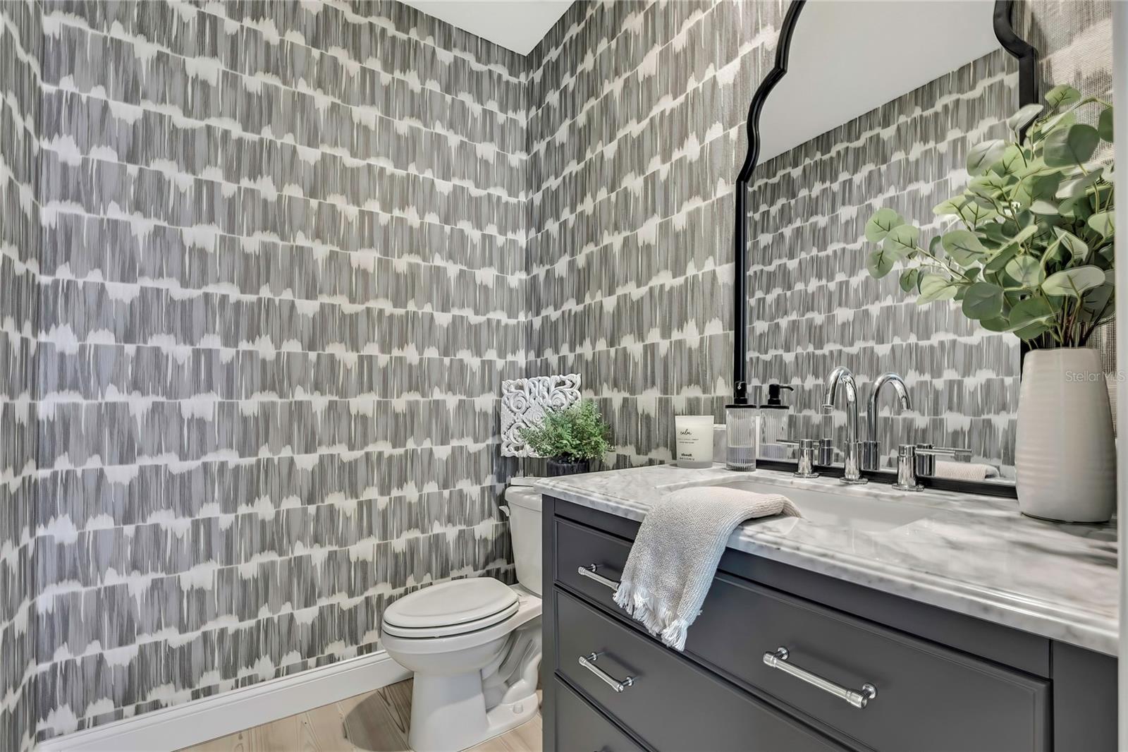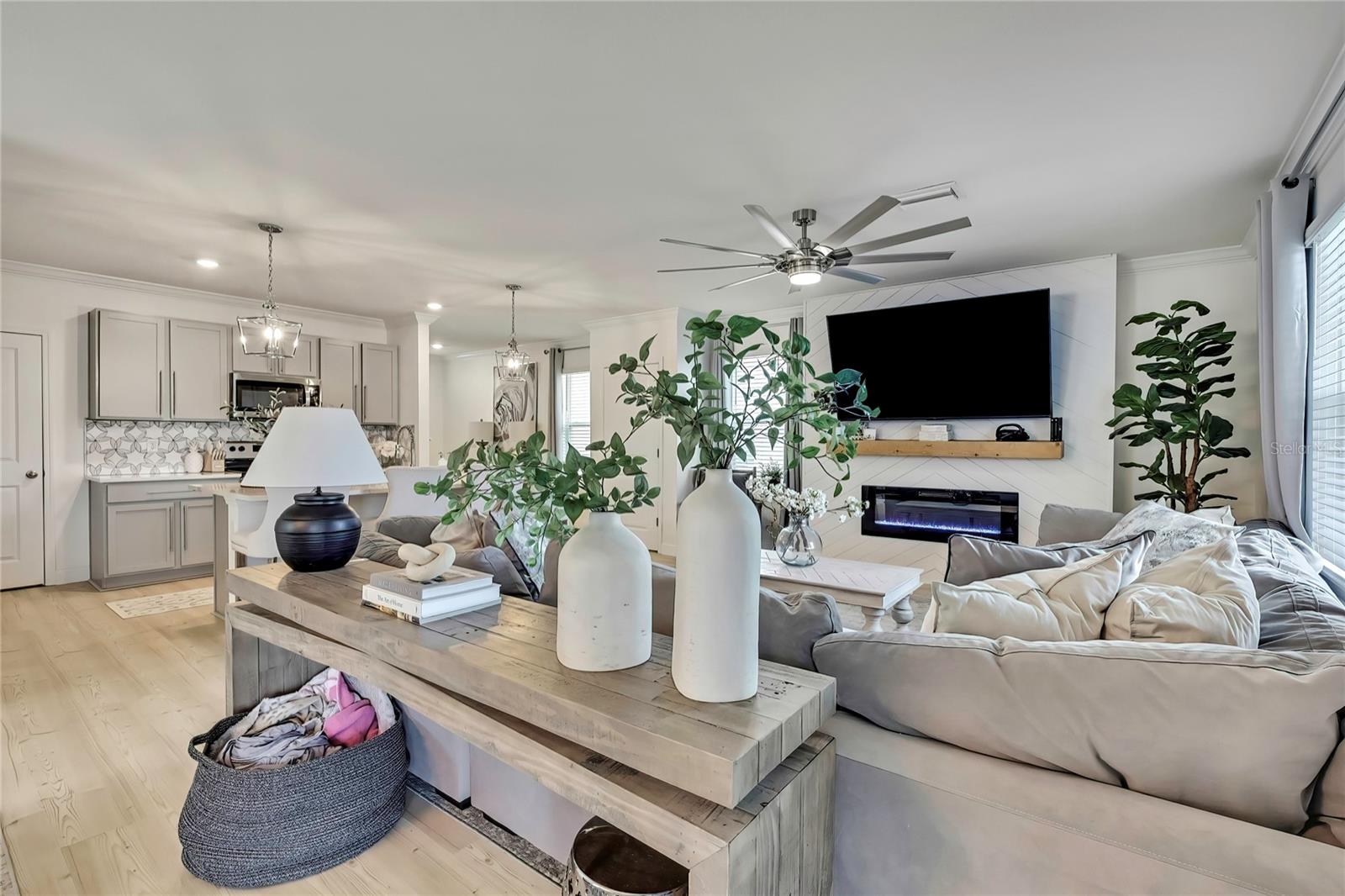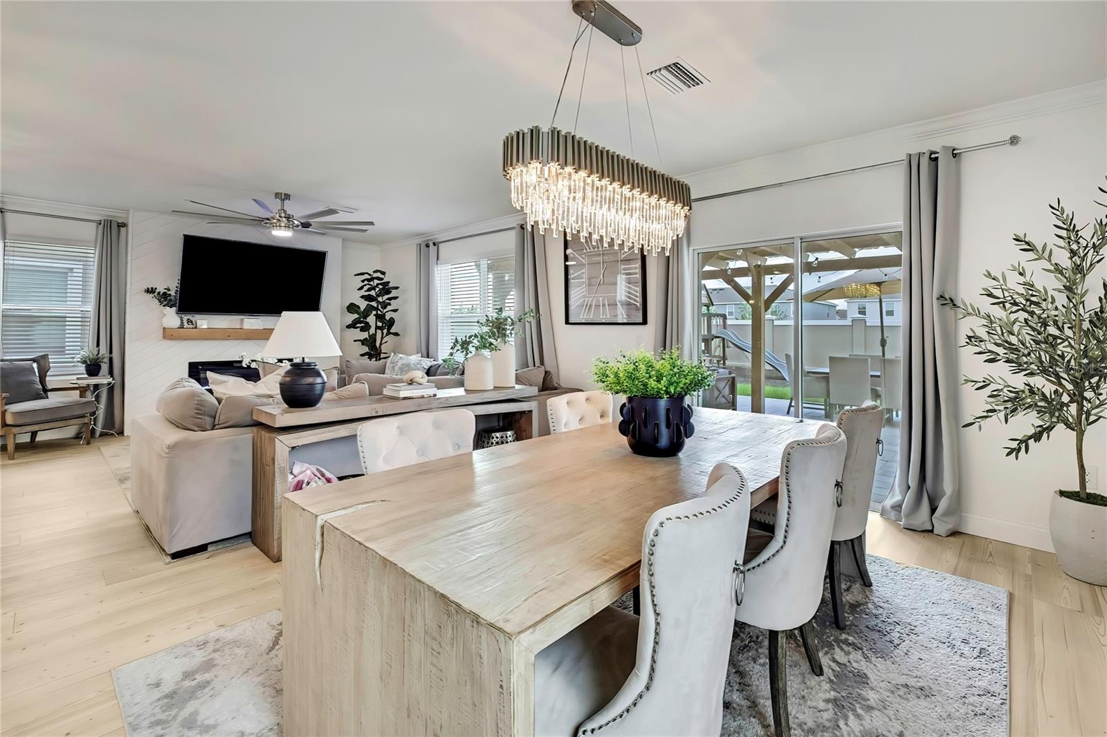 Buyers financing fell through. Seller has FHA appraisal in hand and clean inspection report. Wow!!! This renovated lagoon home, featuring waterfall style quartz countertops, luxury vinyl plank flooring, modern shaker style cabinets, luxury custom backsplash, stainless steel appliances, custom lighting, a feature fire place wall in the living room, wallpaper design + custom vanity in the downstairs bathroom, custom paint in several rooms, upgraded baseboards, and crown molding. The exterior upgrades include fully fenced home, extended pavers, a pergola. The home has over 2,700 sq.ft. (2,260 heated sq. f.t.) with four bedrooms, two full bathrooms + a powder room/guest bathroom on the first floor. The primary bedroom is located on the second floor and has an en suite bathroom with an oversized closet. There a cozy loft in addition to the 3 bedrooms. All the bedrooms has ultra WiFi & cable and is part of the HOA. This solid home was built with concrete block on both floors, so you know the Florida winds stand no chance with this one. Life at the Epperson Community is like nothing else. This home is in close proximity to Publix Plaza at Innovation Springs (you can ride the golf car over), Starbucks and Chick fil -A (coming soon). House comes with patio furniture, kids play set and trampoline.