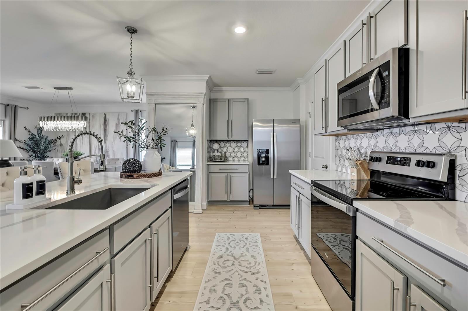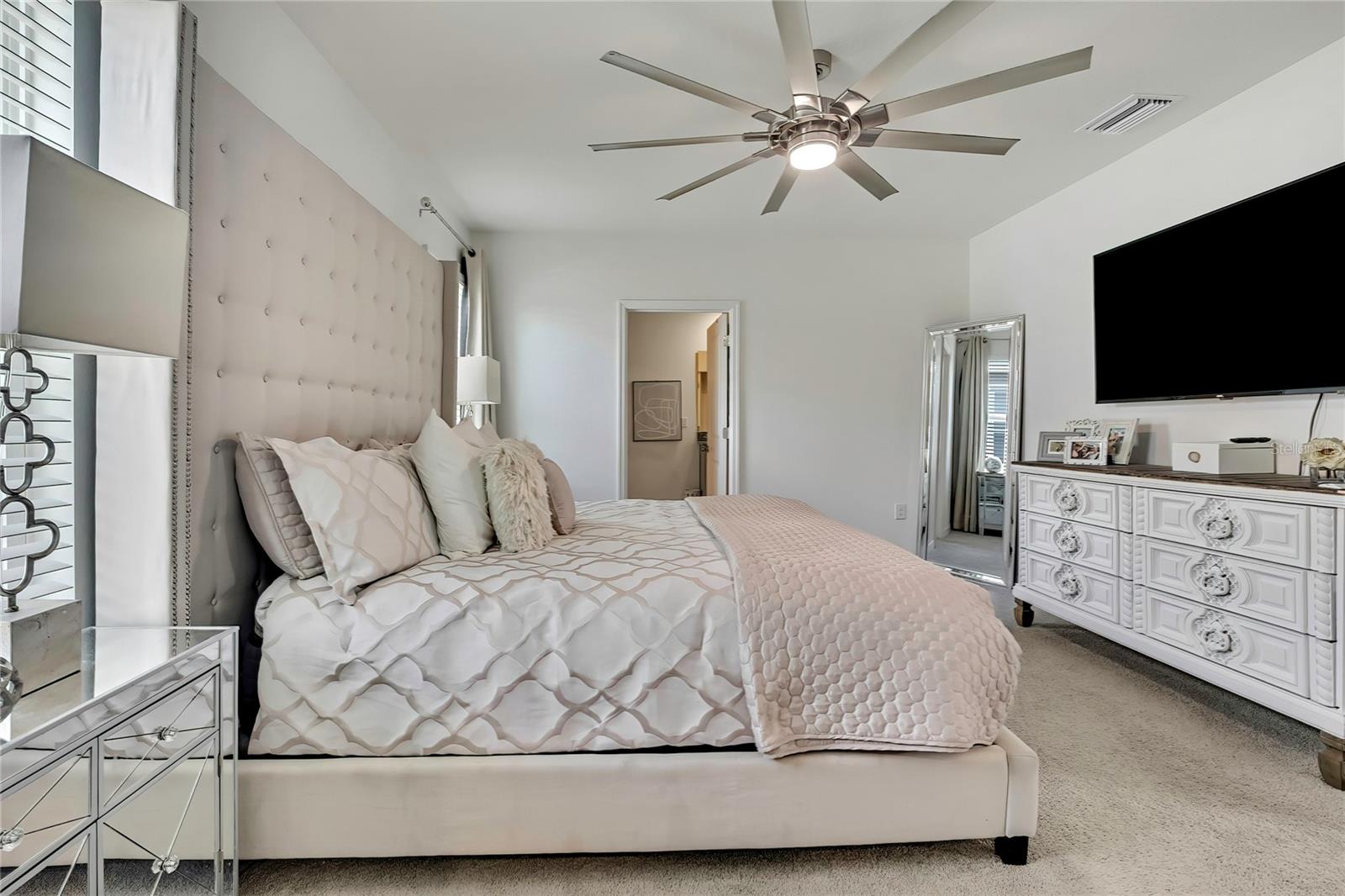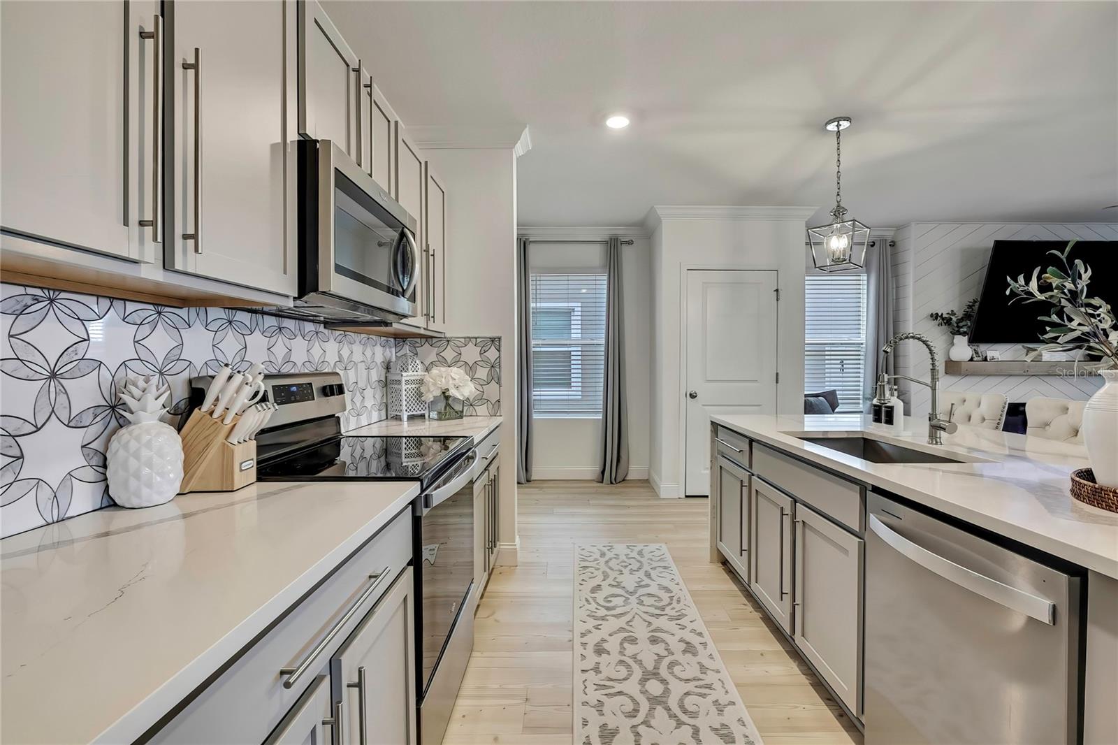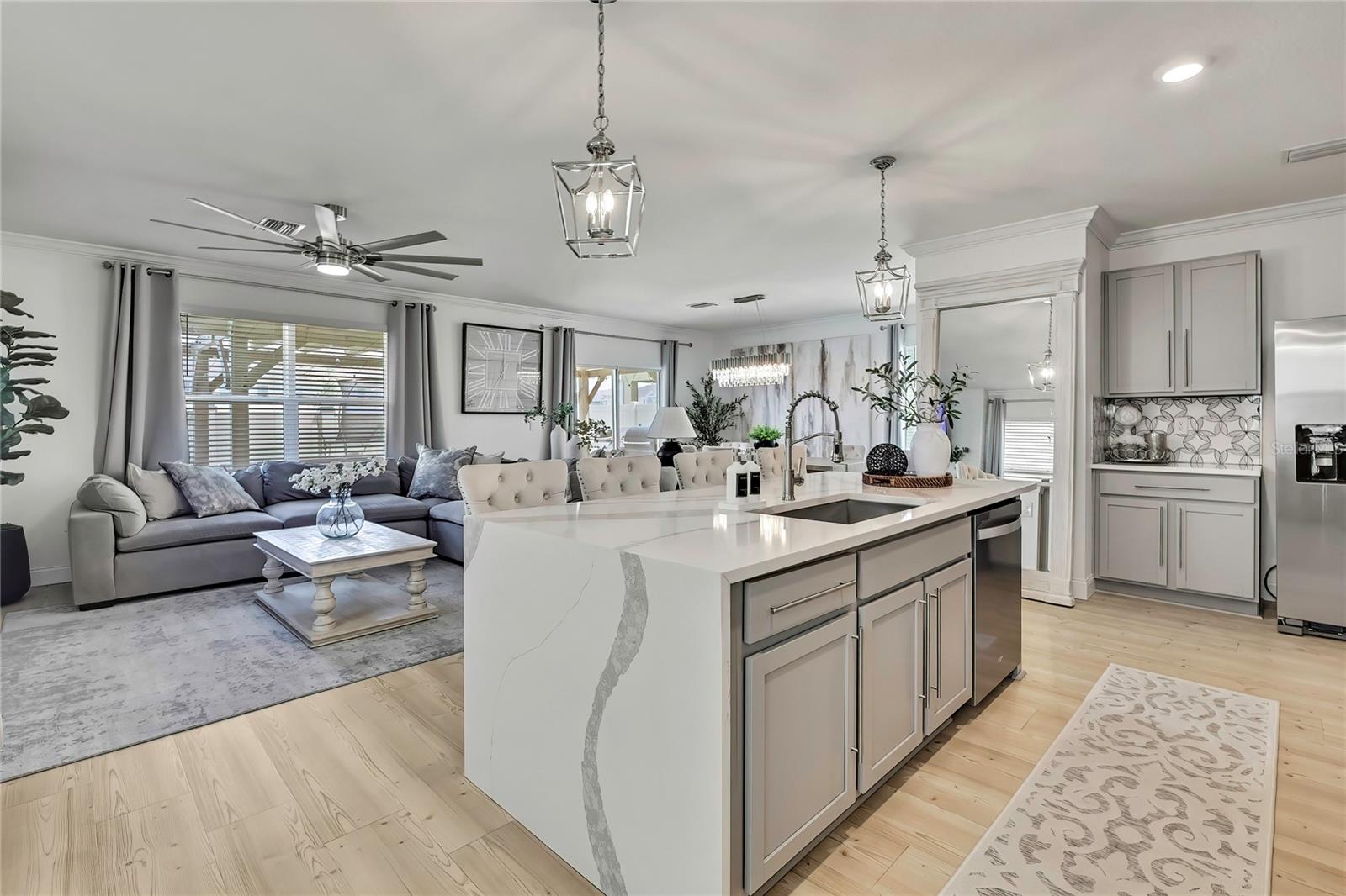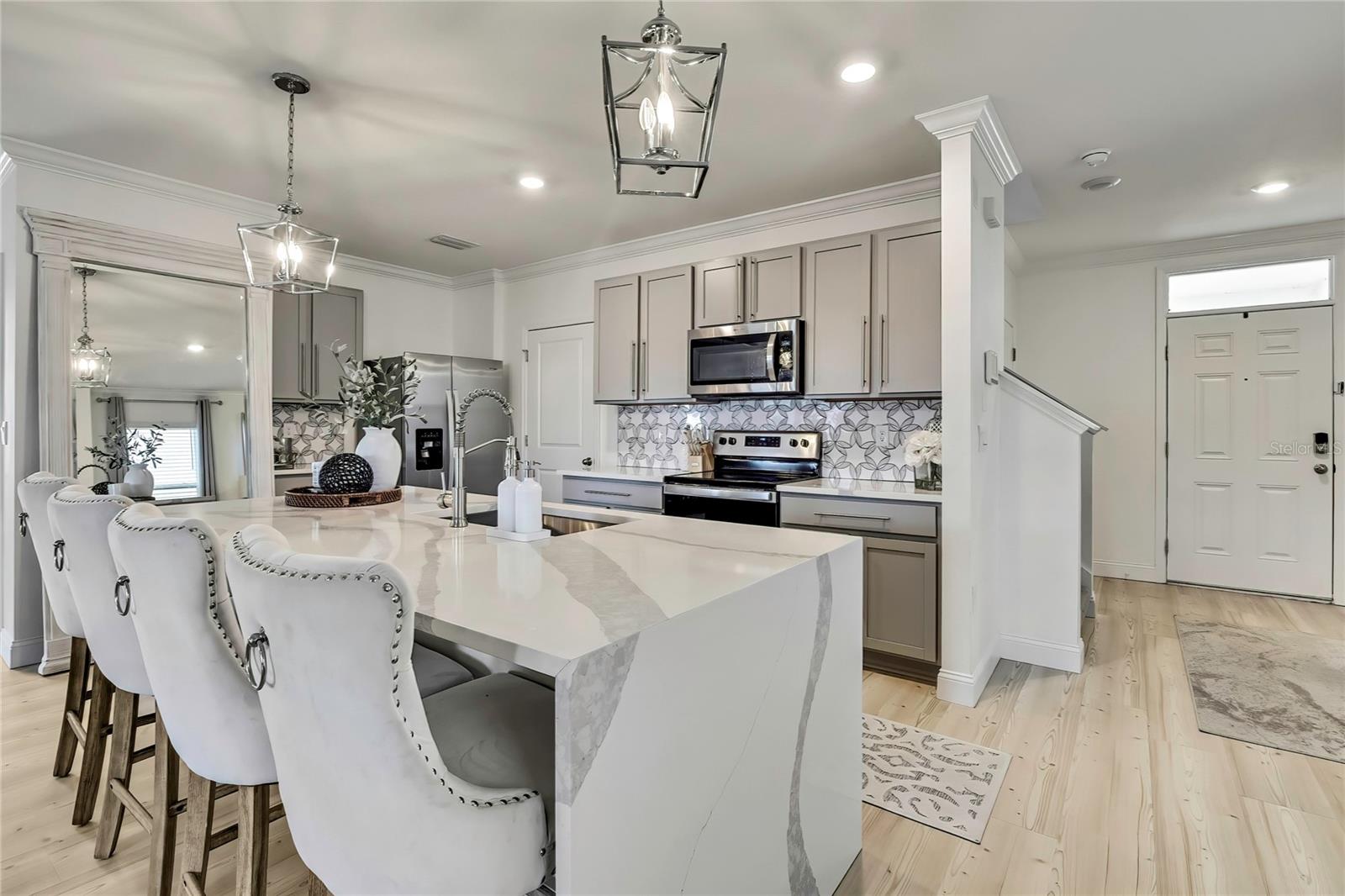 Buyers financing fell through. Seller has FHA appraisal in hand and clean inspection report. Wow!!! This renovated lagoon home, featuring waterfall style quartz countertops, luxury vinyl plank flooring, modern shaker style cabinets, luxury custom backsplash, stainless steel appliances, custom lighting, a feature fire place wall in the living room, wallpaper design + custom vanity in the downstairs bathroom, custom paint in several rooms, upgraded baseboards, and crown molding. The exterior upgrades include fully fenced home, extended pavers, a pergola. The home has over 2,700 sq.ft. (2,260 heated sq. f.t.) with four bedrooms, two full bathrooms + a powder room/guest bathroom on the first floor. The primary bedroom is located on the second floor and has an en suite bathroom with an oversized closet. There a cozy loft in addition to the 3 bedrooms. All the bedrooms has ultra WiFi & cable and is part of the HOA. This solid home was built with concrete block on both floors, so you know the Florida winds stand no chance with this one. Life at the Epperson Community is like nothing else. This home is in close proximity to Publix Plaza at Innovation Springs (you can ride the golf car over), Starbucks and Chick fil -A (coming soon). House comes with patio furniture, kids play set and trampoline.