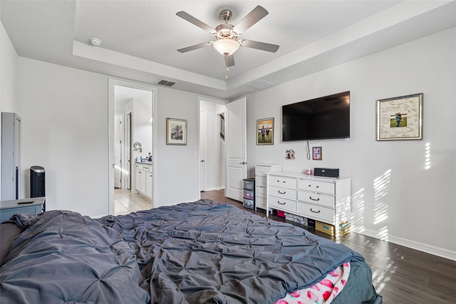 Price Reduced and Seller Motivated!!! Welcome to this stunning 4-bedroom, 3.5-bath home in the highly desirable Epperson Lagoon community, where modern comfort meets resort-style living. Built in 2020 and set on a peaceful conservation lot, this upgraded Pulte Citrus Grove floor plan has been thoughtfully designed to accommodate multi-generational living with ease. Step inside to a bright, open-concept layout featuring luxury vinyl flooring and seamless flow throughout the main living areas. The chef-inspired kitchen is the heart of the home, offering granite countertops, wood cabinetry, upgraded stainless steel Whirlpool appliances, a walk-in pantry, and a large island perfect for gathering. The kitchen overlooks the spacious living and dining areas, filled with natural light and enhanced by surround sound, built-in speakers, stylish lighting, and sliding glass doors that lead to the lanai—perfect for entertaining. A private front office with 8-foot French doors provides an ideal space for working from home, while the main-level owner’s suite offers a relaxing retreat with high ceilings, a generous walk-in closet, and a spa-like ensuite featuring dual sinks and an oversized walk-in shower. Upstairs, you’ll find a versatile bonus room pre-wired for surround sound, perfect as a media room or additional living space, along with a private in-law suite complete with its own full bathroom and walk-in closet. Two additional bedrooms, each with walk-in closets, share an upgraded bathroom with dual sinks. Enjoy peaceful nature views from the extended screened-in lanai, complete with a ceiling fan and TV/internet hookup—ideal for relaxing or entertaining year-round. Additional features include an extended garage, ample storage, and security system pre-wiring. Located in Epperson Ranch, residents enjoy Ultrafast internet and access to the incredible 7-acre crystal lagoon, featuring sandy beaches, a swim-up tiki bar, waterslides, kayaking, beach volleyball, and weekly events. This is more than a home—it’s a lifestyle.