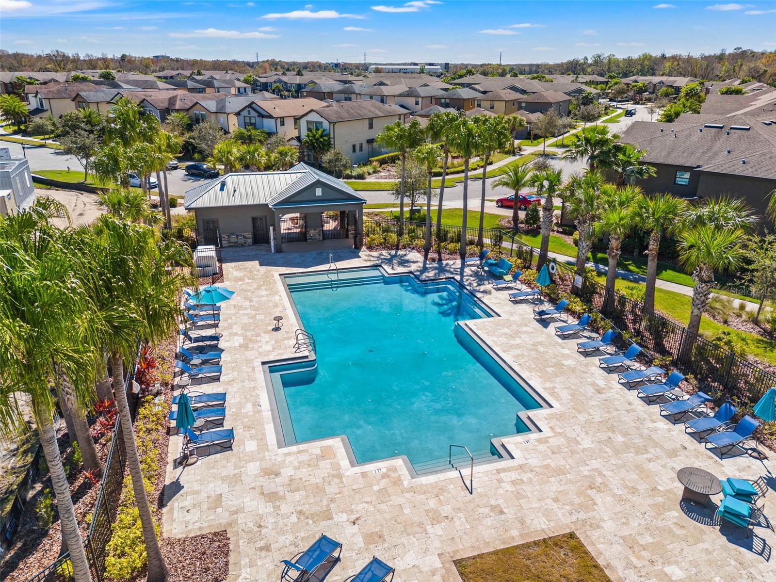 Motivated seller! Welcome to this beautiful 2017 block home in the heart of Wesley Chapel! It's located just 5 minutes from Shops at Wiregrass, 10 minutes from the Grove, and 25 minutes to downtown Tampa! When you walk in, you'll immediately fall in love with the open floorplan which lures you into the chef's kitchen. The kitchen features granite countertops, stainless steel appliances, and a reverse osmosis system. Upstairs you will find two spacious bedrooms equipped with ceiling fans and en-suite bathrooms! Enjoy the cool spring nights on your screened in back porch, or in the numerous community parks and paved trails. This neighborhood also features a resort-style pool, perfect for the upcoming Florida summers! Additional features include: 2023 stove, 2021 refrigerator, laminate flooring upstairs installed in 2021, screened in back porch installed in 2020, window shutters from 2023, water softener, and a kitchen reverse osmosis system.The central location of this home is unbeatable, schedule your showing today! Up to 1% in closing costs using Seller's preferred lender!