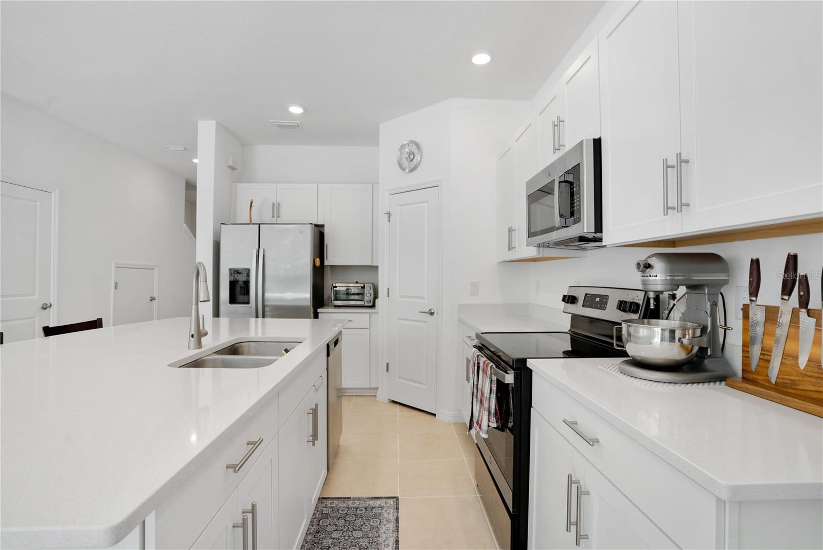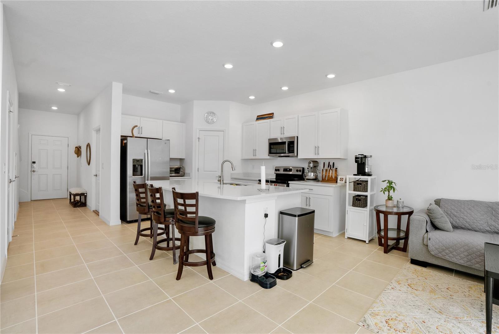 $14,000 PRICE REDUCTION! Much lower price than builder, why wait for the same model at higher prices, when you can have this one for less! Turn key ready to move in, well maintained, like-new. The Marigold townhome, End-unit @ 1,555 sq. ft., with three bedrooms, two and a half bathrooms, and a one-car garage with built-in storage rack. Entertainer's delight with the expansive great room and open kitchen, a bright and airy atmosphere. The kitchen has Quartz Countertops, and white-shaker-style cabinets, stainless steel appliances. Upstairs, two bedrooms share a full bath, while the owner's suite features an oversized walk-in closet and a double vanity. Abundant storage solutions include under-stair storage, a spacious walk-in kitchen pantry, a separate laundry room, a linen closet, and three-bedroom closets. Design highlights include: Bacteria killing LED in bathroom, Blinds Included in all windows. Community Features included: Pool, outdoor kitchen, play area, grounds maintenance, sprinklers, trash service, and outdoor pest treatments, all included with Association fees.