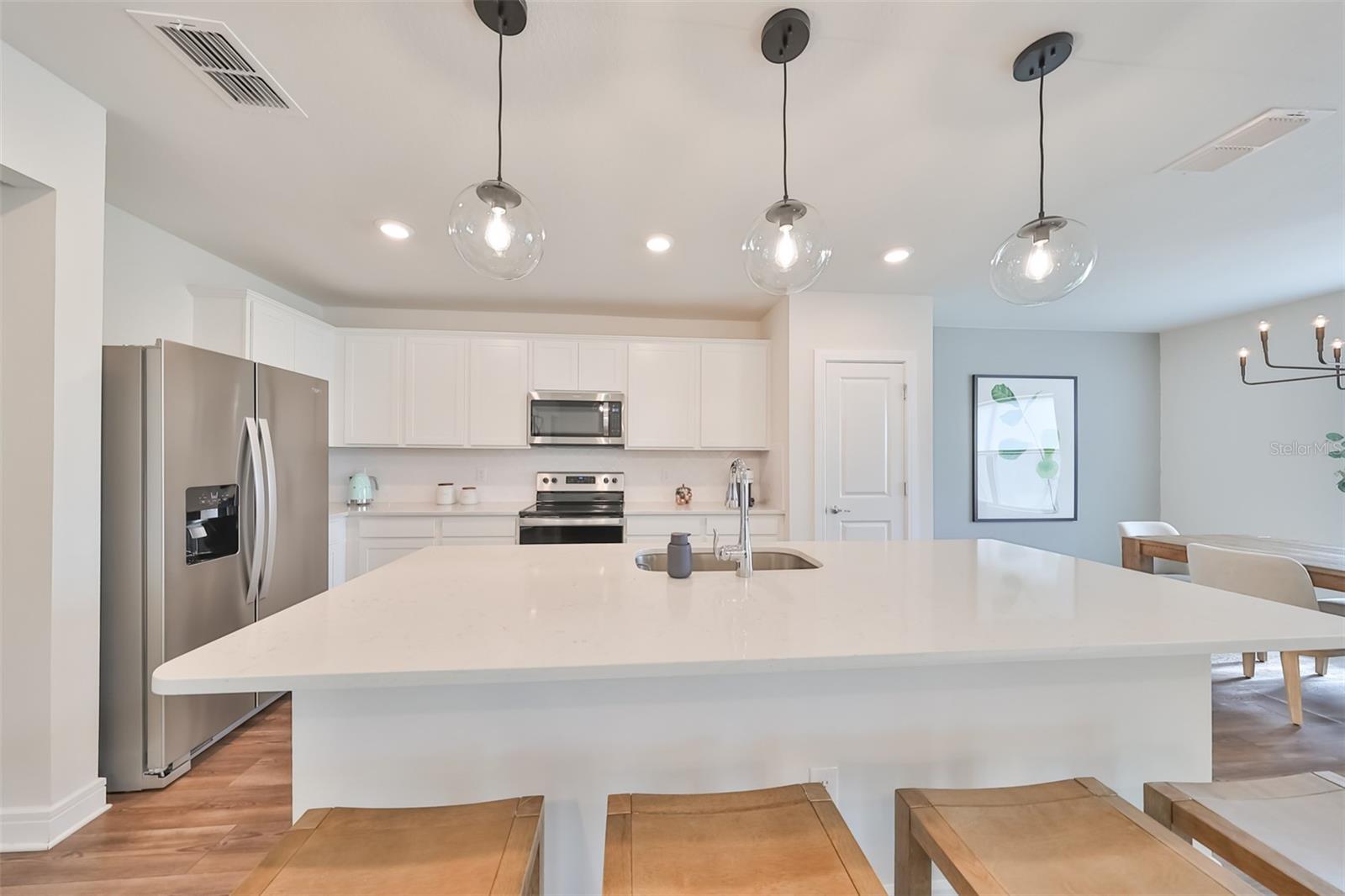 Welcome to this stunning 5-bedroom + flex room, 3-bath, 2-car garage home, built by Pulte in December 2022. Practically brand new, this property sits on a spacious corner lot with no front or rear neighbors, offering privacy and open views. Inside you’ll find an open-concept design with luxury vinyl floors, a gourmet kitchen with quartz countertops, custom cabinetry, stainless steel appliances, and an oversized island ideal for gatherings. The upstairs features a large flex room, expansive owner’s suite with spa-like bath, three additional bedrooms, and a full laundry with washer/dryer included. This is a Pulte Smart Home with built-in security you can control from your phone. HOA covers WiFi and TV. Step outside to experience Epperson Lagoon’s 7.5-acre Crystal Lagoon – sandy beaches, water sports, swim-up bar, dining, dog park, playgrounds and more. It’s truly a resort lifestyle every day. Perfectly located near top-rated schools, shopping, dining, and just 35 minutes to Downtown Tampa or 45 minutes to Tampa International Airport. Don’t miss this rare opportunity to own in Wesley Chapel’s most sought-after lagoon community! Schedule your private showing today. (Se habla Español.)