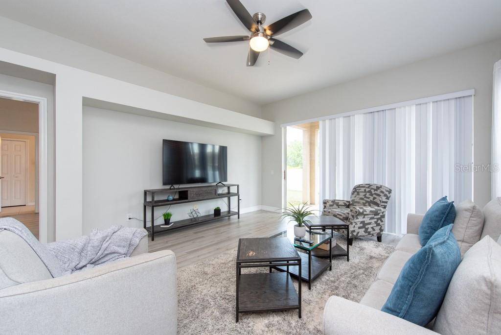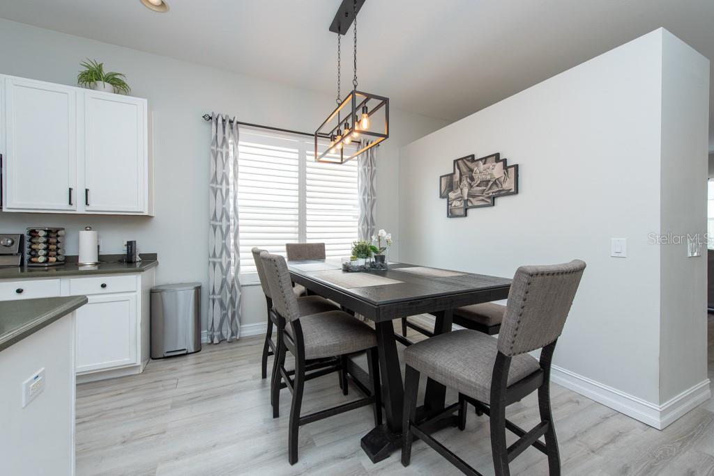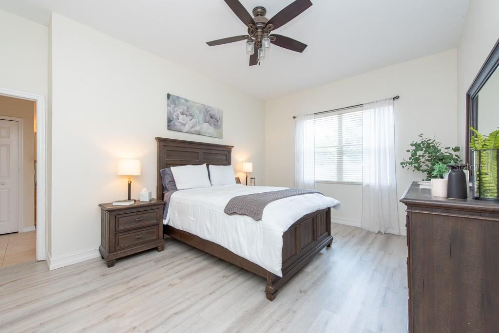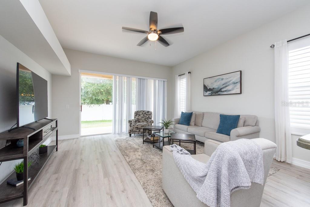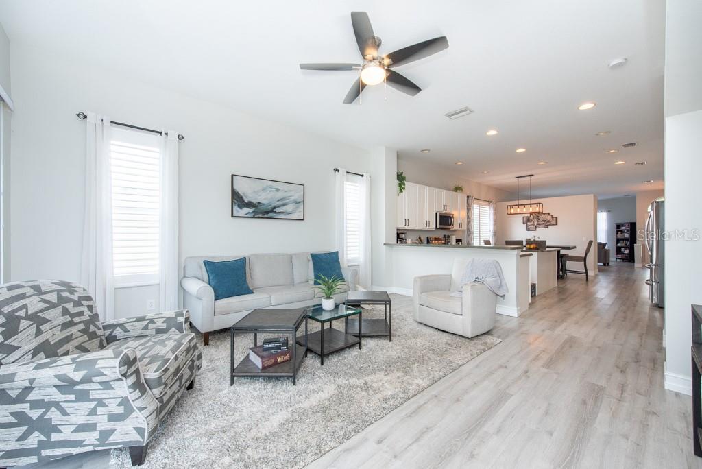 Discover this beautifully remodeled home in the gated community of Hamilton Park, boasting low HOA and no CDD fees! Original owners' pride of ownership shines throughout this 3-bedroom, 2-bath, 2-car garage residence. Updated with modern laminate wood flooring (no carpet), fresh interior paint, upgraded 5-1/4 baseboards, stylish light fixtures, plantation shutters, and a new HVAC system (2019), this home is move-in ready! The one-story layout features a formal living and dining room combo that seamlessly flows into the open kitchen, which overlooks the spacious family room. The gorgeous remodeled kitchen includes stainless steel appliances, a large kitchen island, a breakfast bar, Corian countertops, and ample counter space. The split bedroom floor plan offers privacy and comfort, with the spacious owner's suite featuring laminate wood flooring and a generous closet. The secondary bedrooms also feature laminate wood flooring and a study area, ideal for work-from-home needs. Hamilton Park is a gated community with a park/playground and dog park. Conveniently located off SR54, it's near shopping centers, schools, restaurants, and provides easy access to I-75 and Tampa Bay's beautiful beaches.