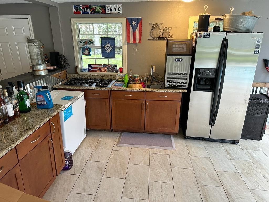 UPDATE: This home was affected by Hurricane Milton, basically the floors and bottom part of the walls (roof, screens, windows, pool cage and everything else in great shape) Seller is open to offers. Improved price!!! Check this home! Welcome to your dream home in the heart of Florida! This stunning property features 3 bedrooms and 3 full baths, nestled on a spacious 1-acre lot. As you step inside, you'll be greeted by an open-concept layout that creates a relaxing atmosphere throughout. The modern kitchen is a chef's delight, equipped with stainless steel appliances, ample cabinet space, and a cozy nook perfect for sipping your morning coffee or tea. The front counter offers space for 4 or 5 bar stools, making it an ideal spot for casual dining. Ceiling fans and beautiful light fixtures adorn every room, complementing the contemporary and laid-back ambiance. The living room boasts a beautiful modern electric fireplace, creating a cozy focal point. High ceilings and Elite Blinds add to the allure, providing an elegant touch to the entire house. The laundry area, conveniently located between two bedrooms and close to the kitchen, is tastefully decorated for your comfort. This home received a recent upgrade with a new roof installed on 10/30/2023 and a new air-conditioning system added in July of 2023. Beautiful laminate flooring flows throughout the house, with plush carpeting in the bedrooms. After a long day, retreat to the master bedroom with a walk-in closet and an ensuite master bathroom. Pamper yourself in the spacious bathroom, featuring a separate shower, classic bathtub, and dual vanity for your convenience. The master bedroom also provides direct access to the back of the house. Step outside to your private oasis, where a spacious area awaits. Enjoy the third bathroom, an outdoor kitchen complete with a gas stove and refrigerator, and a gorgeous salt inground pool added in 2017. The screened enclosure ensures bug-free relaxation, and the pool features a heated electric system and ambient lights for enchanting Floridian nights. With a full acre of space, you have the freedom to create your own oasis, plant a garden, or simply bask in nature's beauty. The property includes a versatile workshop that can easily be converted into an in-law suite or the perfect man-cave. The shed offers space for three cars, motion sensor lights, and high ceilings, presenting endless possibilities. Additional features include an attached garage for two cars with convenient access to the interior of the house. Located close to amenities such as The Grove, Tampa Outlets, and many excellent restaurants, this home offers easy and quick access to 75N and S. Don't miss the opportunity to make this your home and indulge in the perfect blend of relaxation, entertainment, and the beautiful Florida climate. The road paving project already started providing a great access to this beautiful home. Your new life begins here – seize the opportunity!