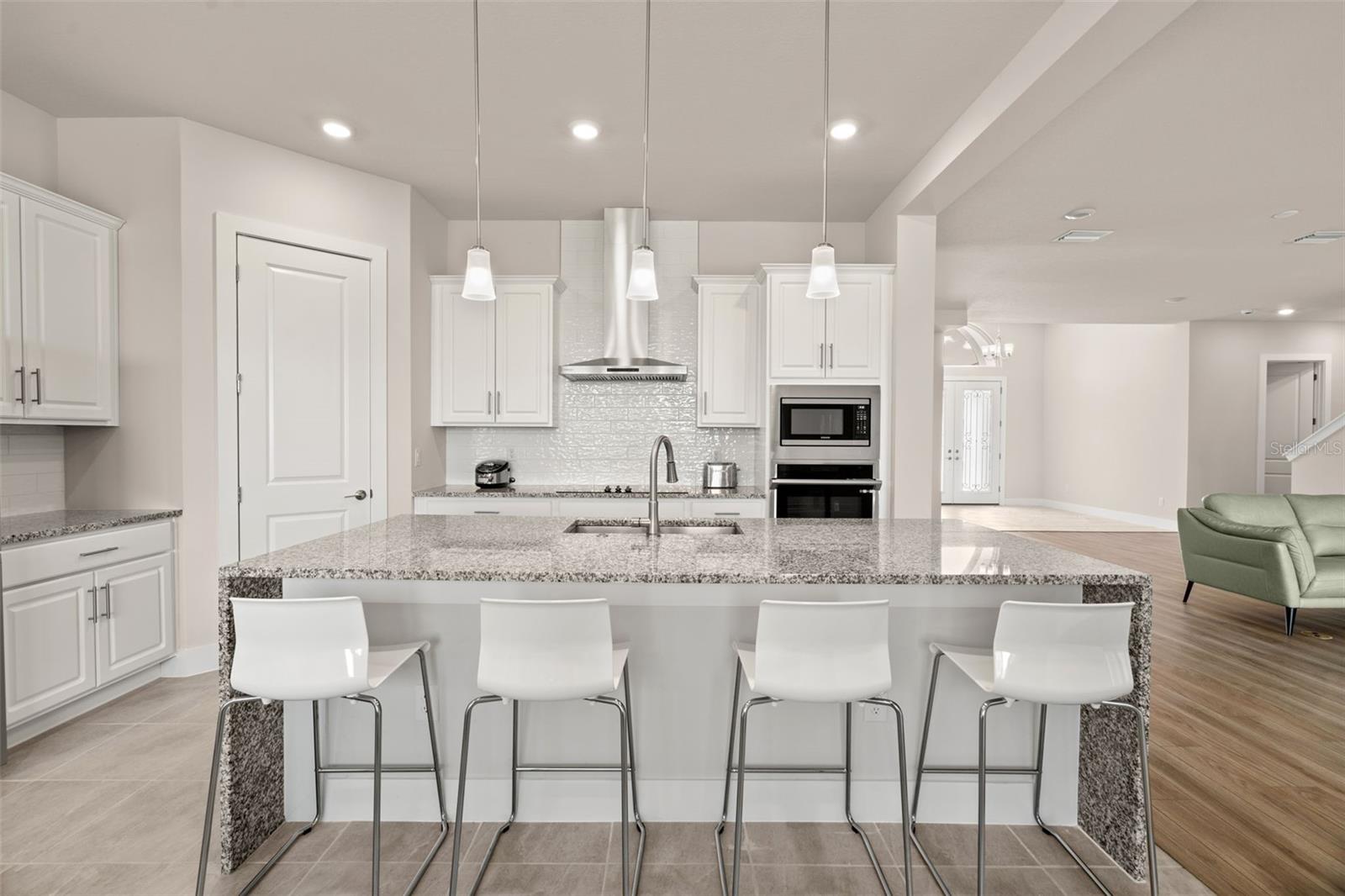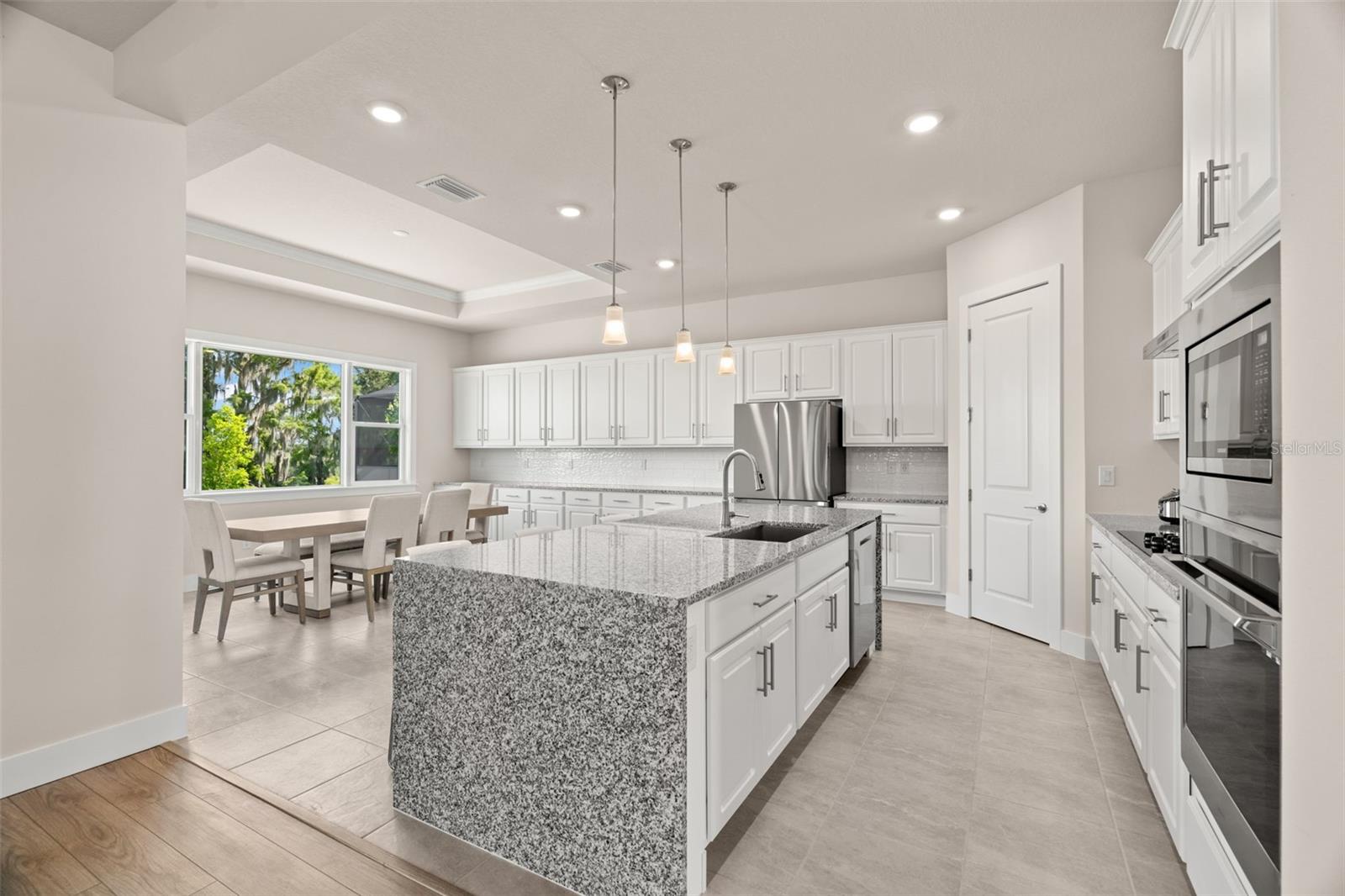 One or more photo(s) has been virtually staged. Immerse yourself in the epitome of luxury living in this exquisite five-bedroom, four-bathroom home, nestled within the gates of the prestigious 80-lot community. Curb appeal, paved drive and walkway provide a path into this Sabal III, Biscayne built home which is known as “Florida's Luxury Builder,” who has an established reputation as a premium builder brand in the Tampa market. This home is built on one of the most desired lots offering water and conservation view! Inside, elegance awaits while sharing all the comforts of daily living. The open concept includes the living room, a flex space (currently showing as a dining room) and the GOURMET kitchen which will captivate you with many upgrades! There is a waterfall countertop on the island, wall oven, a smooth cooktop, and stainless hood. The extended counter space and cabinetry provides storage, coffee/wine station and a buffet for serving all while overlooking the peaceful views! The grand, primary bedroom is on the FIRST floor and has amazing views, a tray ceiling, and an ensuite bathroom complete with a walk-in shower, soaker tub, dual sink vanity and loads of storage. There are TWO walk-in closets that offer adequate space for all your needs. The split floor plan has a second Primary Bedroom on the FIRST floor with a walk-in closet, ensuite bathroom, is adjacent to a BONUS room (perfect for a living space) and immediate access to the one car garage offering a private entrance. The THIRD bedroom, which is also on the first floor, has an ensuite bathroom and walk-in closet. Both options are ideal for multi-generational in-law suite, work from home and more. The first floor has a covered patio with pavers that overlook the serene and private view. Upstairs, a LOFT provides a bonus room which is ideal for a shared space to the additional two bedrooms and bath. From the loft, you will access the balcony and enjoy all that Florida offers including nature and no backyard neighbors. Epperson has A+ rated schools AND magnet schools including Kirkland Ranch Academy of Innovation where there are programs from 8th-12th grade (and plans to add K through 7th grade). Fees include cable with upgraded channels and high-speed internet. Paradise awaits with the Crystal Lagoon Membership fee offering over 7 acres of crystal-clear blue waters, volleyball and a swim-up bar. In addition, as a resident, you have kayaking, paddle board, beach access, cabanas, live music events for residents only, golf cart parades and more! Located close to shopping, several dining options, and 35 minutes to Tampa International Airport!