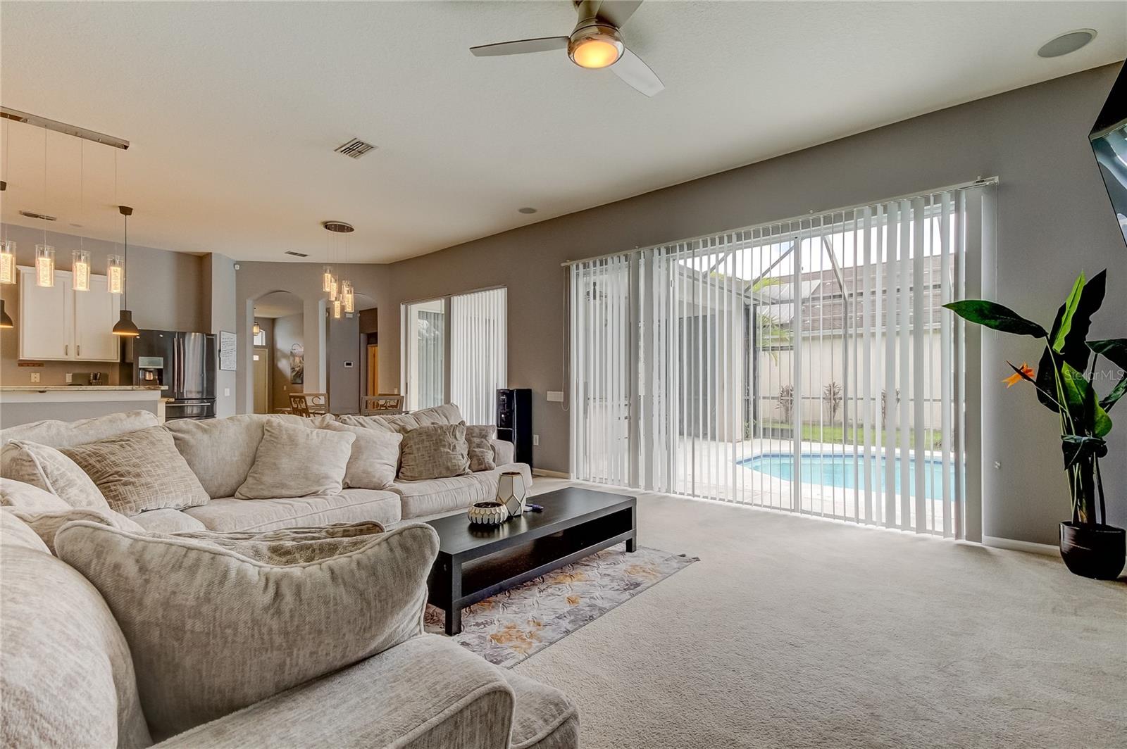 Welcome home to tranquility. This beautiful and spacious 4 bed/3.5 bath/2 car garage 3016 sq/ft POOL home located in the Lexington Oaks golf community of Wesley Chapel sits on the golf course in the Northhampton Village of the community. This home features a split-bedroom floorplan, den/office, formal living/dining rooms, PLUS a large bonus room. As you enter the home through the double door entry, the focus is on a large foyer with French doors to the office which flows to the separated living room/dining room & provides a great view of the pool. The open floor plan continues into the kitchen/breakfast nook overlooking the large family room. The kitchen features an abundance of 42" cabinets, granite counters, pendant lighting, stainless steel appliances, an island, breakfast bar & pantry. The large primary bedroom includes two walk-in closets and a bathroom with double sinks, garden tub, & separate shower. There is an abundance of storage in this home with extra storage under the stairway & in the hallway by the guest bedroom. The large laundry room will make any laundry day less of a chore. The screened salt-water and heated pool & lanai has a built-in bar that makes this area great for entertainment. The pool can be accessed from FOUR separate sliders, which makes this one of the BEST gathering places of the home. From the pool enjoy the evenings overlooking the peaceful golf course & conservation views beyond. HVAC units replaced 2023(downstairs) 2021 (upstairs) , hot water heater (2018), and pavers installed (2019). Lexington Oaks offers an array of amenities within its deed-restricted, pay-as-you-go golf community, including a championship 18-hole golf course, fitness center, heated pool, and various sports courts. Additionally, residents can enjoy the clubhouse and Omari's Bar & Grille. There are also two daycare centers in the community. Conveniently located near high rated schools and Reputable hospitals, this home ensures both comfort and convenience. Plus, with a low HOA and CDD fee (included in taxes), it presents an exceptional opportunity to embrace the coveted Lexington Oaks lifestyle. Plus, with QUICK ACCESS to I-75 and I-275, Wiregrass mall, Outlets stores, The Krates, and renowned Restaurants, you'll find that this location truly epitomizes the Perfect Blend of Convenience, Accessibility and Charm. In addition, it boasts a comfortable commute time to downtown Tampa and Tampa International Airport.
