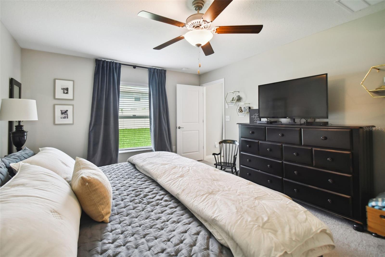 Welcome to Lagoon Living at its Finest! Nestled in the peaceful and newly developed Epperson community in Wesley, this golf cart-friendly neighborhood offers residents exclusive access to the breathtaking 7.5-acre Crystal Lagoon. Pride of ownership shines throughout this immaculate, contemporary single-story home, built in 2022 by Lennar. The Hartford floorplan captivates with its blend of charm and modern elegance. Step inside to a grand hallway that leads to the Great Room, Kitchen, and Dining area. This stunning home features a four-bedroom, two-bathroom split-bedroom layout, perfect for flexible living, whether for dining, a home office, or entertaining. Additional conveniences include a separate laundry room complete with a washer and dryer, and a spacious two-car garage. The open-concept design invites natural light to flood the space, with ceramic tile flooring in the main living areas and plush carpeting in the bedrooms. The family room and kitchen are open and airy, highlighted by a large granite-topped center island with an undermount sink, overlooking the family room and dining area. The kitchen boasts ample storage with staggered white shaker cabinets, beautiful granite counters and stainless steel appliances. A sliding glass door from the family room leads to a large, private, fully fenced backyard with two access gates. This outdoor space is ideal for creating your dream pool, patio, or a serene garden retreat. The generously sized owner’s suite is tucked away from the secondary bedrooms and guest bath, offering a luxurious ensuite with a large double vanity, shower stall, private water closet, and an oversized walk-in closet. The three additional bedrooms are situated on the opposite side of the home, sharing another full bathroom with a vanity and tub/shower combo. Every fixture in this home has been thoughtfully upgraded, reflecting modern style and quality. Built in 2022, this home offers improved energy efficiency, leading to lower power bills and reduced homeowner’s insurance. You will fall in love with this community! Epperson residents enjoy a vibrant lifestyle with exclusive events, seasonal celebrations, live music, yoga sessions, paddle boarding, obstacle courses, cabanas, and more. The community also encourages engagement in volleyball, softball, and other activities, or simply relaxing on the sandy Lagoon beaches. Additional community amenities include playgrounds, dog parks, Eagles Nest Park, a Lake House clubhouse, and golf cart trails. Nearby schools include Innovation Prep, Watergrass Elementary, Thomas Weightman Middle School, Kirkland Academy, and Wesley Chapel High School. The HOA covers cable and Ultra-Fi WiFi. Conveniently located just minutes from KRATES, Tampa Premium Outlets, Shops at The Grove, and major roads like I-75, this home offers the perfect blend of tranquility and accessibility. This home is a MUST SEE! Call today to schedule your private showing!