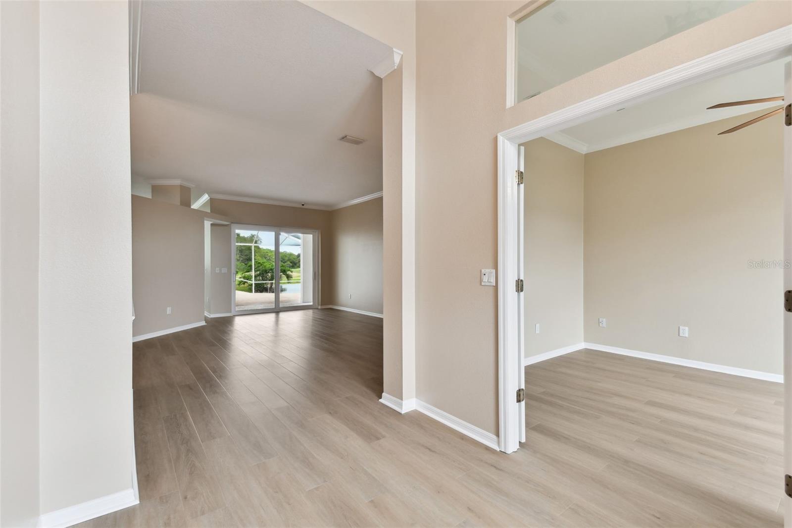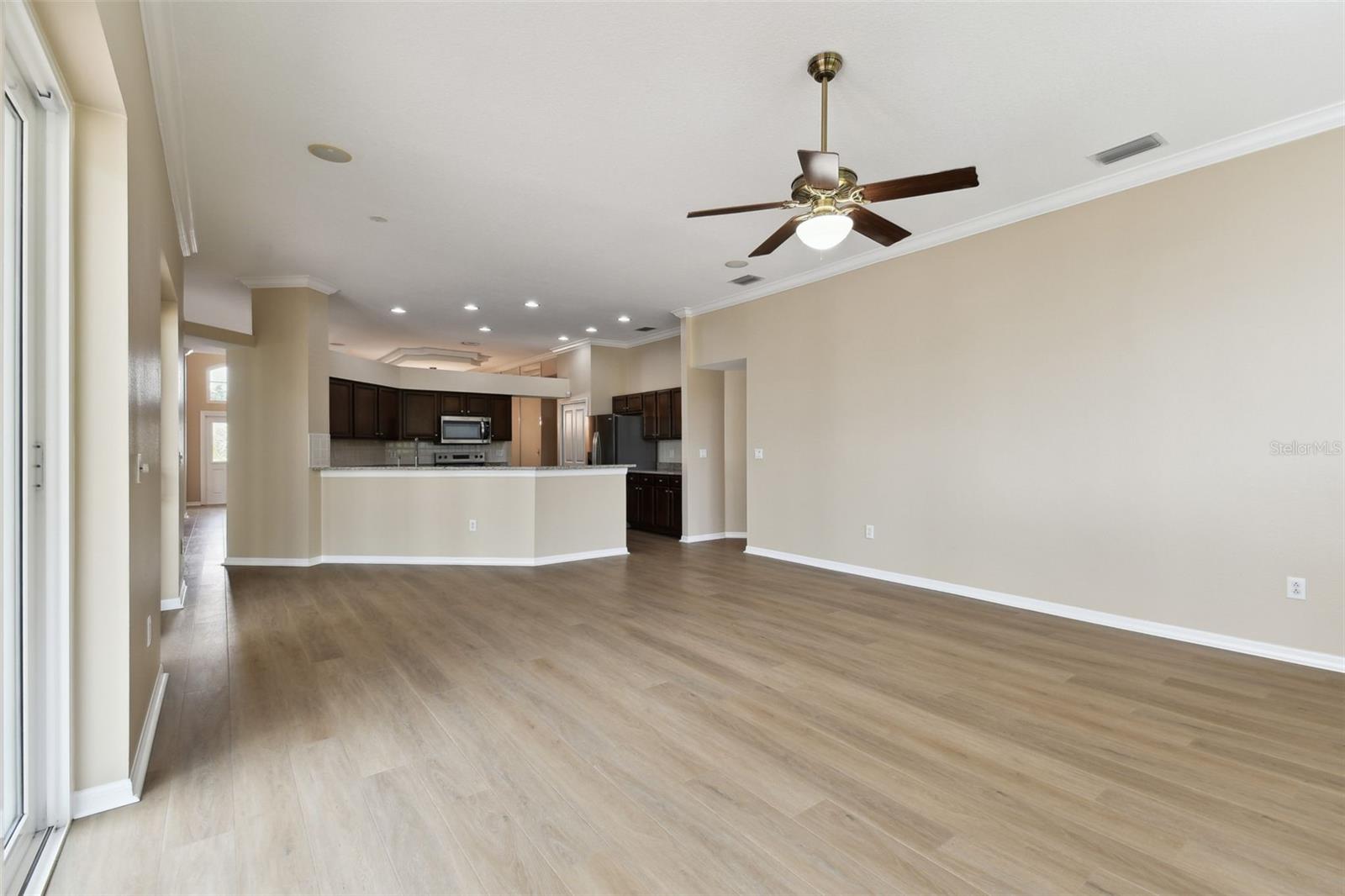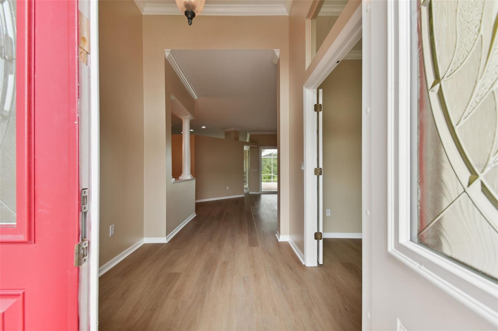 One or more photo(s) has been virtually staged. Discover this stunning 4-Bedroom, 3.5-Bathroom Home located in the prestigious Gated Village of Preakness within the Lexington Oaks Golf and Country Club community. With over 3,200 square feet of meticulously renovated living space, this home seamlessly blends luxury with functionality. Step through the grand foyer and be greeted by soaring 10-foot ceilings and BRAND NEW luxury vinyl plank flooring in the main areas, complemented by plush NEW carpet in the guest bedrooms. The spacious family room, featuring custom built-in shelving, offers an inviting open-concept flow to the kitchen—ideal for entertaining. This home features a thoughtfully designed layout, including a formal living room, a formal dining area, a dedicated office space, and an upstairs bonus room with a remodeled half bathroom. The updated kitchen is a chef’s dream, showcasing NEWLY INSTALLED granite countertops, NEW stainless steel appliances, and a motion-sensing faucet. Every sink, faucet, and toilet has been recently upgraded for modern comfort and convenience. Energy efficiency meets peace of mind with hurricane-impact windows and sliding glass doors, valued at over $30,000. Additional upgrades include a new roof (2021), an epoxied garage floor, and a MyQ Wi-Fi-enabled garage door opener. Water quality is assured with a comprehensive water softener and reverse osmosis system. Outdoor living shines with a scenic conservation pond view near the 18th hole. The extended screened-in patio, surrounded by mature landscaping and freshly trimmed palm trees, provides the perfect setting for relaxation or entertaining. With over $90,000 in recent updates, this move-in-ready home is the epitome of convenience and style. Residents of Lexington Oaks enjoy an array of amenities, including a golf clubhouse, community pool, fitness center, tennis and basketball courts, sand volleyball, and picturesque walking and biking trails. Ideally located near I-75/I-275, Wiregrass Mall, Tampa Premium Outlets, and top dining and entertainment options, this exceptional home won’t last long. Schedule your private tour today!