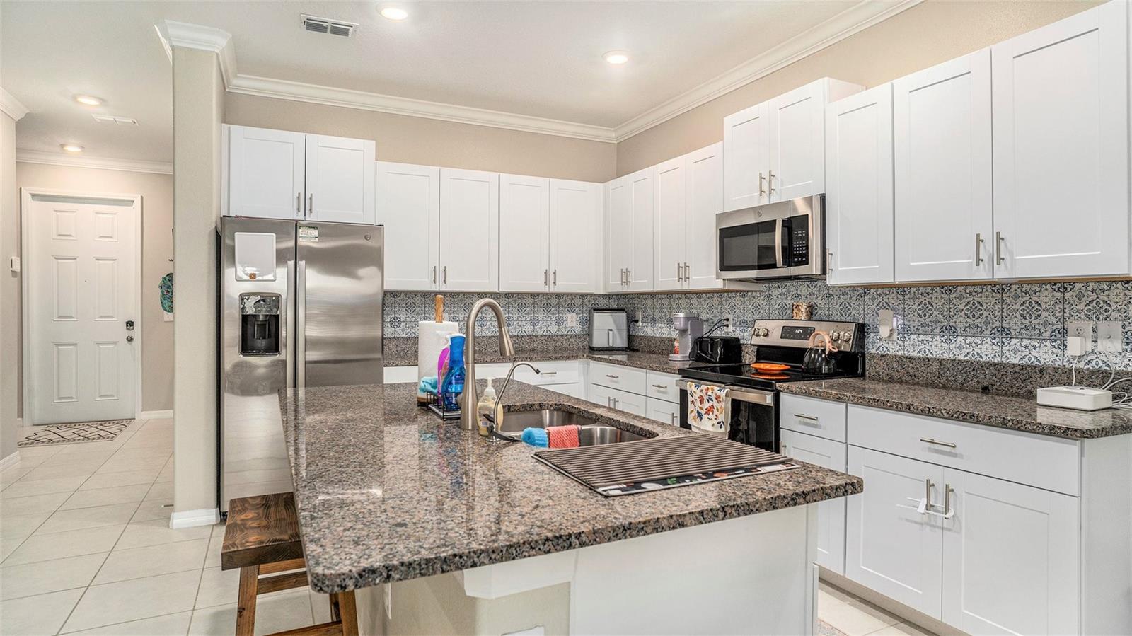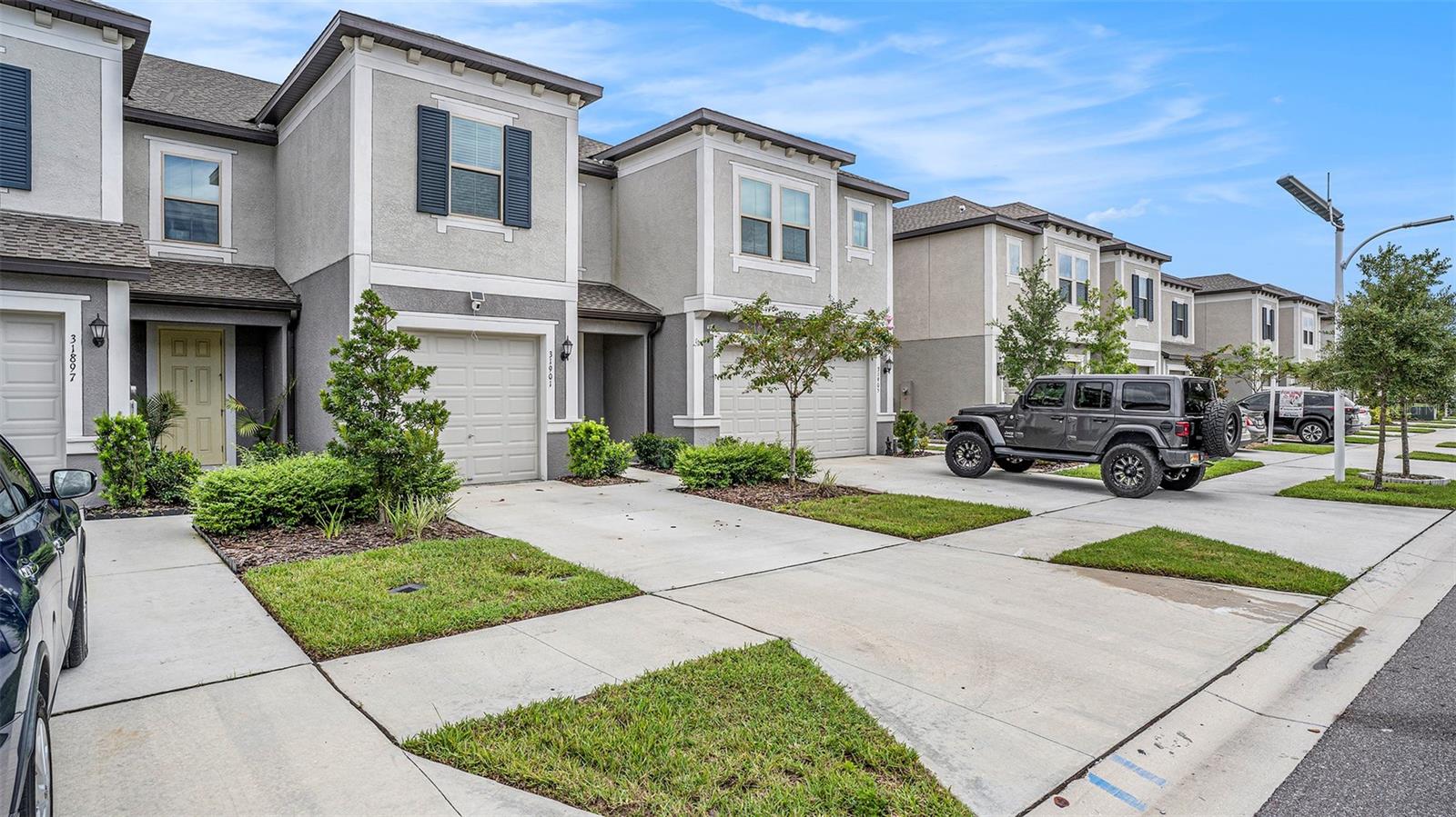This 2022 built townhome is beautiful, and it's in the perfect place! The Epperson CDD has amazing resort amenities! The impressive lagoon is within walking distance, where you can swim, kayak, or paddleboard. The community is golf cart approved. There's also tidal pools, a dog park, swim-up bar, restaurant, family beach, and much more in the community. There's a Publix nearby, and new Starbucks, and a Chic-Fil-a coming soon. This home is like new and comes with 3 bedroom and 2.5 bath, granite counters and all wood cabinets in the kitchen, as well as a charging outlet for an electric car in the garage. There's walk-in closets in two of the bedrooms, with built-in closet in the other.