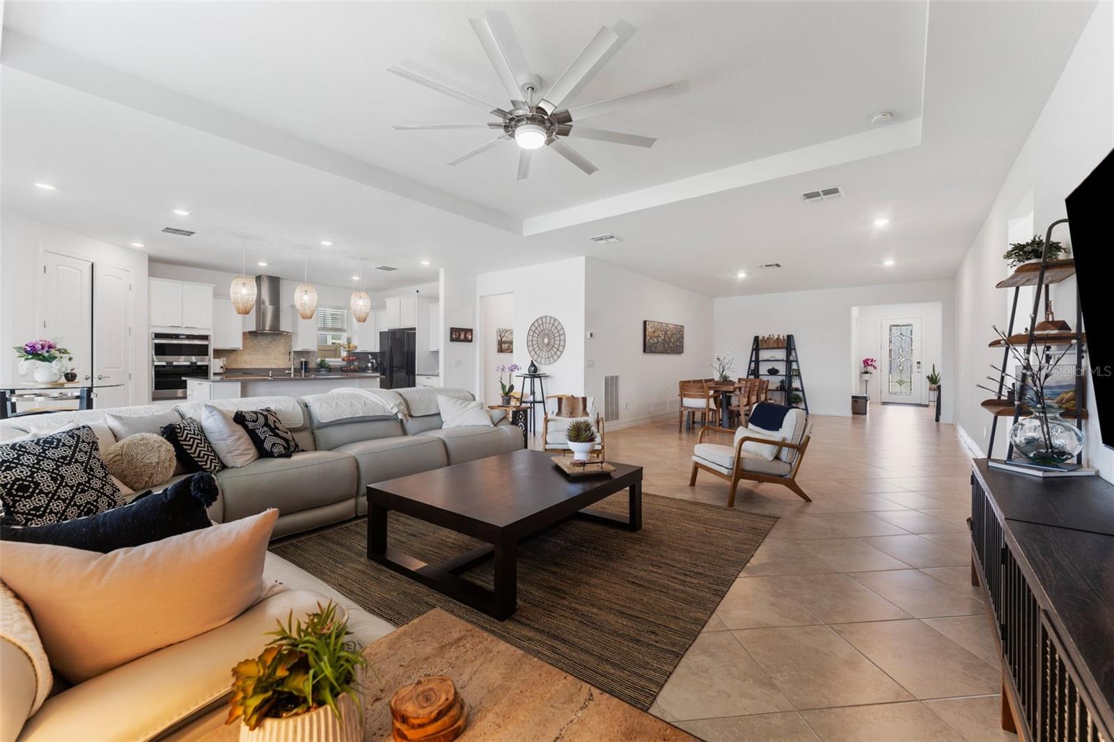 SELLER MOTIVATED!! Discover your dream home in this stunning 4-bedroom, 2.5-bath Pulte home featuring the desirable Dockside floorplan from the Elite 60' series in the highly sought-after Epperson Lagoon Community! Spanning 2565 sq ft, this residence offers an open layout ideal for modern living and entertaining. Enjoy seamless indoor-outdoor connectivity with exterior pocket sliding doors leading to a screened covered lanai, perfect for relaxing while taking in breathtaking lake views and magnificent sunsets. The home boasts luxurious upgrades, including a super walk-in shower in the primary bathroom, tray ceilings in the living room and primary bedroom, and upgraded cabinets with pull-out drawers. Elegant Boston Perla diagonal 18" x 18" tile flooring runs throughout, complemented by gray expo quartz countertops. Additional features include 9'4" ceilings, upgraded 8-foot interior doors, fans in every room, and a water softener pre-plumbed in the garage. The gathering room is equipped with an electric floor outlet, and the garage includes a 240V connector for electric cars. Security is paramount with a whole-house alarm system. Residents will also enjoy exclusive access to the community’s 7.5-acre Crystal Lagoon, complete with its own beautiful sandy beaches—the first of its kind in the United States boasting sandy beaches, paddleboarding, kayaking, live music events, and exclusive celebrations for residents.! The community quarterly HOA fee also includes cable and ultra-fi internet. With plenty of schools to choose from in the area, be sure to check out Kirkland Ranch, School of Innovation nearby. Don’t miss this unique opportunity to embrace a luxurious lifestyle; schedule a showing today!