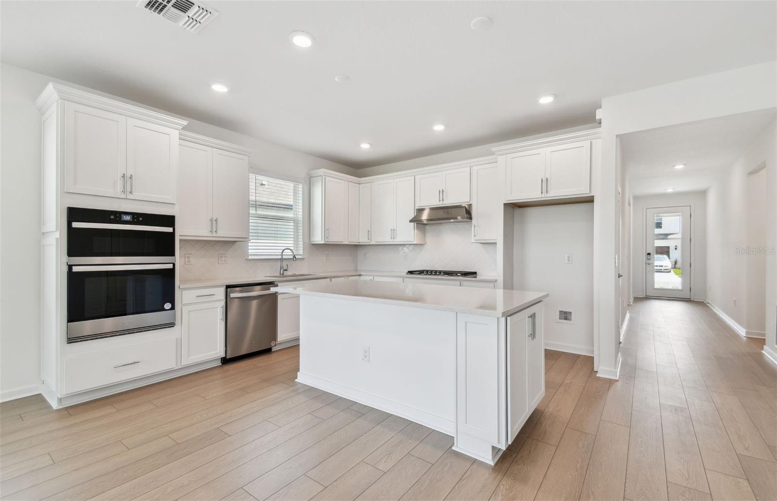One or more photo(s) has been virtually staged. Move In Ready Available Now!! Pulte Homes is now selling in Vida’s Way, in a sought-after Wesley Chapel, FL, location. Enjoy pristine land that provides miles of walking trails, a dog park, and a community garden. A clubhouse with fitness, rec, and social spaces sits alongside a resort-style pool, playground, event lawn, fire-pit and pickleball courts for all. Featuring the perfectly sized Heston floor plan with a single-story, open-concept home design, this home has the upgrades you’ve been looking for. The designer kitchen showcases an island, white cabinets, 3cm quartz countertops with a 3"x6" white herringbone tiled backsplash, an oversized pantry, a large single-bowl sink, and Whirlpool stainless steel appliances including a built-in oven and microwave, dishwasher, and stovetop with range hood. The bathrooms have matching white cabinets and quartz countertops, comfort height commodes and a walk-in shower with a bench seat and dual sinks in the Owner's bath. There is luxury vinyl plank flooring in the main living areas, 21”x21” floor tile in the baths and laundry room, and stain-resistant carpet in the bedrooms. This home also features a convenient laundry room, a covered lanai, and a 2-car garage. Additional upgrades include a glass insert in the front door, LED downlights in the gathering room and closets, pendant pre-wiring in the kitchen, upgraded door hardware, and a Smart Home technology package with a video doorbell. Call or visit today and ask about our limited-time incentives and special financing offers!