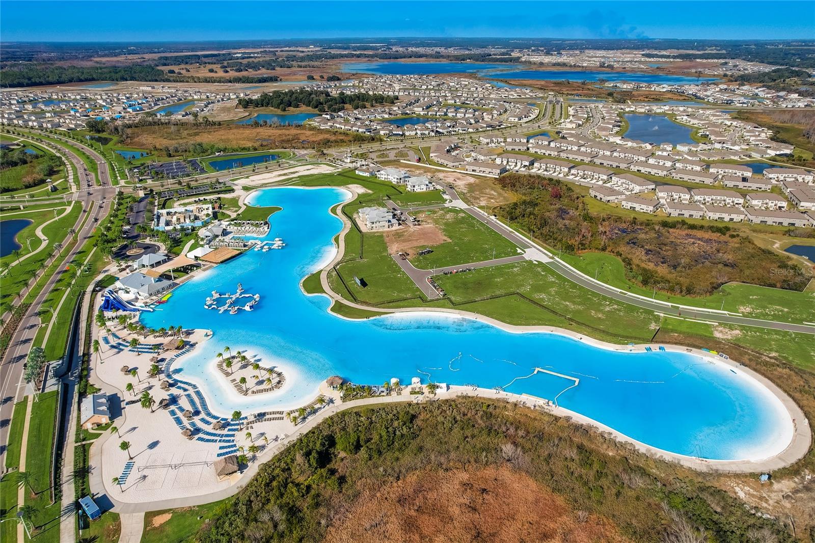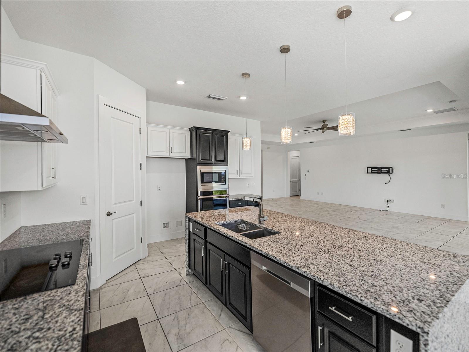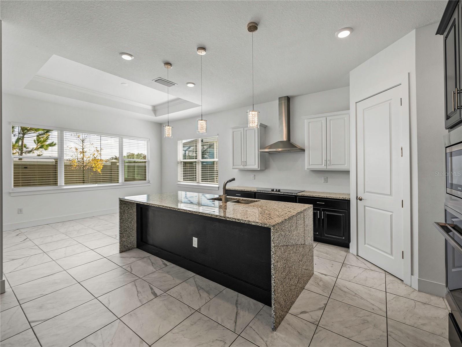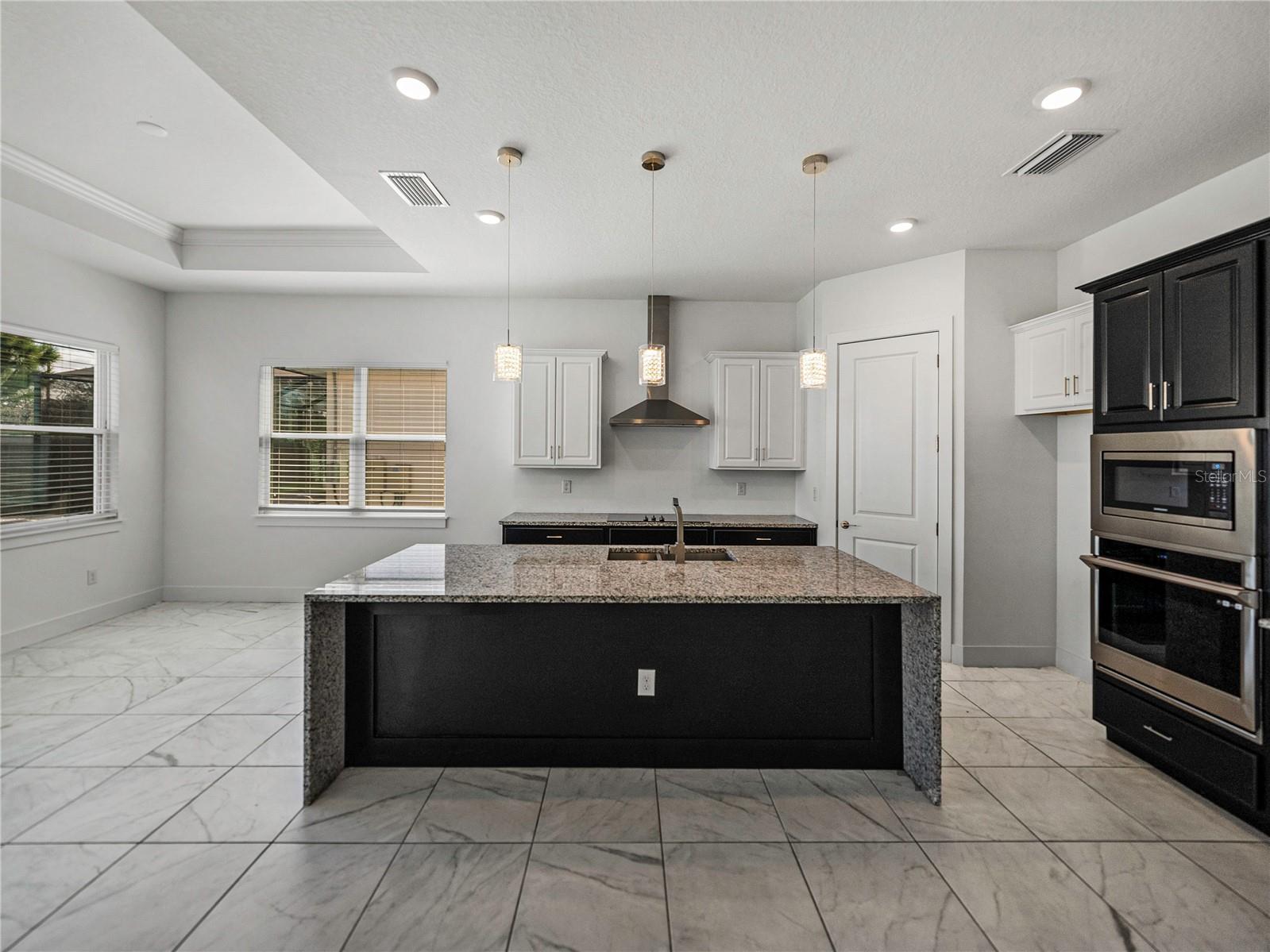Don’t wait on new construction! This stunning, like-new 2022 built home is an upgraded and sleek blank slate awaiting its newest owners. Offering 3 bedrooms, 2.5 baths, a private office/bonus room, and an inviting entertainer’s floor plan, this property is the clear choice for your new home purchase before the holidays! Arrive to a beautifully landscaped exterior with coastal vibes, 3 garage spaces, and a covered entryway. Step inside to soaring ceilings, luxury tile flooring, and abundant natural light pouring into the open floor plan through quadruple sliding doors and several windows. Host gatherings with ease in the spacious living room that flows nicely into the dining room and chef's kitchen. It features a central island with a granite waterfall edge, a built-in oven and microwave, a SS dishwasher, a cooktop with a SS range hood, and ample pantry and cabinet storage. The primary bedroom is split away from the other rooms for privacy and provides a massive walk-in closet, generous sleeping quarters, and an ensuite bathroom with spa-like finishes including a rectangular soaking tub, a custom walk-in shower, and dual sinks. A half bathroom for guests and the dedicated office/bonus room add flexibility to the home. Bedrooms 2 and 3 are near the front of the property. They both have plush carpet flooring, ceiling fans, large closets, and easy access to the 2nd full bathroom. Relax and unwind overlooking the lush yard from your covered back porch, or head down to the lagoon for a day of Florida fun under the sun. Epperson Lagoon is Florida's first man made 7 acre lagoon featuring sand beaches, swim up bars, cabanas, water sports, slides, and more! Call us today to learn more- Living in Epperson is more than just purchasing a new home, it is embracing a new lifestyle.