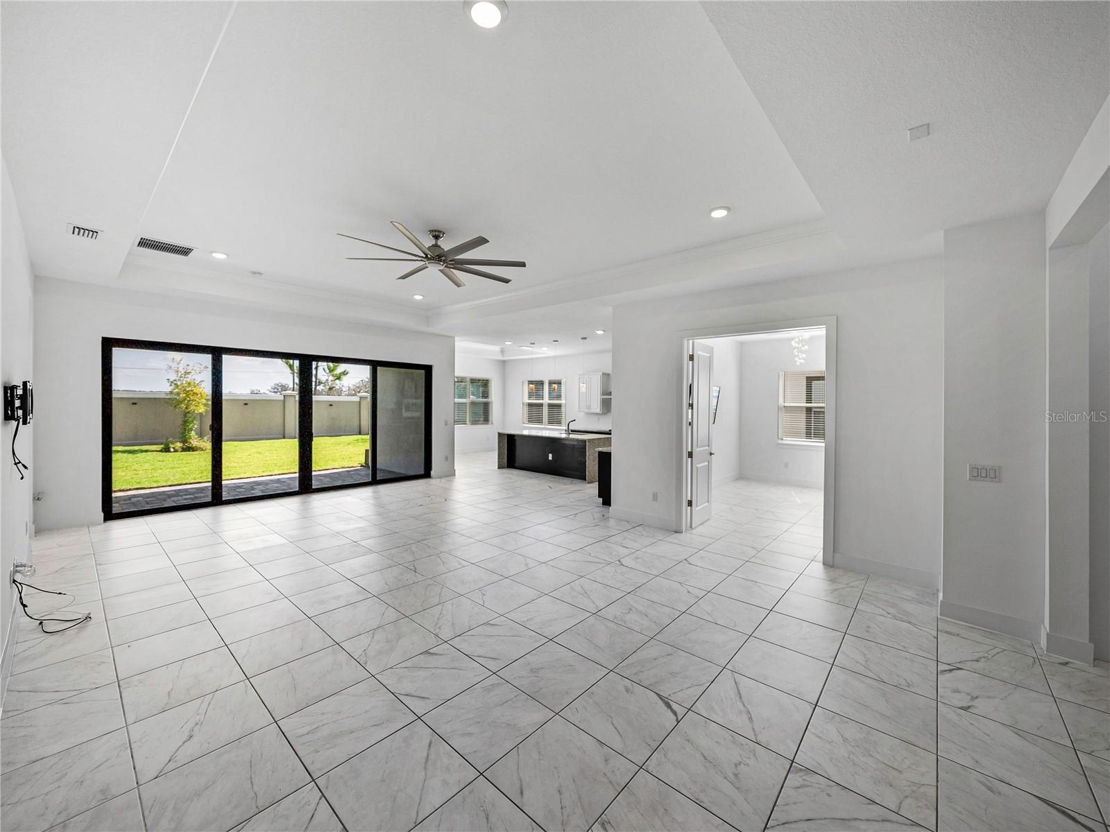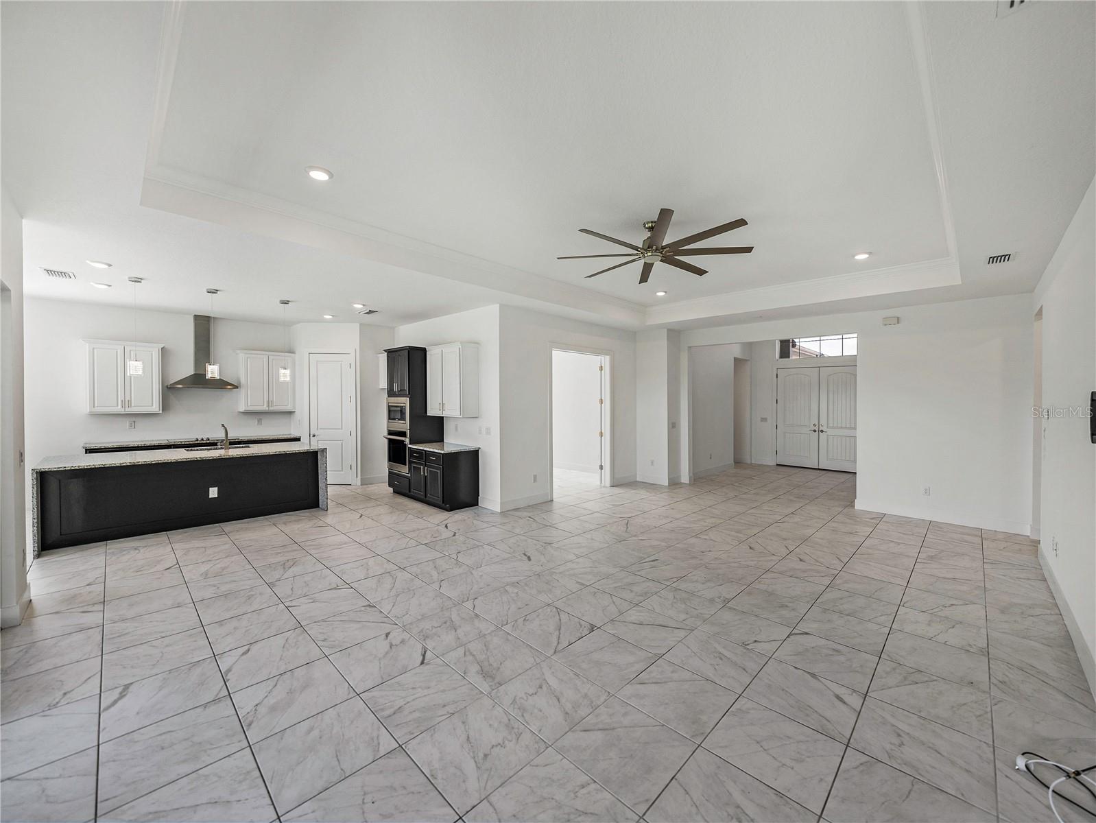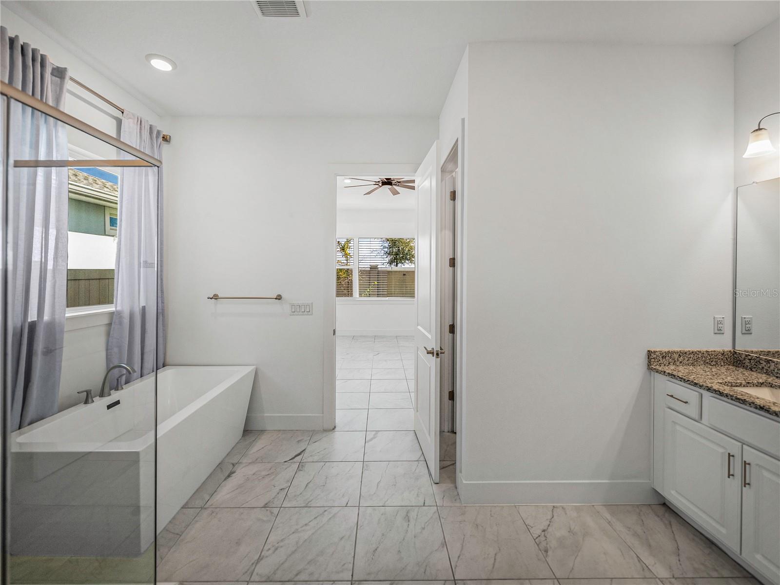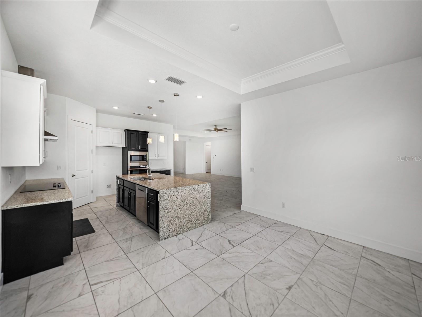 Don’t wait on new construction! This stunning, like-new 2022 built home is an upgraded and sleek blank slate awaiting its newest owners. Offering 3 bedrooms, 2.5 baths, a private office/bonus room, and an inviting entertainer’s floor plan, this property is the clear choice for your new home purchase before the holidays! Arrive to a beautifully landscaped exterior with coastal vibes, 3 garage spaces, and a covered entryway. Step inside to soaring ceilings, luxury tile flooring, and abundant natural light pouring into the open floor plan through quadruple sliding doors and several windows. Host gatherings with ease in the spacious living room that flows nicely into the dining room and chef's kitchen. It features a central island with a granite waterfall edge, a built-in oven and microwave, a SS dishwasher, a cooktop with a SS range hood, and ample pantry and cabinet storage. The primary bedroom is split away from the other rooms for privacy and provides a massive walk-in closet, generous sleeping quarters, and an ensuite bathroom with spa-like finishes including a rectangular soaking tub, a custom walk-in shower, and dual sinks. A half bathroom for guests and the dedicated office/bonus room add flexibility to the home. Bedrooms 2 and 3 are near the front of the property. They both have plush carpet flooring, ceiling fans, large closets, and easy access to the 2nd full bathroom. Relax and unwind overlooking the lush yard from your covered back porch, or head down to the lagoon for a day of Florida fun under the sun. Epperson Lagoon is Florida's first man made 7 acre lagoon featuring sand beaches, swim up bars, cabanas, water sports, slides, and more! Call us today to learn more- Living in Epperson is more than just purchasing a new home, it is embracing a new lifestyle.