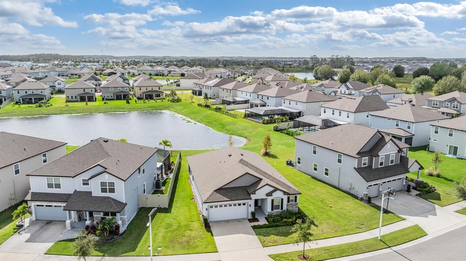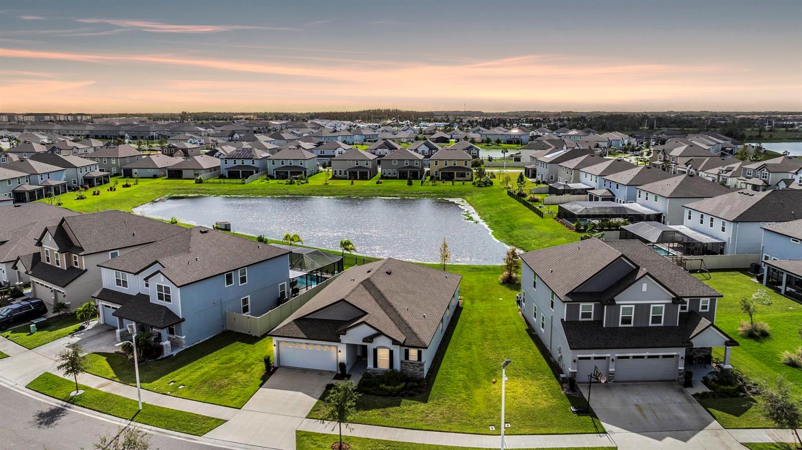 This house comes with a REDUCED RATE as low as 5.99% (APR 6.231%) as of 04/17/2025 through List & Lock™. This is a seller paid rate-buydown that reduces the buyer’s interest rate and monthly payment. Terms apply, see disclosures for more information.Welcome to Life at the Lagoon! This cozy pond Florida view home has three bedrooms + a flex room/ home office, two bathrooms, a two-car garage and a screened in Lanai in over 2,500 sq. ft. (1,998 heated). Located on a pie shaped lot, in the popular Epperson Lagoon Community in Wesley Chapel. Upgraded with vinyl plank flooring in the main areas. The Drexel floor plan by Maronda Homes offers an open space with the kitchen overlooking the living room, dining area, lanai and the pond! The kitchen has black cabinets and granite countertops with vast space for cooking and seating for four in the breakfast bar. The dining area has room for a table up to 10 and is located next to the lanai. Slide that glass door open and you have the perfect space for indoor/outdoor gatherings. The primary suite has a large en suite bathroom with bathtub, separate walk-in shower and separate walk-in closet. The large yard overlooks the beautiful pond which faces east, therefore you'll have a perfect view of the sunrise. The lanai is screened-in so this is the spot to have a coffee in the morning and enjoy the tranquil view. By the way, this home has smart home features and wired for a security system of your choice. This cozy home is move-in ready! Life at the Epperson Community is like nothing else. This home is in close proximity to Publix Plaza at Innovation Springs (you can ride the golf car over), Starbucks and Chick Oil-A (coming soon). The Epperson HOA quarterly fee is only $237 per quarter and includes cable + the fastest internet in the nation, Ultra-Fi. The Crystal Lagoon Membership Fee is $137 per quarter. The closest Elementary Schools are Innovation Preparatory Academy, Watergrass Elementary School & Wesley Chapel Elementary. The Kirkland K-8 Charter School just a few blocks away and opening Aug. 2024! The closest middle school is Thomas Weightnman Middle School. The nearest high schools are Kirkland Academy of Innovation High School and Wesley Chapel HS. The community features “Street Leaf” (solar streetlights), home of the first Crystal Lagoon, where Residents have access to Elam Park & the dock at King Lake, Paddle Boarding, Kayaking, a Wibit Obstacle Course, Cabanas, AquaBanas, Sandy Beaches, Live Music Events, Swim Up Bar and Resident Only Events. The Lagoon is like an Outdoor Clubhouse. The Holiday/Seasonal Events include Trivia Night, Family Night, Movies on the Lawn, Sounds of Summer (live music series), Karaoke, Pumpkin Patch in November, Golf Cart parades, Cinco de Mayo Resident only celebration, Fourth of July Resident Only celebration and much more. The Epperson Community Amenities include an Eagle’s Nest Part, a dog park, and golf cart paths. This home is located about 10 minutes away from KRATE (the new outdoor mall), 35 minutes north of Downtown Tampa, 45 minutes from Tampa International Airport, and 90 minutes from Orlando and Walt Disney World. You are ready for LIFE AT THE LAGOON! Set up a tour today! Video tour available upon request. This home qualifies for an Assumable FHA loan. Restrictions apply.