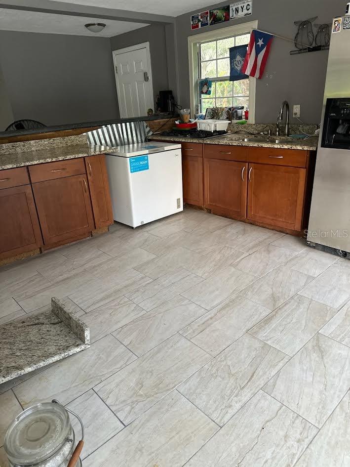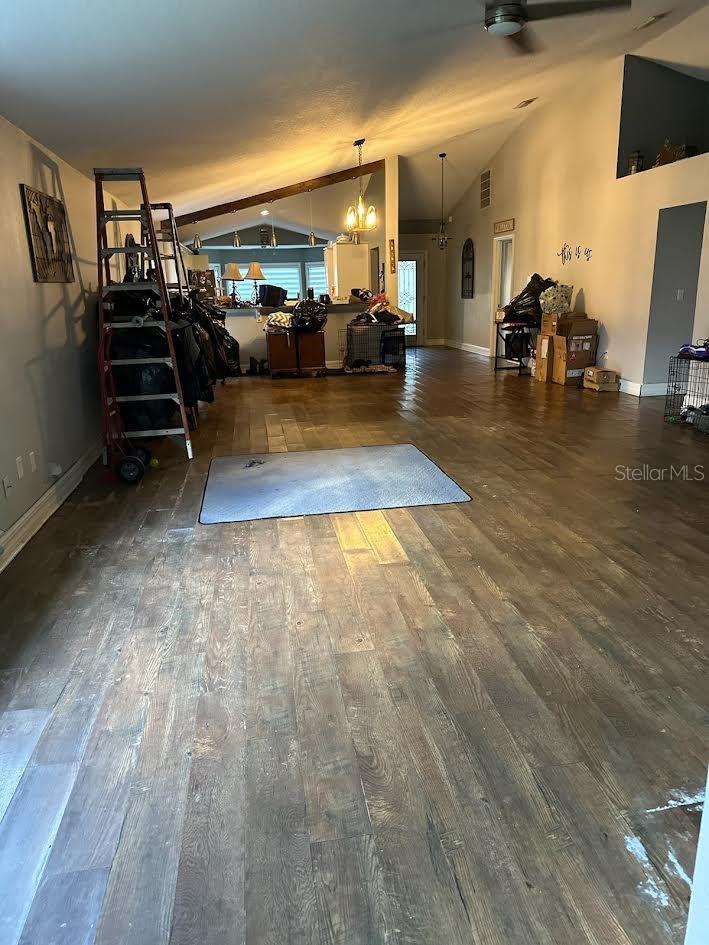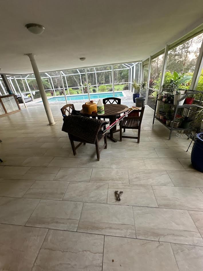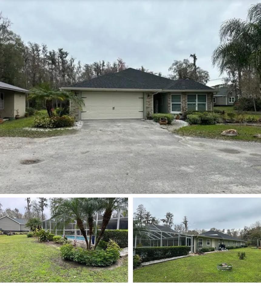 This beautifully updated home offers the best of outdoor and indoor living on a private, wooded 1-acre lot. Recently refreshed with exterior paint and nearly fully renovated, this property is located in a flood zone but only experienced flooding for the first time due to nearby dam adjustments. Hardwood floors will need replacing, and some minor drywall repair may be needed, but there’s no mold present. A $15,000 repair credit will be given upon closing to cover any needed repairs. Enjoy a 4-year-old heated pool and an expansive 1,100 sq ft screened lanai with a wet bar, kitchen, and bath—perfect for entertaining or even adding an outdoor kitchen. Inside, the open floor plan boasts a great room with volume ceilings, an upgraded kitchen with granite countertops, and stainless steel appliances (all included). The spacious master suite features a massive walk-in closet, a luxurious bath with a glass-enclosed tiled shower, clawfoot tub, and double vanities. Additional parking space by the garage is ideal for an RV or work truck, and the home includes a newer AC. This property is the perfect retreat from city life while staying close to schools, shopping, and I-75 for an easy commute!