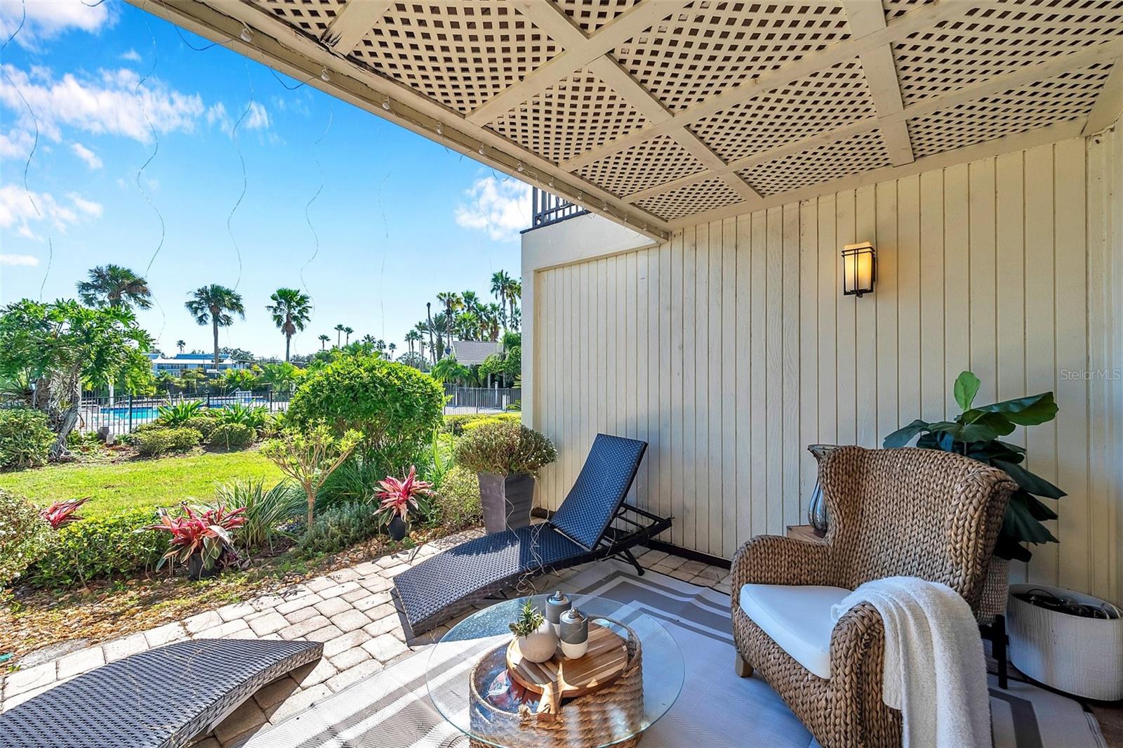 Welcome to this beautiful, designer renovated first floor condo that has the best location within the remarkable and well-known Saddlebrook Resort. Saddlebrook itself is a gem that has hosted and trained many world known athletes in tennis and golf. This condo is right in the middle of this athletic surrounding and has a special location in Lakeside Saddlebrook, facing the pool, the lake and the golf course. You can watch the beautiful sunrise and picturesque sunsets of Florida by your spacious patio relaxing to experience. When you enter the condo, you will be impressed with the light and the spaciousness of the place that welcomes you with a open concept. Everything is renovated with elegance and functionality with a modern taste. The whole condo has this state of the art porcelain tiles all throughout the unit..As you enter, the designer kitchen greets you with a spacious peninsula, beautiful tall cabinets including a pantry unit, stainless steel appliances, and a state of the art range hood, designer smoke gray quartz countertops that you can use also as a breakfast bar. Everything in the unit has been meticulously designed with perfection..Such a nice flow, where kitchen is connected to the dining room connected to the living room which flows into to the beautiful outdoor porch. All the appliances are top of their line and in an excellent condition. Such a lovely spot to entertain guests and family. The two spacious bedrooms come with en-suite renovated state of the art bathrooms. The master bedroom, large enough to fit a king bed, looks over to the beautiful view, and is spacious and full of natural light due to the large windows. En suite master bathroom with dual sinks and quartz designer countertops flows into the renovated walk-in shower giving you the luxurious spa effect. The second bedroom which is also renovated from top to bottom is also very spacious, comes with its en-suite gorgeous bathroom, that is ideal for your guests. Comes with a brand NEW A/C. The location is perfect..The condo being in Saddlebrook Resort would enrich your life style; the resort features 2 championship golf courses, 45 professional tennis courts, 3 swimming pools, European health spa, 3 spectacular restaurants, fitness center and much more. The Community has a 24/7 staffed gate guard and security on the grounds. . You can go and dine at the Resort hotel and enjoy the views of the golf course and natural trails sipping your morning coffee. Saddlebrook is within minutes of the Wiregrass Mall, the Tampa Premium Outlets, the Grove, St Leo University, the USF Campus, and both the Epperson and Mirada Lagoons. With an quick access to I-75 you can easily get to world famous beaches, Tampa International Airport & Busch Gardens, hospitals, schools, recreation centers. A membership is required to use the amenities at Saddlebrook, which includes the swimming pool, fitness center and tennis courts. You still can enjoy walking /running in the beautiful natural habitat of Saddlebrook and see all the wild life and cypress trees. Great location - very close to restaurants, schools, shopping and dining in the booming town of Wesley chapel..Call today to schedule your viewing and grab this gem before it is gone.