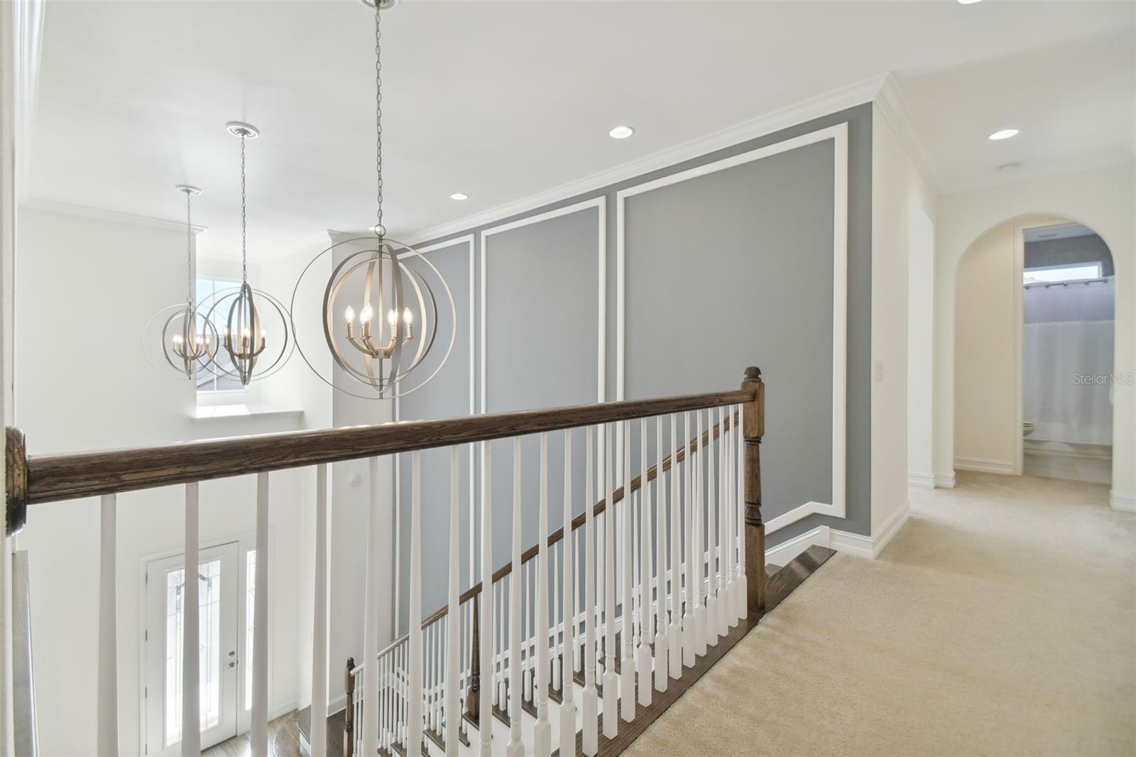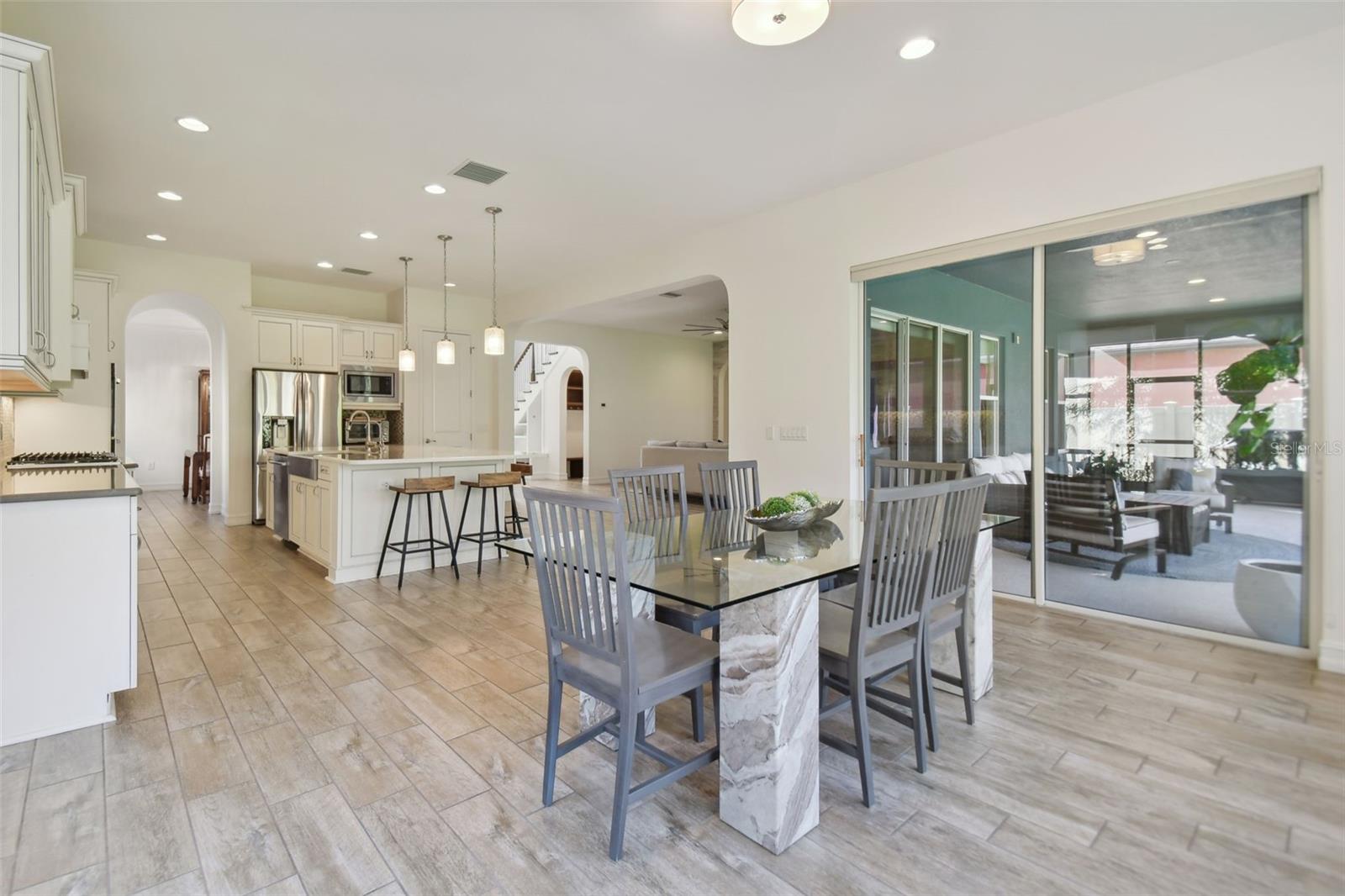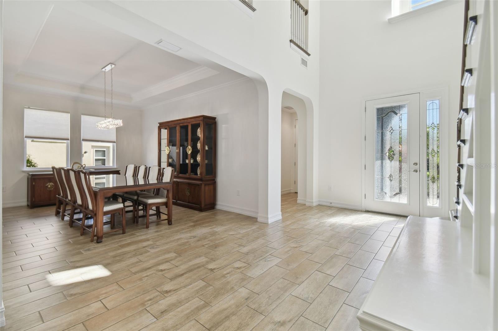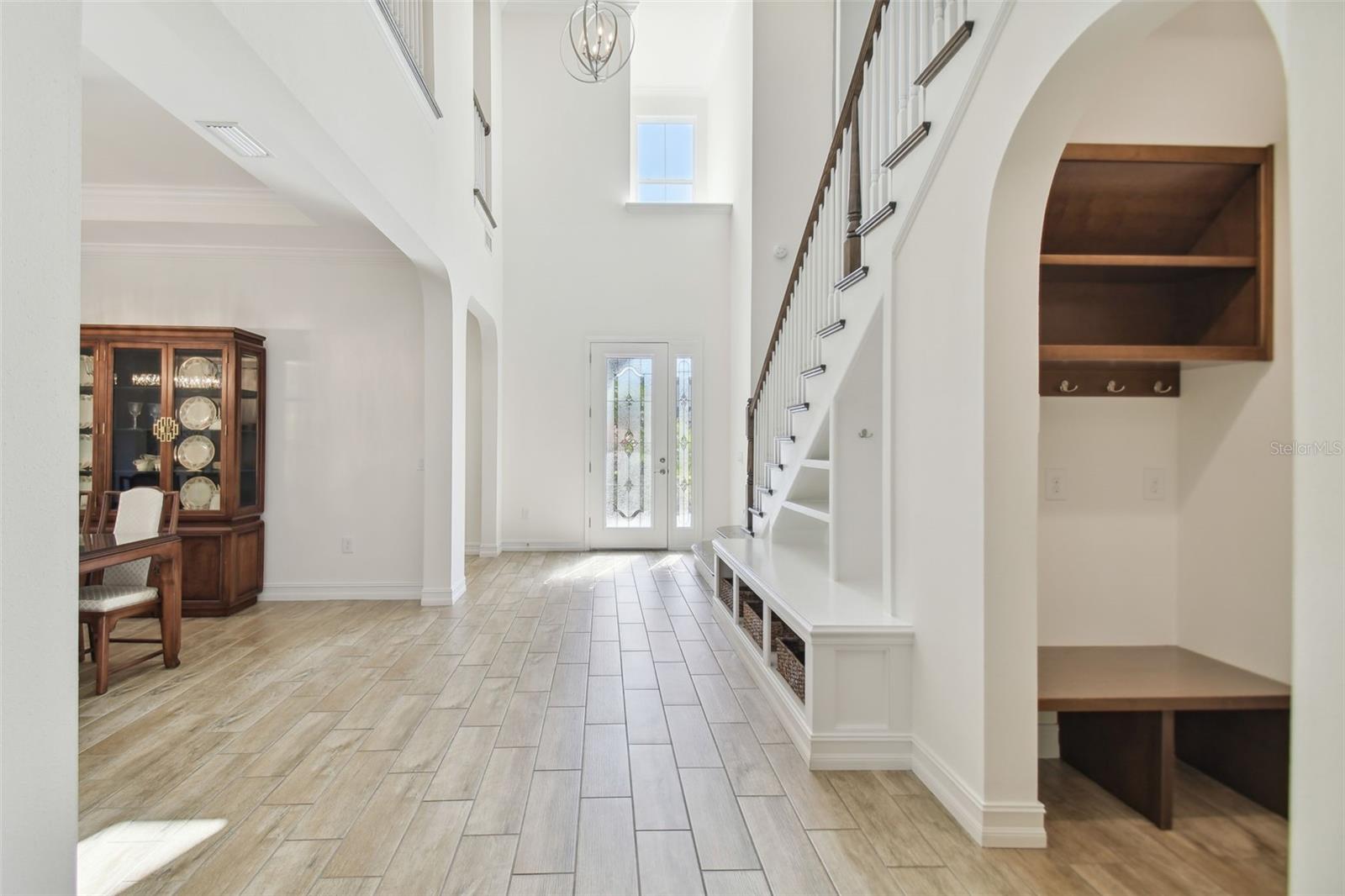 Beautiful CalAtlantic Chesapeake floorplan boasting over 4100 sq ft in the highly desired community of Estancia sitting on tranquil conservation with no rear neighbors! Located in the gated community of Tavira, the home offers 5 Bedrooms| 4 Baths| Bonus Room| Office and 3 Car Garage. It additionally provides an elongated driveway which will accommodate multiple vehicles comfortably. As you enter you are greeted by 20-foot-high ceilings, open staircase, decorative molding and lots of natural light. The interior has been freshly painted with a neutral color pallet that accentuates the existing design features. The main living area has porcelain tile that resembles wood planks, custom built in, decorative stone wall, and decorative archways. This gourmet kitchen features 42” high cabinets with decorative details, 5 burner natural gas stove, backsplash, double oven, apron kitchen sink, serving station, walk in pantry, stainless steel appliances, and quartz countertop. The first floor has an open concept, conservations views, and an oversized screened lanai! First floor has a private bedroom with a shower and an office with glass double doors. The primary bedroom is a complete oasis retreat. The primary bathroom has an oversized shower with rain shower, dual sink vanities with granite countertops, garden tub, natural light, and a decorative wall feature. The primary bedroom has plenty of space for a sitting area, tray ceiling, and a walk in dressing room. The laundry room features upper and bottom cabinets for lots of storage and sink. The 20x20 bonus room is upstairs and can serve as a multi purpose space. The club at Estancia has a lifestyle director hosting events and activities for its residents all year long. Enjoy the gym, clubhouse, tennis court, pickleball, tennis court, basketball court, trails and luxurious swimming pool with a zero entry and lap area. This neighborhood is less than 1 mile from Advent Health, BayCare Hospital, and the future Orlando Health. Zoned for A+ school zone, easy access to I-75, Wiregrass Mall, the Krates, restaurants, and shops make this area an ultimate favorite. Don’t miss out as this model does not hit the market often! Click for virtual tour!
