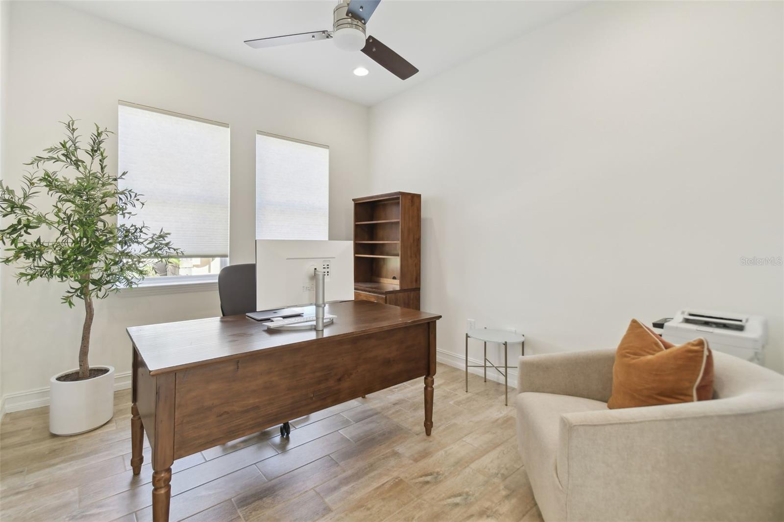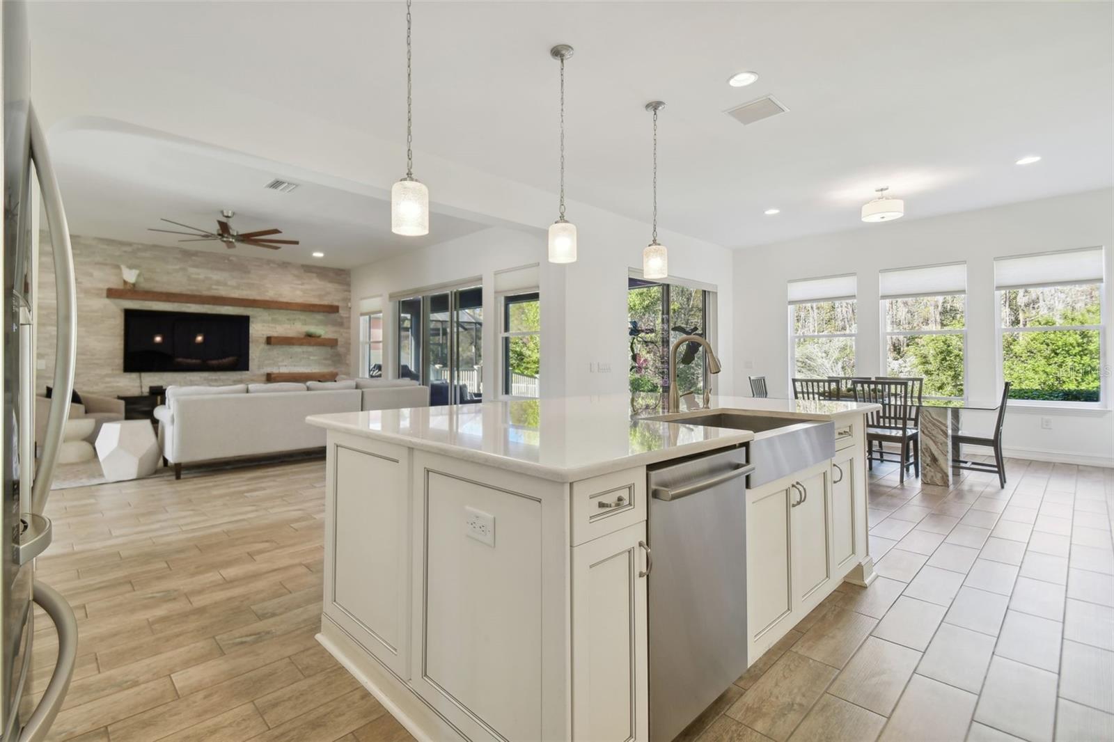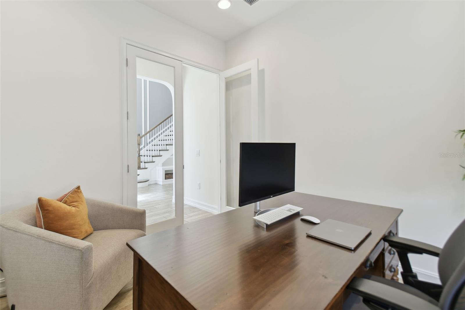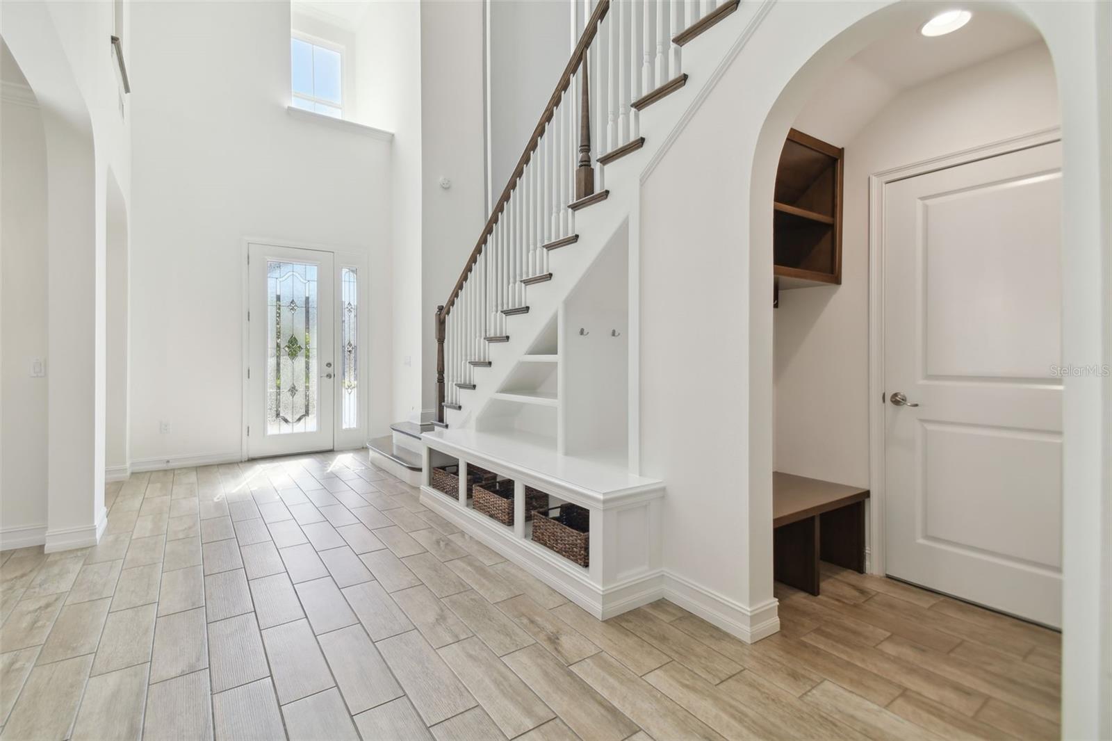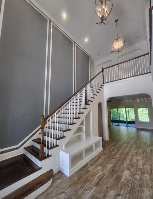 Beautiful CalAtlantic Chesapeake floorplan boasting over 4100 sq ft in the highly desired community of Estancia sitting on tranquil conservation with no rear neighbors! Located in the gated community of Tavira, the home offers 5 Bedrooms| 4 Baths| Bonus Room| Office and 3 Car Garage. It additionally provides an elongated driveway which will accommodate multiple vehicles comfortably. As you enter you are greeted by 20-foot-high ceilings, open staircase, decorative molding and lots of natural light. The interior has been freshly painted with a neutral color pallet that accentuates the existing design features. The main living area has porcelain tile that resembles wood planks, custom built in, decorative stone wall, and decorative archways. This gourmet kitchen features 42” high cabinets with decorative details, 5 burner natural gas stove, backsplash, double oven, apron kitchen sink, serving station, walk in pantry, stainless steel appliances, and quartz countertop. The first floor has an open concept, conservations views, and an oversized screened lanai! First floor has a private bedroom with a shower and an office with glass double doors. The primary bedroom is a complete oasis retreat. The primary bathroom has an oversized shower with rain shower, dual sink vanities with granite countertops, garden tub, natural light, and a decorative wall feature. The primary bedroom has plenty of space for a sitting area, tray ceiling, and a walk in dressing room. The laundry room features upper and bottom cabinets for lots of storage and sink. The 20x20 bonus room is upstairs and can serve as a multi purpose space. The club at Estancia has a lifestyle director hosting events and activities for its residents all year long. Enjoy the gym, clubhouse, tennis court, pickleball, tennis court, basketball court, trails and luxurious swimming pool with a zero entry and lap area. This neighborhood is less than 1 mile from Advent Health, BayCare Hospital, and the future Orlando Health. Zoned for A+ school zone, easy access to I-75, Wiregrass Mall, the Krates, restaurants, and shops make this area an ultimate favorite. Don’t miss out as this model does not hit the market often! Click for virtual tour!