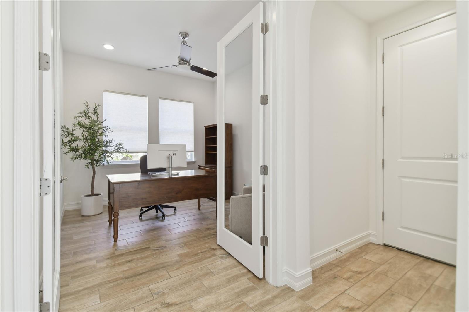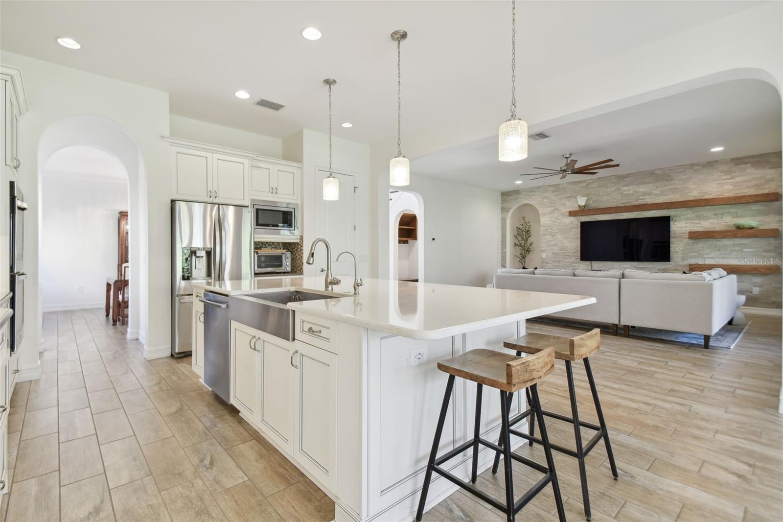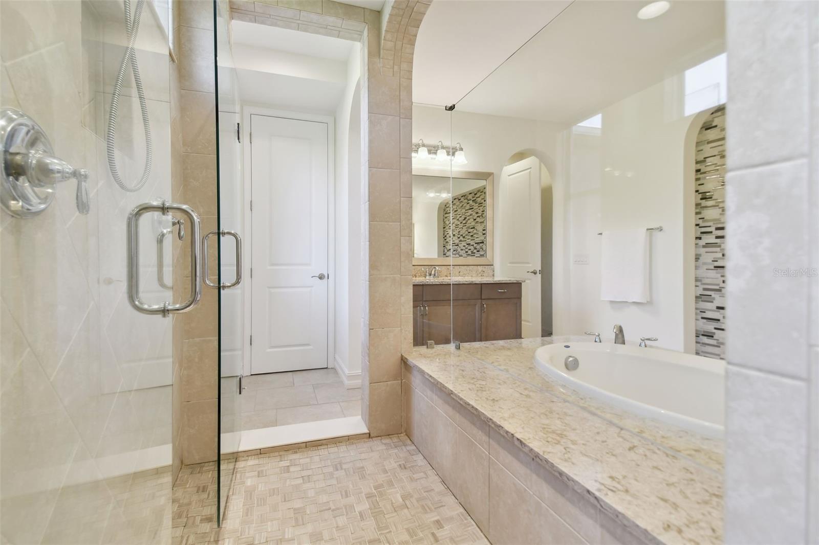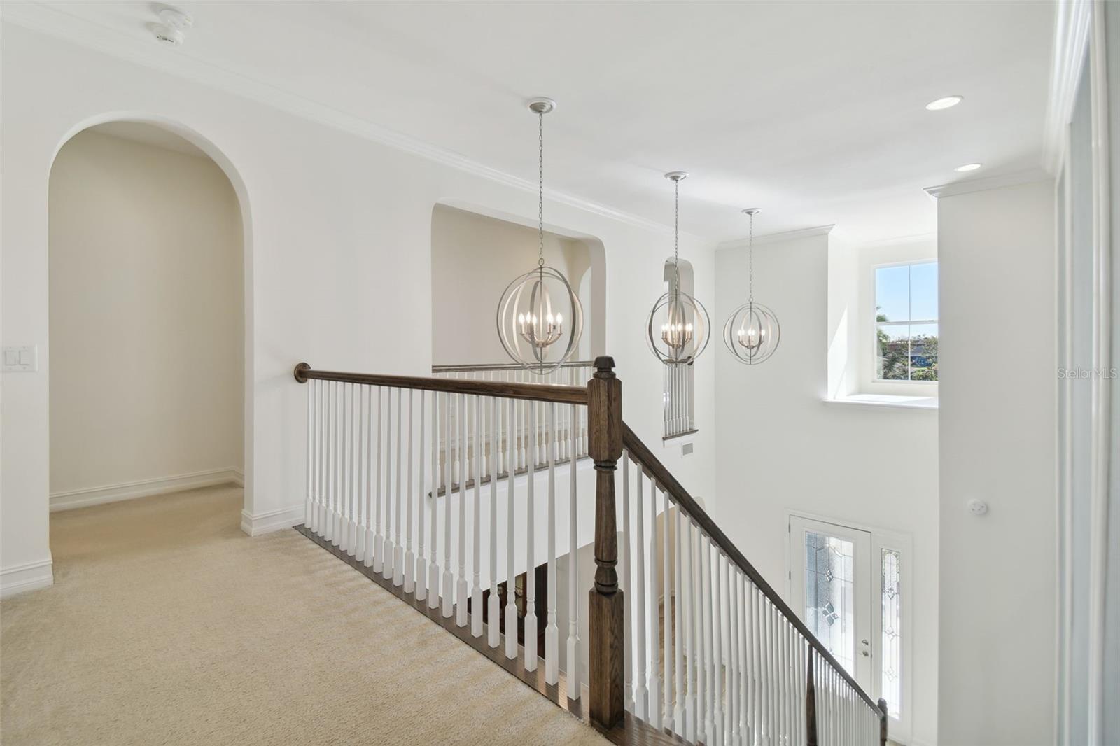 Beautiful CalAtlantic Chesapeake floorplan boasting over 4100 sq ft in the highly desired community of Estancia sitting on tranquil conservation with no rear neighbors! Located in the gated community of Tavira, the home offers 5 Bedrooms| 4 Baths| Bonus Room| Office and 3 Car Garage. It additionally provides an elongated driveway which will accommodate multiple vehicles comfortably. As you enter you are greeted by 20-foot-high ceilings, open staircase, decorative molding and lots of natural light. The interior has been freshly painted with a neutral color pallet that accentuates the existing design features. The main living area has porcelain tile that resembles wood planks, custom built in, decorative stone wall, and decorative archways. This gourmet kitchen features 42” high cabinets with decorative details, 5 burner natural gas stove, backsplash, double oven, apron kitchen sink, serving station, walk in pantry, stainless steel appliances, and quartz countertop. The first floor has an open concept, conservations views, and an oversized screened lanai! First floor has a private bedroom with a shower and an office with glass double doors. The primary bedroom is a complete oasis retreat. The primary bathroom has an oversized shower with rain shower, dual sink vanities with granite countertops, garden tub, natural light, and a decorative wall feature. The primary bedroom has plenty of space for a sitting area, tray ceiling, and a walk in dressing room. The laundry room features upper and bottom cabinets for lots of storage and sink. The 20x20 bonus room is upstairs and can serve as a multi purpose space. The club at Estancia has a lifestyle director hosting events and activities for its residents all year long. Enjoy the gym, clubhouse, tennis court, pickleball, tennis court, basketball court, trails and luxurious swimming pool with a zero entry and lap area. This neighborhood is less than 1 mile from Advent Health, BayCare Hospital, and the future Orlando Health. Zoned for A+ school zone, easy access to I-75, Wiregrass Mall, the Krates, restaurants, and shops make this area an ultimate favorite. Don’t miss out as this model does not hit the market often! Click for virtual tour!