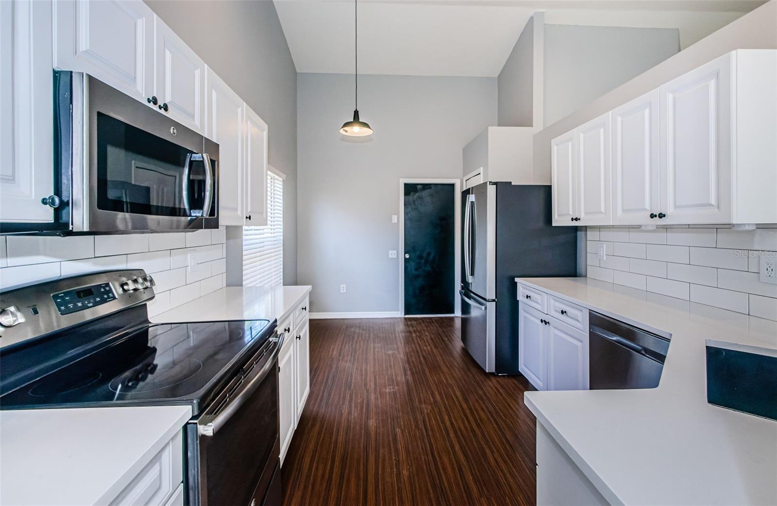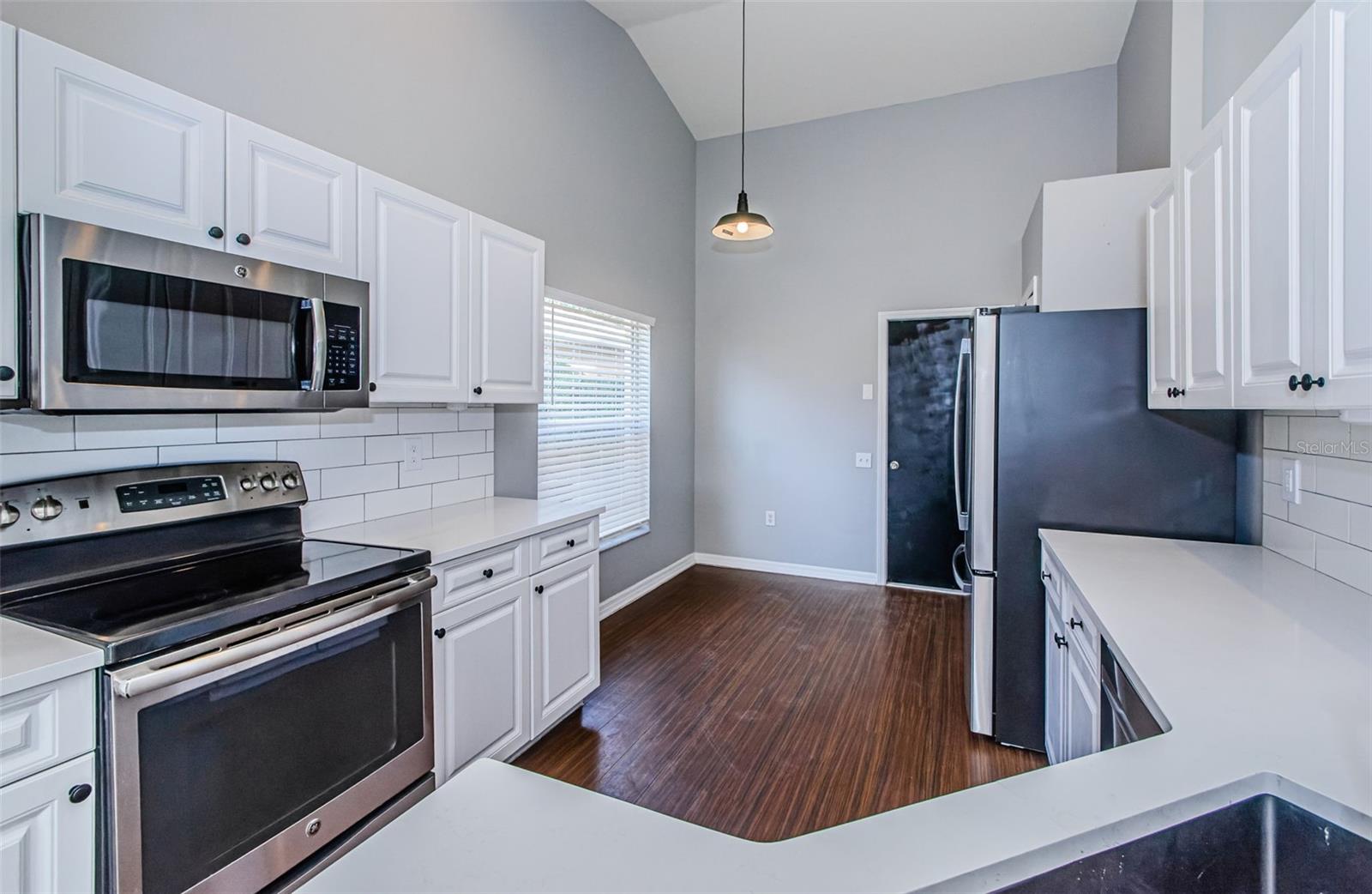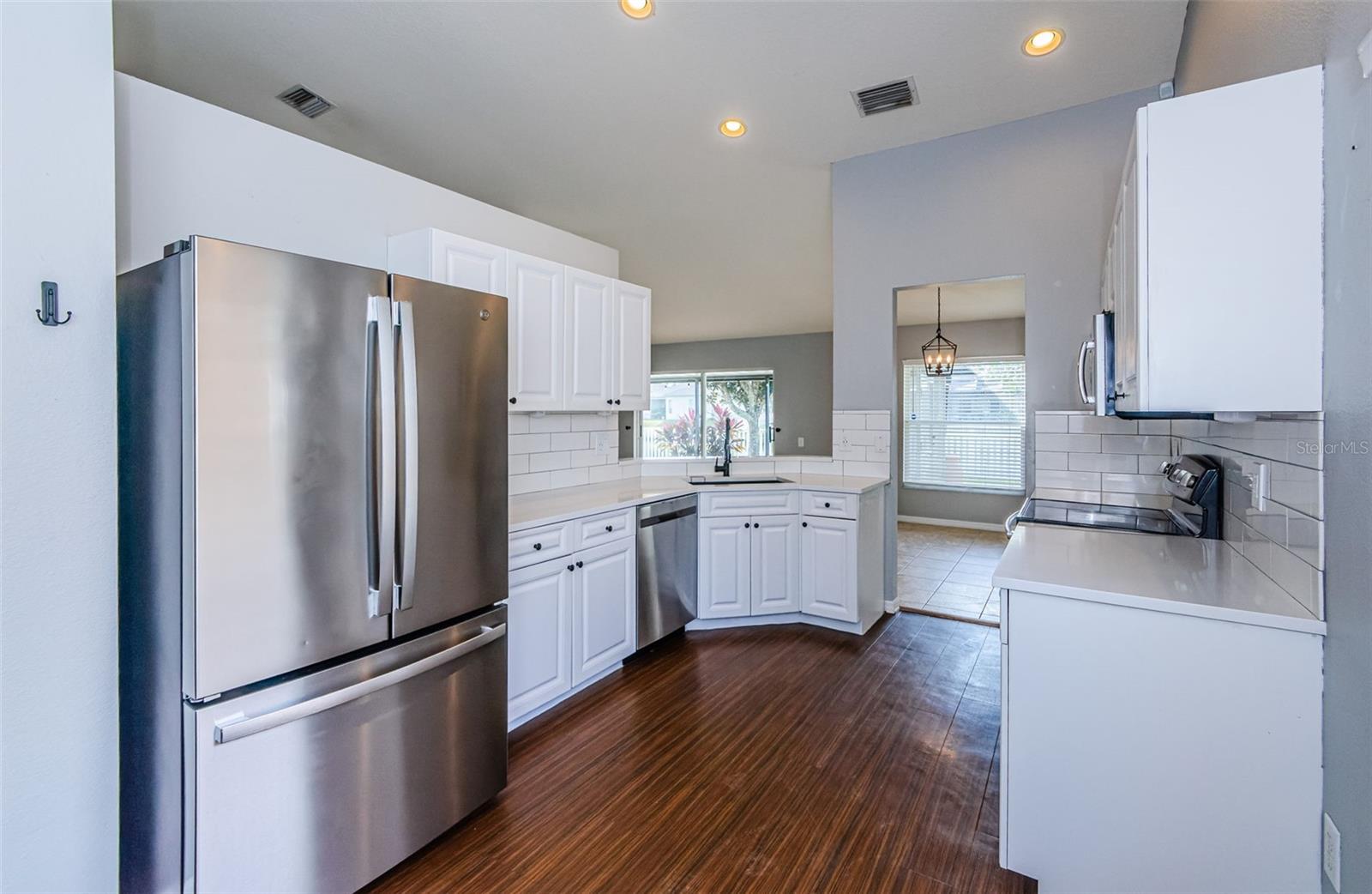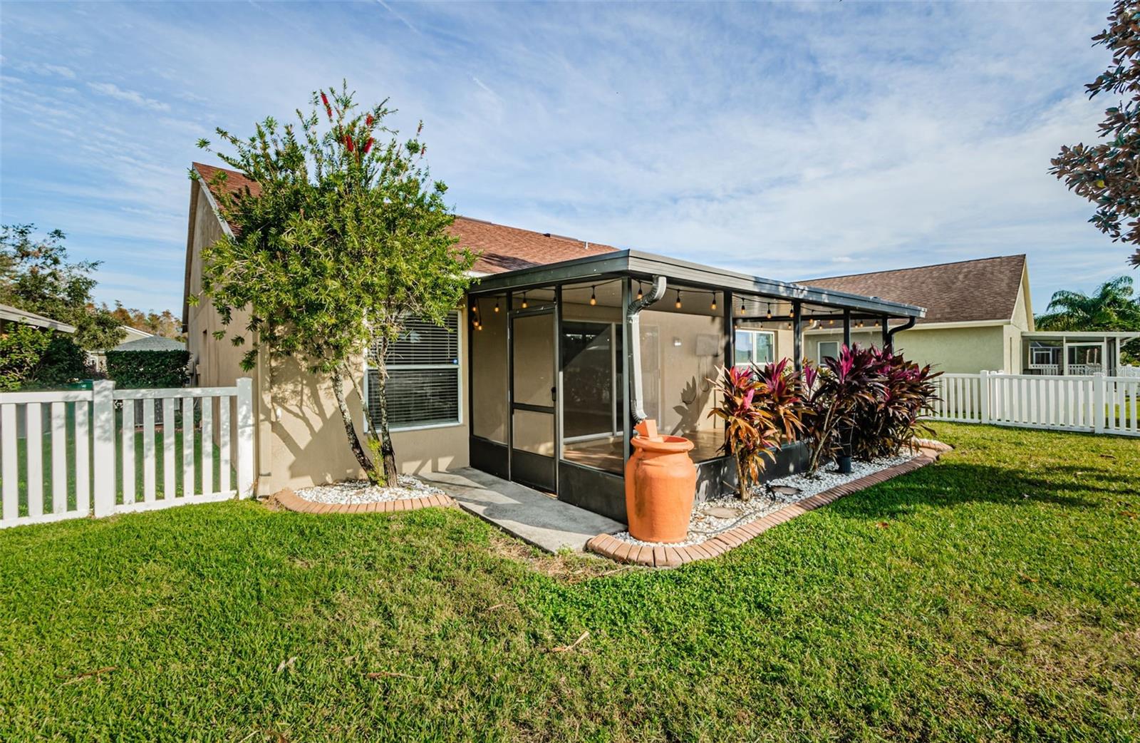 Welcome to this charming 3-bedroom, 2-bathroom home, perfectly designed for comfortable living and outdoor enjoyment. Nestled in a friendly community with low HOA fees and a range of community amenities, this home offers the ideal blend of convenience and style. With its open floor plan, vaulted ceilings and tile flooring throughout the main living areas, this home offers a seamless flow that's perfect for both relaxation and entertaining. The updated kitchen is a true highlight, featuring stainless steel appliances, sleek quartz countertops, and plenty of storage — an ideal space for preparing your favorite meals. The kitchen flows effortlessly into the living and dining areas, offering a comfortable and inviting space for family and guests. Step outside to the screened-in back porch, where you can enjoy cool breezes while taking in the serene water view. The fenced-in backyard provides the perfect private oasis, with beautiful landscaping and a cozy backyard fire pit — perfect for evenings spent outdoors under the stars. This home also boasts a 2-car garage for added convenience and storage. Plus, its location is unbeatable, with easy access to shops, restaurants, and more, making everyday errands a breeze. Whether you're enjoying the peaceful water view, entertaining guests, or simply relaxing in your private backyard, this home has it all. Don't miss the opportunity to make this stunning property yours! Schedule a showing today!