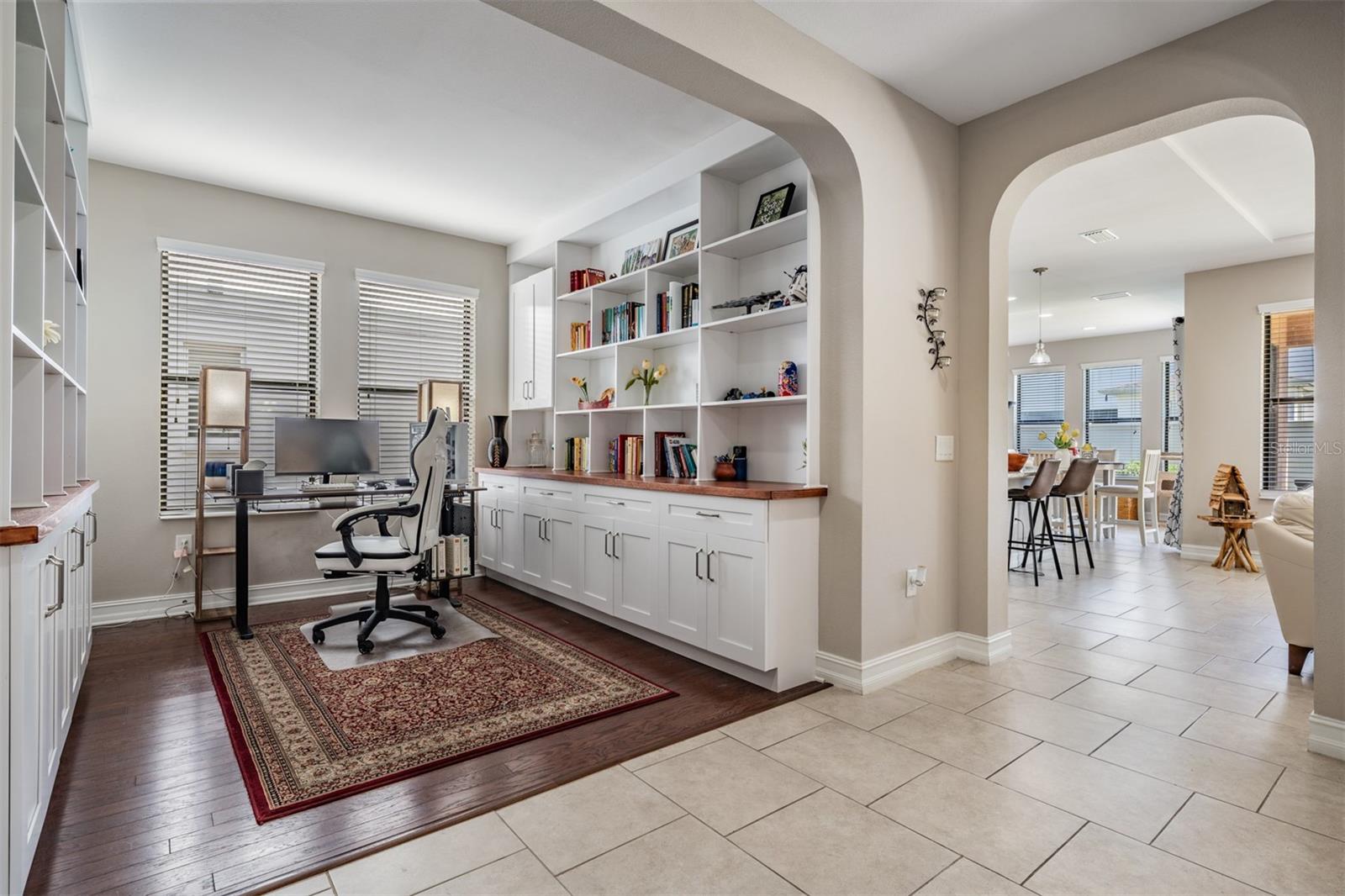 The one of a kind floor plan in this subdivision. 2753 sq ft, Mediterranean-inspired "Palermo" floor plan, was built by Standard Pacific in 2017 and is situated in the sought-after community of Estancia at Wiregrass. This residence offers everything you need to create cherished memories. Built with 4-bedrooms, 2.5-bathrooms, it is perfectly designed for modern living and entertaining. As you step inside you will notice an inviting open-concept floor plan where the heart of the home is. The first floor entertaining area features a cozy built-in electric fireplace, and the owners have upgraded the dedicated study with custom-built shelving—a perfect space for work or relaxation. The rear of the home faces east which brings in an abundance of natural light. The kitchen area has a separate breakfast nook so you can enjoy your morning coffee. You'll love the gas stove cooking, 42” wood cabinets, granite countertops, and the expansive center island—perfect for family breakfasts or hosting friends. The spacious owner's suite is a true retreat, boasting large windows which allows for a gorgeous sunrise in the mornings. The tray ceiling in the owners room adds interest, depth, and elegance to the room which can be transformed into a space that encapsulates luxury, practicality, and personalization. The owner bathroom suite includes his-and-hers vanities, an extra large walk-in shower and a large walk-in closet. For privacy away from the lower level, the upstairs loft and bonus room is a flexible space perfect for movie nights, game days, or to simply relaxing with loved ones. Living in Estancia at Wiregrass means being part of a vibrant community with top-rated amenities and easy access to everything you need. Low Quarterly HOA Fee. This home may qualify for a Homestead exemption to lower taxes if owner occupied. Current owners have not claimed Homestead exemption for the taxable year therefore taxes reflect higher. Zoned for highly desirable schools, this neighborhood is a favorite. Enjoy the convenience of being close to The Shops at Wiregrass, an array of restaurants, and major hospitals like Advent Health and BayCare. Plus, with quick access to highway exits for Tampa and Ocala, commuting or exploring the region has never been easier.